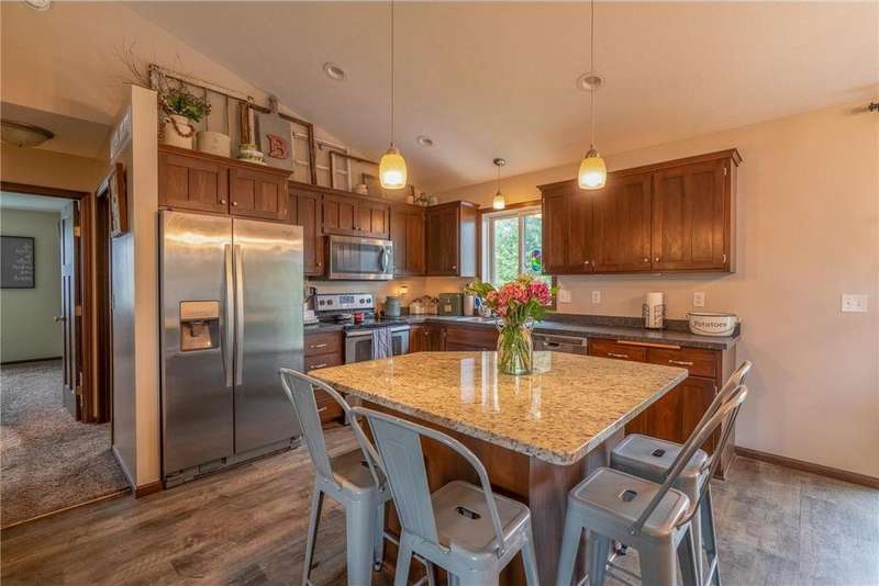 Welcome Home! Step into this meticulously maintained split level gem nestled in an up and coming neighborhood. From the moment you walk through the front door, you’ll fall in love with the bright, open concept design that perfectly blends comfort and style. The heart of the home is the stunning kitchen, complete with granite countertops, a spacious kitchen island, and seamless flow to the dining and living areas ideal for entertaining or everyday living. Step out onto the deck for morning coffee or evening relaxation. Downstairs, the walkout basement leads to an inviting patio perfect for enjoying both sunny afternoons and rainy evenings in total comfort. This home features spacious bedrooms with walk-in closets, offering plenty of storage and privacy. The impressive 3 stall garage is insulated and heated, ready to handle both your vehicles and your hobbies year round. Don't miss your chance to own this beautifully caredfor home in a growing community. Schedule your showing today, it’s even better in person!