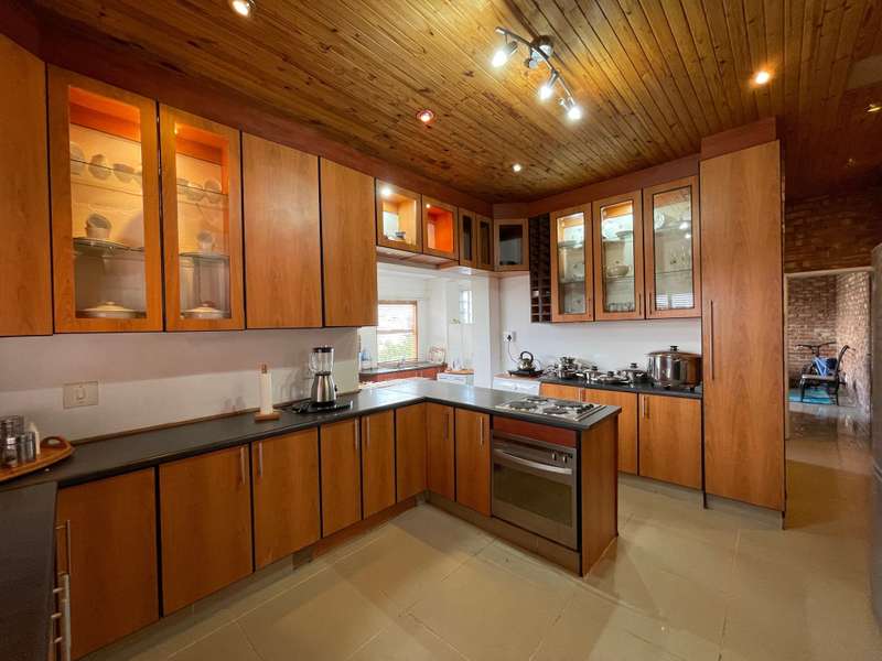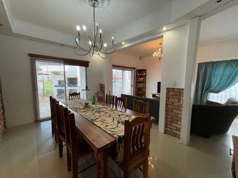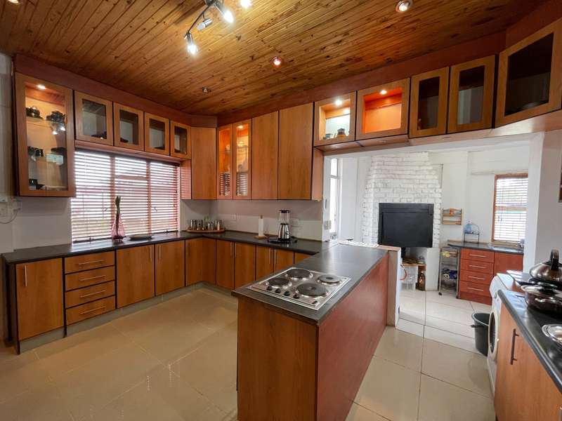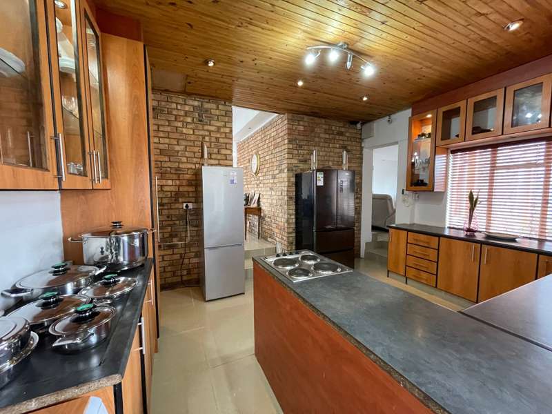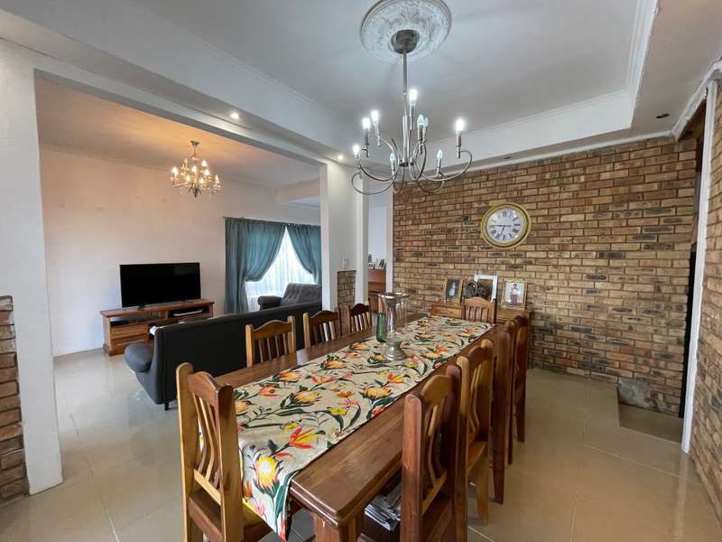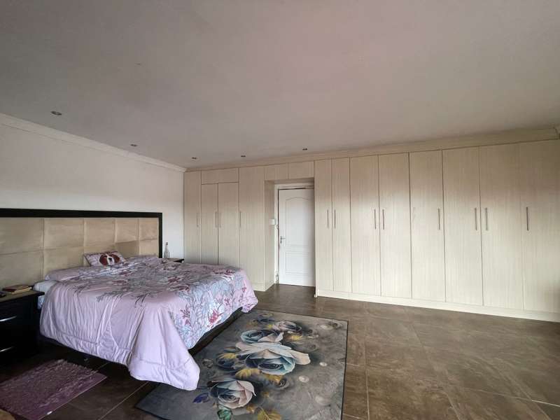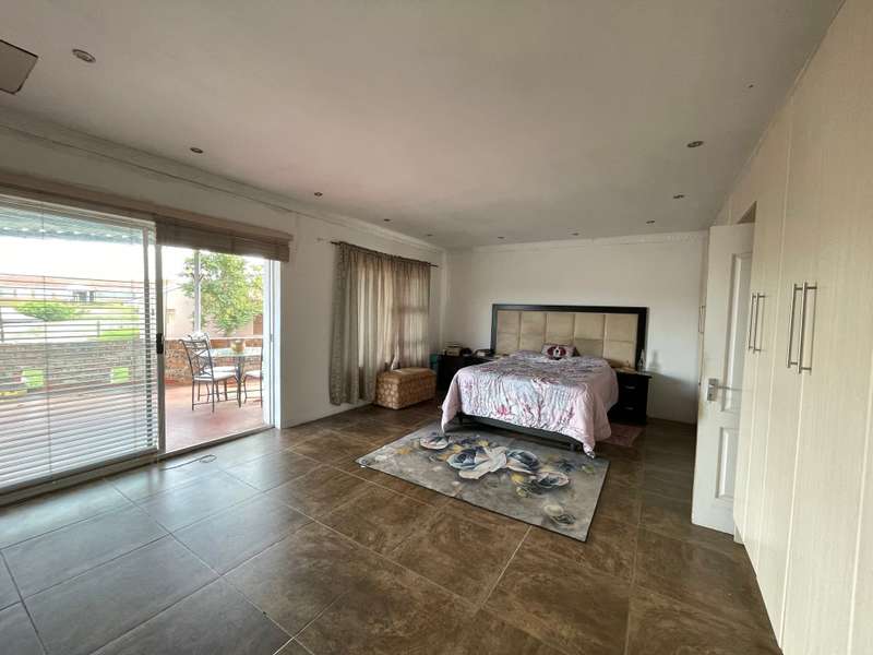 Discover your dream home in this 4-bedroom residence, where luxury meets functionality. Immerse yourself in a home that boasts built-in cupboards in every bedroom, with three enjoying the added convenience of en-suite bathrooms. The main bedroom and a spare room share a tranquil patio, offering a perfect spot for relaxation. The interior seamlessly flows from the inviting living room to the kitchen and family room. The well-appointed kitchen features ample cupboard space and an eye-level oven. Connected to the kitchen is a built-in braai with a small basin and 2 cupboards, adding a touch of sophistication to your entertaining space. With a total of 4 bathrooms, convenience is paramount. Step outside to find a substantial building offering an additional one-bedroom space with a generous living/dining room, a bathroom, and a well-equipped kitchen - a versatile haven for guests or extended family. Park effortlessly with a garage and a double carport. Security is paramount with installed cameras, ensuring peace of mind. The fenced yard adds an extra layer of privacy to this inviting home. Don't miss the chance to call this property your own!