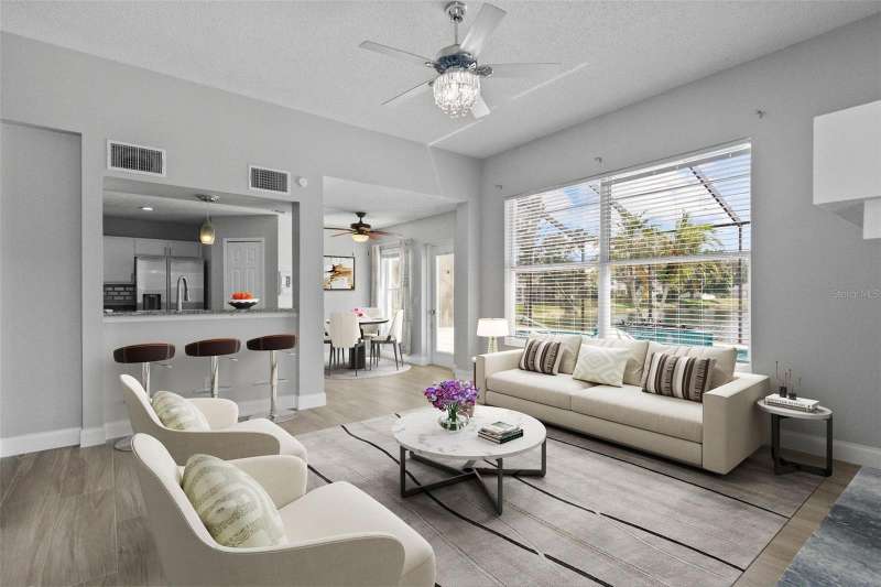 One or more photo(s) has been virtually staged. Florida Living at it's Finest! Welcome to this beautifully updated 3 bedroom pool home in the highly desirable Gates Creek community. Offering over 2,000sqft of living space, this residence combines modern upgrades with the charm and comfort of Florida living. Step inside to find brand new tile flooring throughout, updated bathrooms, and a new gas fireplace that creates a cozy focal point in the living room. This home also features a brand new roof installed in 2022, an HVAC system overhauled in 2021, and plenty of closet space and storage. With no CDD fees and a low HOA, Gates Creek is the perfect place to call home. The spacious kitchen and dining area flow seamlessly into the living space, making it perfect for entertaining family and friends. A bonus room at the front of the home offers versatility as a den, home office, or formal dining room. Your first-floor owner's suite provides a private retreat with French doors that open directly to the screened lanai. The en-suite bath features a walk-in shower and separate soaking tub, while the upstairs offers two generously sized bedrooms, a full bath, and a large family room that could easily serve as a game room, media room, or even a fourth bedroom. Outdoors, enjoy Florida's year-round sunshine in your resurfaced pool or relax in the hot tub with its newly upgraded jets and motor. Start your mornings with coffee on the lanai while watching the sunrise over the lake, and end your evenings with a swim under the stars. Conveniently located just off of Lakewood Ranch Boulevard, you'll have access to I-75, UTC, Lakewood Ranch Main Street, shopping, dining, entertainment, and the Gulf Coast's beautiful beaches. Don't miss your chance to make this stunning Gates Creek home yours-schedule your showing today!