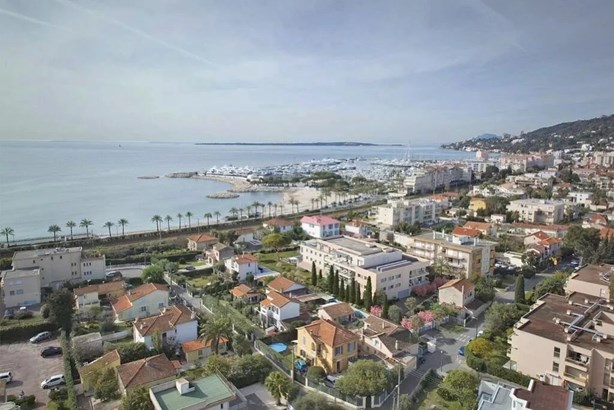 In this new residence of just 15 apartments, a final 1-bedroom apartment is available, featuring a spacious terrace with views of the sea and Cap d’Antibes.The 46 m² apartment includes a living room with open-plan kitchen, one bedroom, a shower room with WC, and a 14 m² east-facing balcony.The residence offers a swimming pool and is ideally located in the heart of the seaside resort of Golfe-Juan, between Antibes and Cannes, just 300 metres from the sandy beaches. Set back from main roads, it provides a peaceful setting while being only 800 metres from the nearest shops.Underground parking included.Kitchen units are not included, but we work with reliable suppliers.Completion is scheduled for the 3rd quarter of 2025.