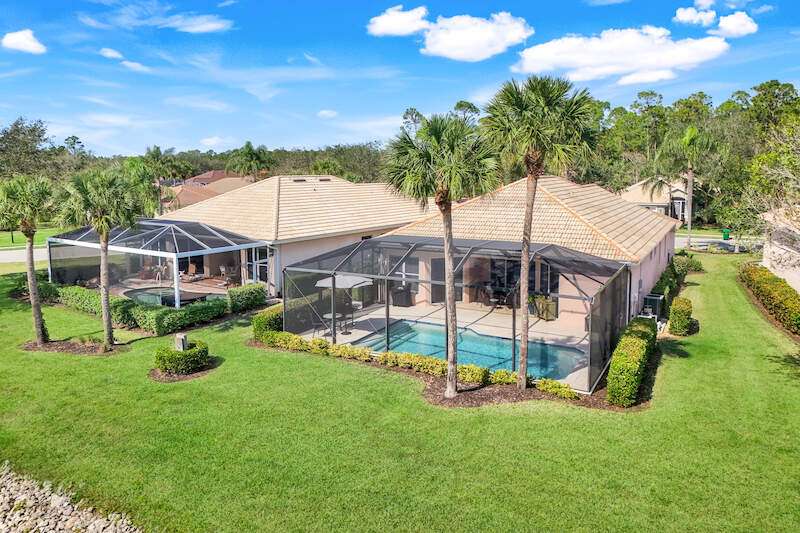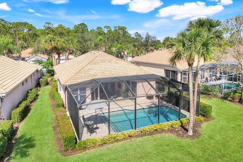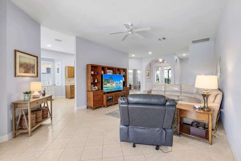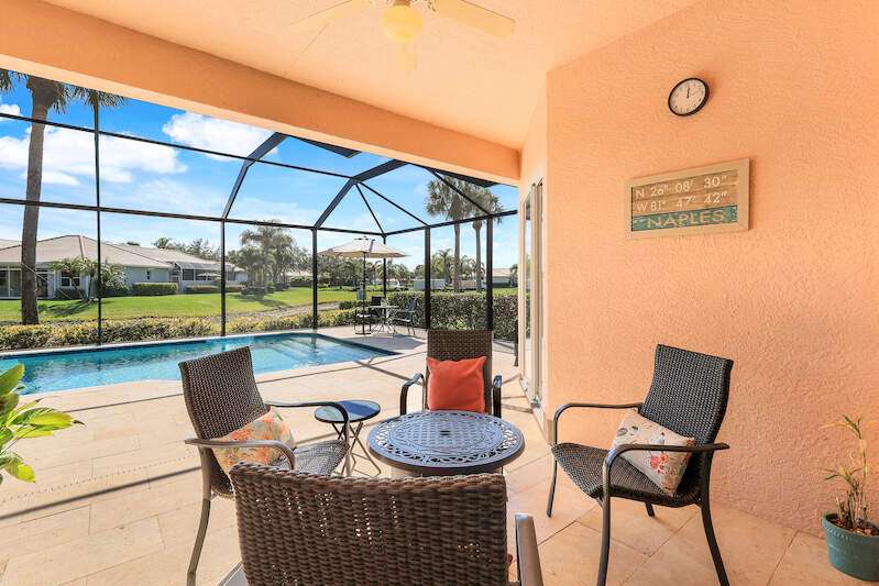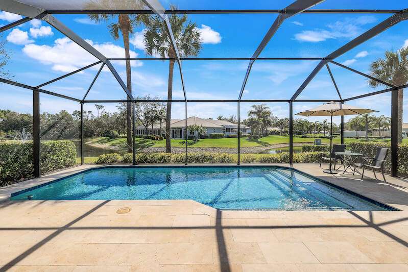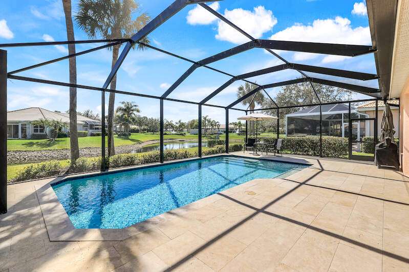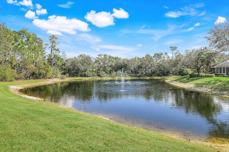 Gorgeous lake & fountain views can be found from the oversized lanai of this single family pool home located in the North Naples gated community of Carlton Lakes! This ever popular floor plan features 3 bedrooms plus a den, large family room, formal dining room, eat in kitchen space & 2 full baths. Notable features include volume ceilings, decorative archways and plantation shutters. You can enjoy relaxing pool side on your back lanai overlooking your large salt water pool with travertine decking and plenty of covered space for dining alfresco. Many improvements have recently been completed including a new Lennox AC, newer water heater (22), newer washer/dryer, newer kitchen appliances and closet organization systems. Carlton Lakes offers resort style amenities including clubhouse with 60 ft lap pool & hot tub, fitness room, tennis courts, bocce courts & fishing pier. Perfect for the Naples lifestyle. You are minutes to shopping, dining and Naples gorgeous white sand beaches. Sold with a 1 year home warranty for the new buyer at closing.