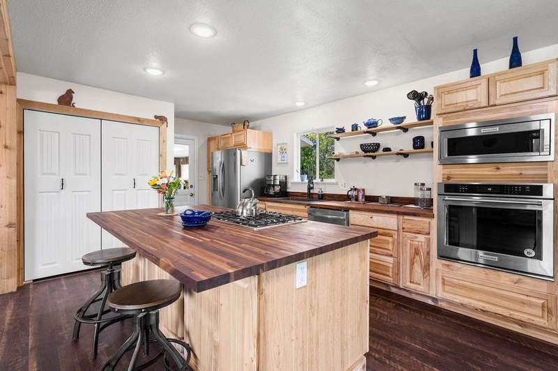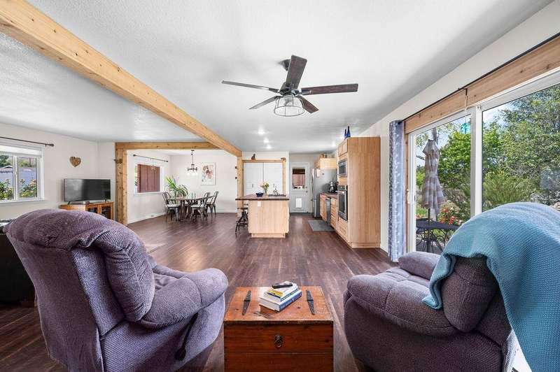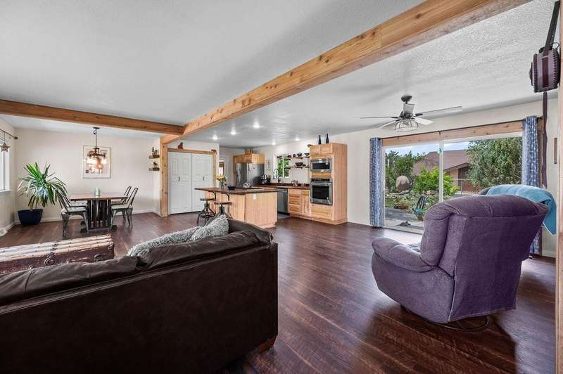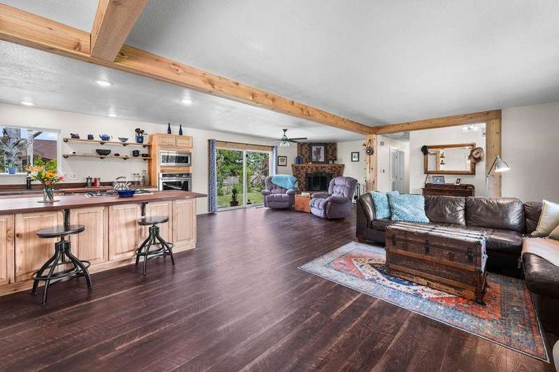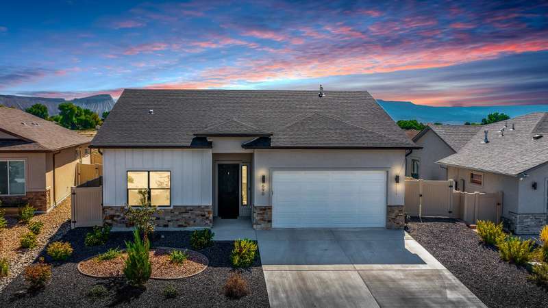 Enjoy breathtaking views of the Colorado National Monument from the front porch of this beautifully remodeled ranch-style home, tucked away on a quiet cul-de-sac in the Redlands. Sitting on a spacious and maturely landscaped .43-acre lot, this property offers RV parking, privacy, and room to roam. This 3-bedroom, 2-bathroom home is a perfect balance of modern comfort and rustic charm. The redesigned floor plan enhances the flow of the living spaces, complemented by new flooring. The kitchen and bathrooms have been fully updated with stylish modern finishes, while fresh paint, updated lighting, and new windows fill the home with natural light. Step outside to a welcoming backyard oasis featuring a fire pit with Monument views—perfect for entertaining or unwinding. The home also features a bonus room ideal for hobbies, a home office, or a play area. Upgrades include: Newer roof and evaporative cooler (2019), new furnace (2021), new water heater (2024), new gutters, downspouts, and leaf guard system (2022), & new garage doors and swamp cooler. This home offers added privacy with no rear neighbors. Whether you're relaxing on the porch or enjoying the beautifully updated interior, this Redlands gem is ready for you to make it your own.