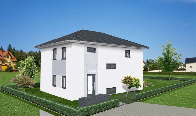 This projected and modern detached house offers over 150 m² of living space, an optimal room layout and numerous features that ensure comfortable living. The property is situated on a 433 m² plot and faces south-west. The house impresses with its well thought-out architecture: with a total of 5 rooms, including 3 spacious bedrooms, it offers sufficient space for individual living requirements. The spacious living and dining area is the central heart of the property. Large window elements create a bright and friendly ambience here, supported by modern triple glazing that guarantees excellent thermal insulation and soundproofing. The open-plan kitchen is directly connected to the living area and allows for short distances in everyday life as well as sociable hours with family and guests. A utility room keeps things tidy and provides additional storage space. There is also a guest WC on the first floor, while the upper floor has a high-quality bathroom with products from the Connectair range (or equivalent). In addition to the three bedrooms, there is also a further room here that can be used flexibly as an office or guest room. The house impresses with its future-oriented building technology: a modern heat pump provides efficient heating and hot water. The integrated ventilation system supports a pleasant indoor climate all year round. The features also include a full basement in a high-quality WU design, which offers plenty of space for hobbies, storage or extending the living space.