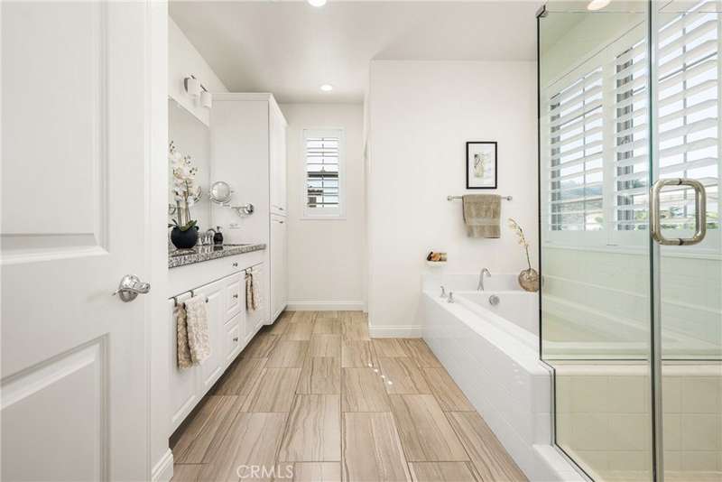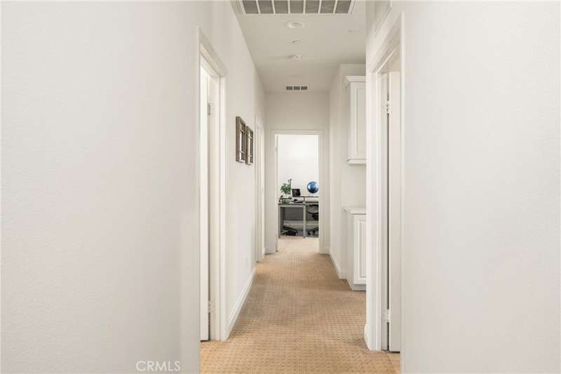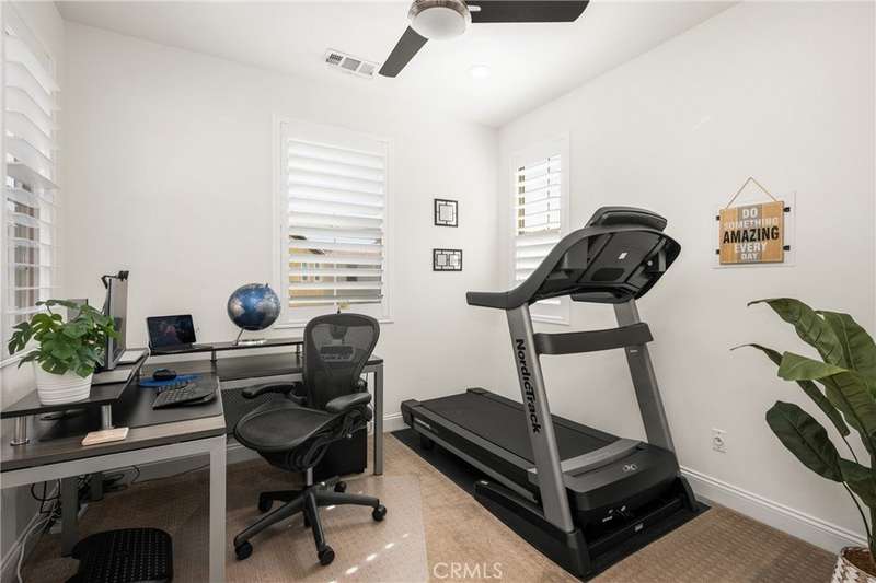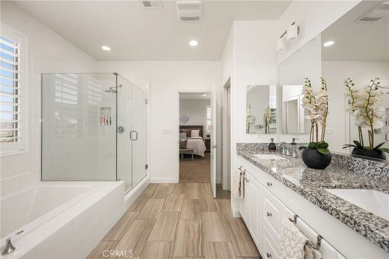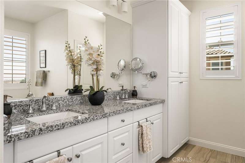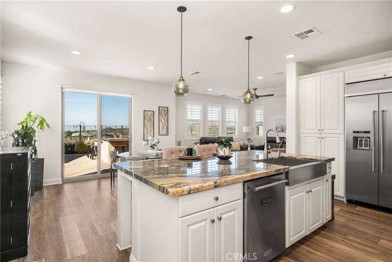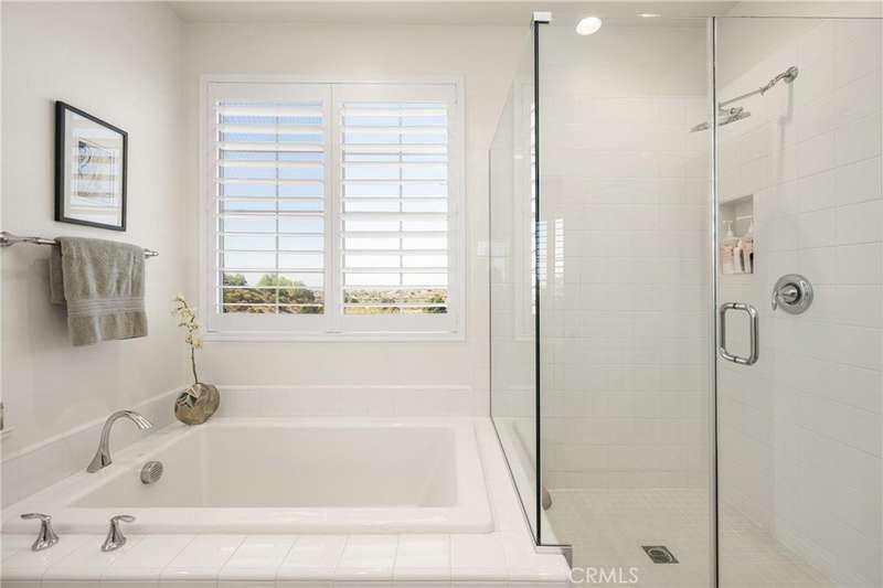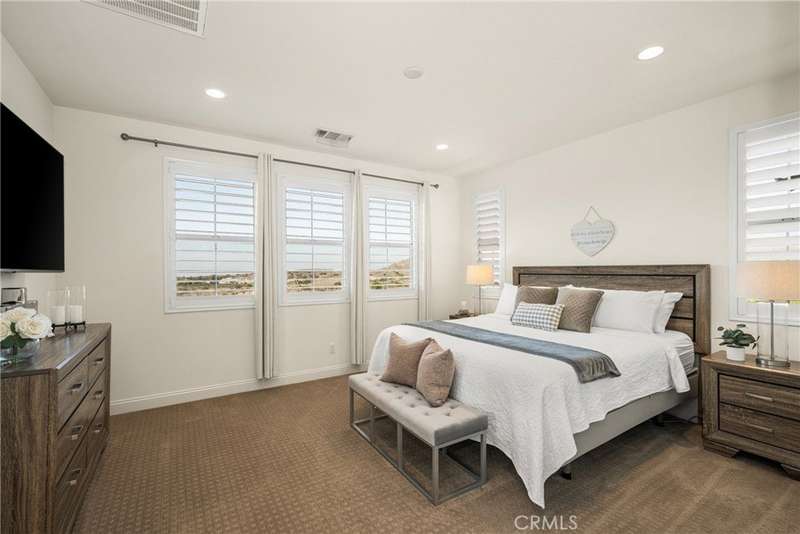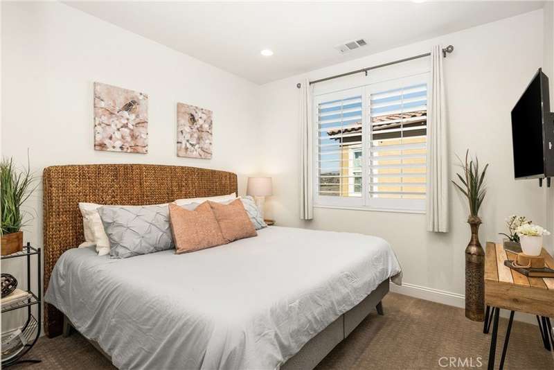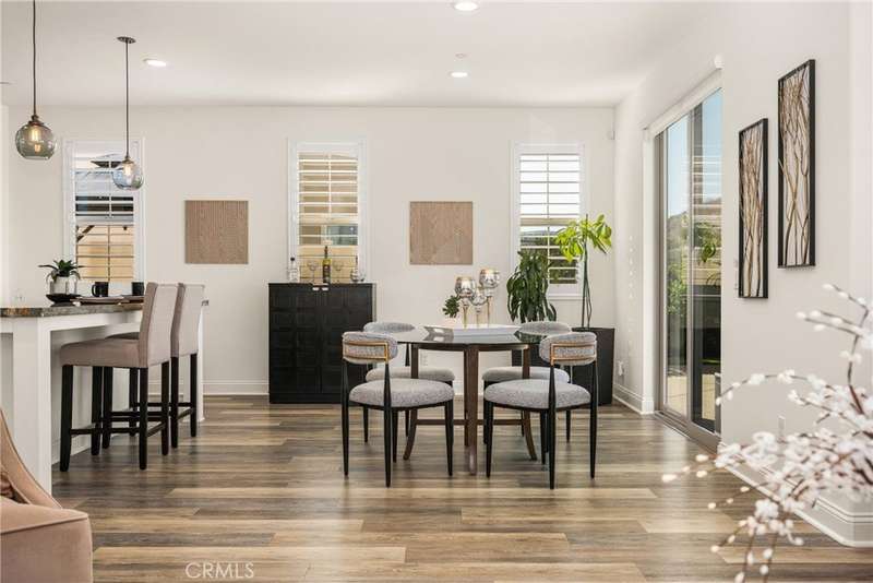 Panoramic canyon and sunset views define this modern Lake Forest residence, where contemporary design and thoughtful upgrades come together to capture the essence of California living. Every detail—from the light-filled entryway and elegant wrought-iron staircase to the open-concept layout—reflects sophisticated comfort and timeless appeal. At the heart of the home, the chef’s kitchen showcases a full backsplash, extended island with seating, custom cabinetry, and chic pendant lights that create a warm evening ambiance. The kitchen opens seamlessly to the dining and living areas with luxury vinyl plank flooring, plantation shutters, and effortless flow to the entertainer’s backyard. Step outside to a resort-style retreat overlooking rolling hills and glowing sunsets, complete with a built-in BBQ with sink, fire table, and covered cabana surrounded by beautiful turf—perfect for relaxing mornings or lively weekend gatherings. On the side of the home, a private dog run with its own shaded gazebo adds charm and function for pet owners. Upstairs, a stylish loft with built-in cabinetry and a custom desk offers the perfect setting for a home office, reading nook, or study space. All three bedrooms are conveniently upstairs, including a serene primary suite that frames hillside views and features a spa-inspired bath with dual sinks, a soaking tub, glass-enclosed shower, and spacious walk-in closet. Additional bedrooms are bright and inviting—one currently used as a fitness office—and share a full bath with dual vanities and modern finishes. A spacious laundry room with added cabinetry completes the upper level. Blending style and efficiency, the home also features a solar energy system, tankless water heater, water softener with reverse osmosis, ceiling fans, a living room surround speaker system, and an epoxy-finished garage. Every detail has been designed for comfort and convenience, from the 32 plantation-shuttered windows to the organized closets and cabinetry throughout. Ideally located near parks, trails, and award-winning schools—and just minutes from shopping, dining, and entertainment—this Encanto view home delivers the perfect balance of luxury, security, and modern California living. Enjoy all the benefits of life inside Encanto, Lake Forest’s premier gate-guarded community with serenity, sophistication, and style.
