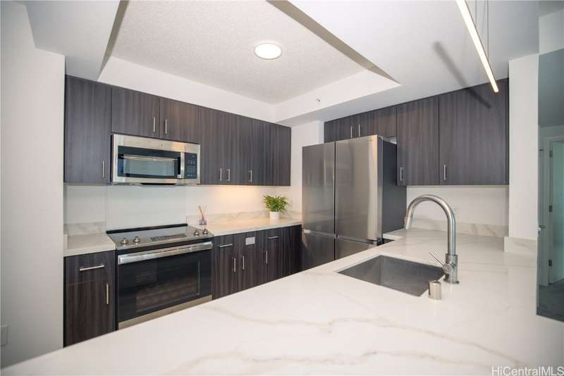 "Rethink Home" - Located in the heart of Kaka'ako, this stunning 2-bedroom, 2-bathroom home features floor-to-ceiling windows that bring in natural light and breathtaking city and ocean views. The bright and open-concept kitchen boasting quartz countertops, stainless steel appliances, and sleek and stylish cabinetry - perfect for cooking, entertaining or just enjoying a quiet night in. At Ililani, you are not just buying a home - you're embracing a lifestyle! Less than a year old condo is in the vibrant and urban core, you're minutes from SALT at Our Kaka'ako, Ala Moana Beach Park, and Honolulu's best dining and shopping district. Amenity includes: BBQ grills, splash pool, community garden, dog wash area (yes, pet friendly!), car wash area, bicycle and surfboards storage, community workspace and lounge area, and multipurpose room. With secured two parking stalls and an unbeatable convenient location by planned rail station, this home is perfect for anyone looking to enjoy the best of Honolulu. Come see it for yourself!