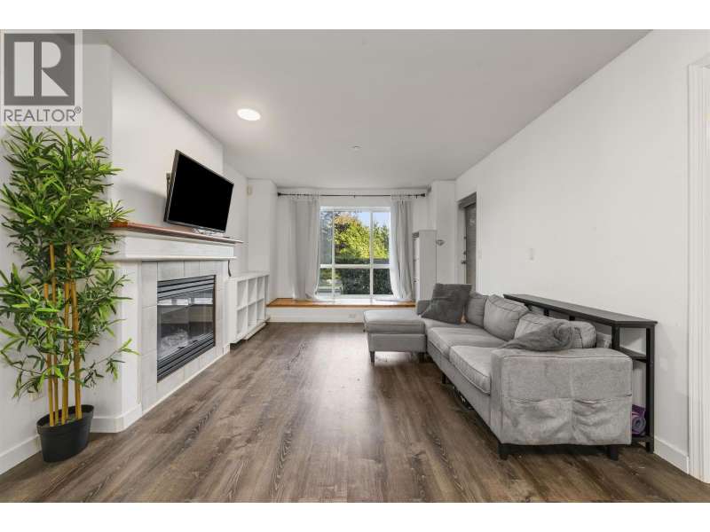 Steveston charm meets modern comfort at Nautica North with unit #104, a 2-bed suite offering over 960SF of well-designed living. A welcoming foyer leads to a spacious kitchen with ample cabinetry, opening into a bright dining & living area framed by large windows and a cozy fireplace. The bedrooms are smartly separated for privacy, while the generous primary easily accommodates a king bed, dressers, and even a workstation. Step outside to a 160SF ground-floor patio-partially covered for year-round BBQs-and enjoy direct street access, a rare convenience for pet owners or new parents. Just steps from London Landing and minutes from Steveston Village´s waterfront cafes, bakeries, and shops, this home blends lifestyle and comfort in one of Richmond´s most beloved neighbourhoods. (id:58403)