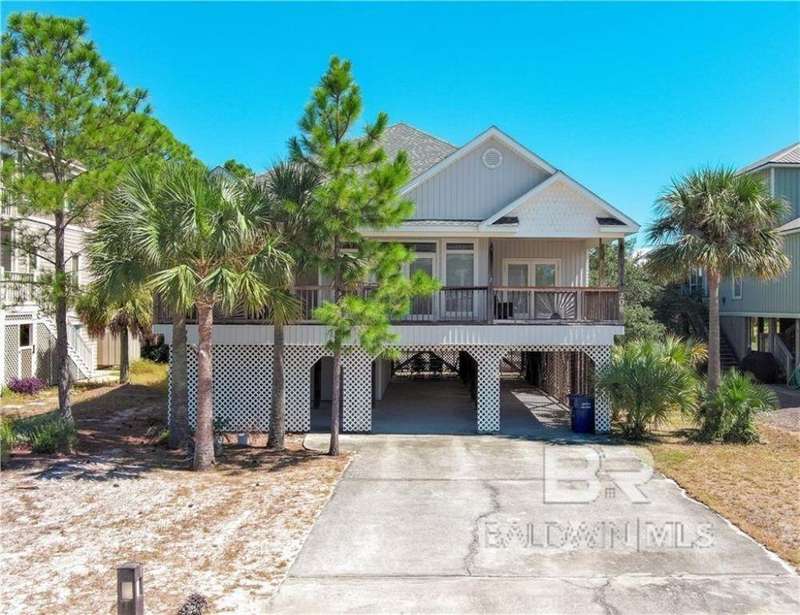 Island Getaway in Desoto Landing, Dauphin Island, Alabama Welcome to your perfect island retreat in the Sunset Capital of Alabama! Located in Desoto Landing, an exclusive, private, and gated community on the east end of Dauphin Island, this home offers the ideal blend of tranquility and convenience. Whether you need a peaceful escape or a place to recharge, you'll find serenity here amidst the beauty of coastal living. As you step inside, the open floor plan welcomes you with its inviting atmosphere, accentuated by a soaring cathedral ceiling that adds an elegant touch. The kitchen is a dream, complete with ample cabinet space, a convenient breakfast bar, and all the appliances you need including a refrigerator, range, microwave, washer, and dryer, all of which convey with the property. The split bedroom layout ensures privacy for everyone. The spacious master suite is a true retreat, featuring double vanities, alarge soaking tub, a separate shower, a water closet, and a walk-in closet. Three additional bedrooms and a full bath provide comfort for family and guests alike. One of the home's standout features is the large, covered front porch, located on the upper level. This will quickly become your favorite spot for sipping coffee in the morning or unwinding in the evening. Below the home, an extra-large storage area offers plenty of secure space for your outdoor gear, and there's ample room for a hammock, porch swing, or even a game area perfect for making the most of your island life. Desoto Landing offers fantastic community amenities, including a well-kept in-ground swimming pool, tennis courts, and access to a beautiful, pristine beach via boardwalk. Here, you can enjoy fishing, swimming, or simply walking along the shore collecting seashells. Don't miss your chance to own this incredible home, priced to sell and ready for you! Schedule your showing today and start living your island dream. All measurements are approximate and not guaranteed, buyer to verify.