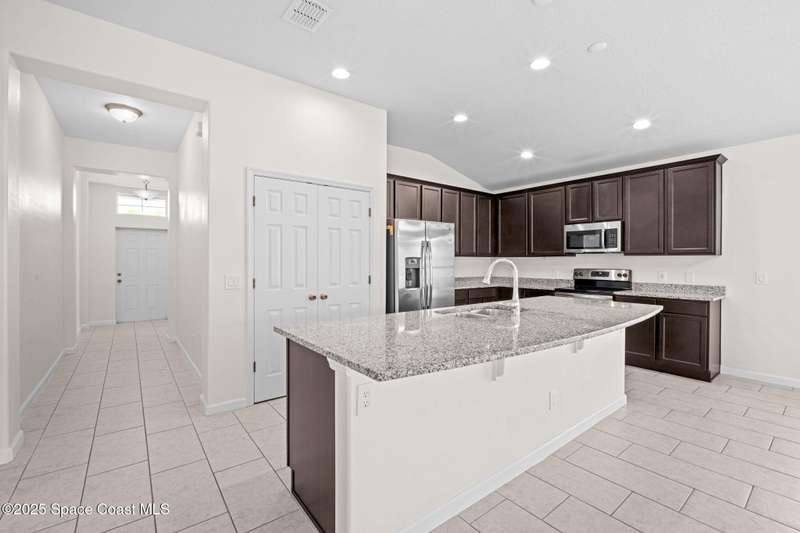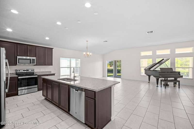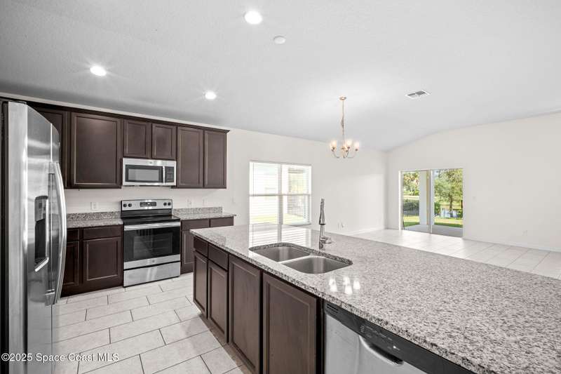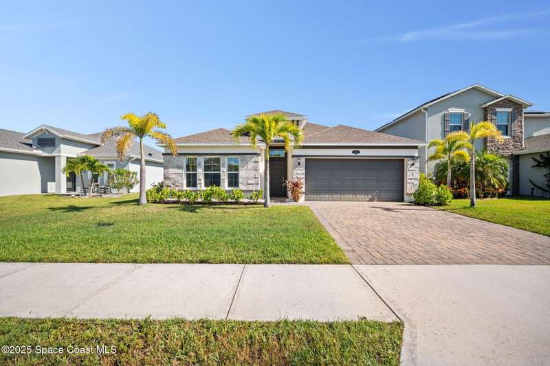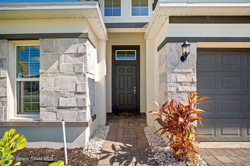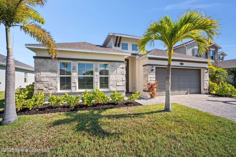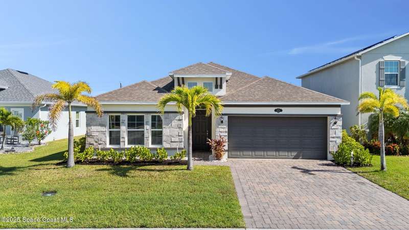 Welcome to Eber Cove! This beautiful lakefront residence offers the perfect blend of modern comfort and timeless style. Featuring 3 spacious bedrooms, 2 full baths, and a 2-car garage, it welcomes you with a paved driveway and attractive stone accents that enhance its curb appeal. Inside, the extended tiled great room creates an inviting space for gatherings, seamlessly flowing into the open kitchen. Designed for both everyday living and entertaining, the kitchen boasts stainless steel appliances, granite countertops, a large center island, and abundant cabinet space. The bedrooms are cozy with plush carpeting, while the primary suite provides a private retreat with ample room to relax. Step outside to a covered porch where you can enjoy tranquil lake views year-round. Additional features include storm shutters for peace of mind and thoughtful design details throughout. Recently seeded & fertilized yard, as well as brand new carpet are just a few of the many incredible updates.
