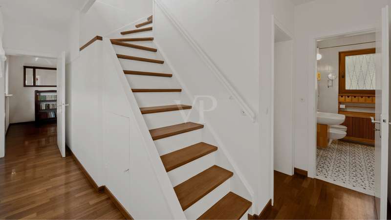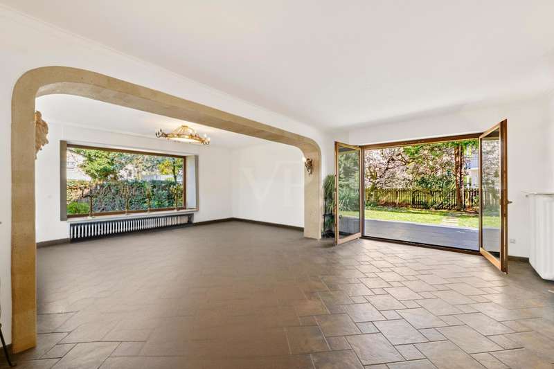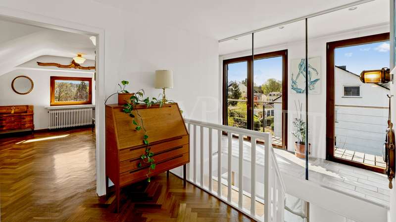 In the middle of an enchanting garden framed by beautiful trees and flowering plants rises a magnificent detached house that conveys a feeling of security and elegance on approx. 223 m² of living space. With a total of 6 rooms, including 5 inviting bedrooms, this home offers space for dreams and memories to be made. Built in 1963, the house has been lovingly maintained and continuously modernized over the years to preserve its character while providing modern comforts. Extensive renovation work has been carried out since 1996, transforming the house into a real gem. The electrical and plumbing systems have been carefully renewed, while the walls and ceilings are illuminated in fine Italian smooth stucco plaster. The floors tell stories of style and quality: on the first floor, high-quality Italian tiles adorn the rooms, while on the upper floor and attic, a beautiful solid Iroko parquet floor invites you to linger. In 2007, the old oil heating was replaced by efficient gas condensing heating, and in 2015 an electronic backflow flap was installed for added convenience and security. The top floor, which was lovingly renovated and extended in 2016, now offers two charming dormer windows, a balcony for romantic sunsets and an additional bathroom that invites you to relax. Connections for a small kitchen were installed with foresight. The windows, framed by elegant wooden frames and fitted with double insulating glass, ensure a cozy atmosphere and security. The bathrooms and guest WCs have also been redesigned with great attention to detail and shine in new splendor. The garden was carefully redesigned in 1996, when 24 fir trees were felled to create space for a harmonious landscape. In 2017, the former swimming pool was transformed into an inviting wrap-around terrace that invites you to linger and enjoy. This property not only impresses with its spaciousness and high standard of furnishings, but also with its loving care, which guarantees a high quality of living. Another highlight is the fiber optic connection, which was installed in 2023 and offers you the best conditions for modern working and fast internet. The basement also offers plenty of storage space and creative uses, while a garage rounds off the offer perfectly. Let yourself be enchanted by the magic of this special home. A viewing appointment can be arranged at any time to give you a personal impression of all the amenities and the attractive location that this family home has to offer.