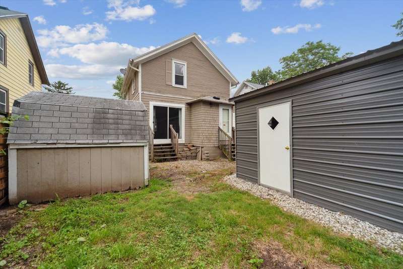 This cute-as-a-button home is ideal for first-time buyers or those looking to downsize without compromising comfort. Featuring 2 bedrooms and 1 beautifully remodeled bathroom, every inch of this home has been thoughtfully designed to make the most of its space.Start your mornings on the enclosed front porch?perfect for sipping coffee and watching the world go by. Inside, the main living area is open, bright, and full of potential, just waiting for your personal touch to make it truly feel like home.Step out back to your partially fenced-in yard, offering a peaceful retreat and just the right amount of space to relax or garden. And you'll love the newer garage?bright, spacious, and heated?making it the perfect spot to tinker, create, or simply hang out year-round.Don't miss your chance to make this warm and welcoming home yours. Schedule your showing today your new beginning starts here!