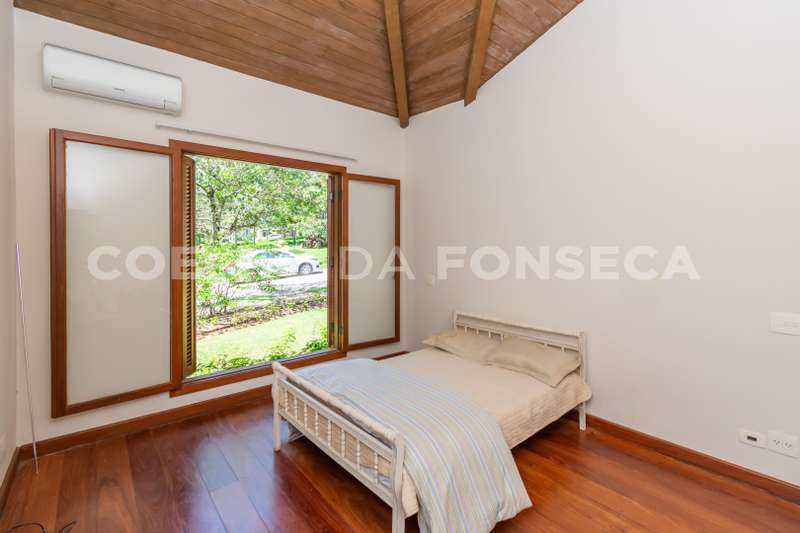 Com a atmosfera charmosa de uma fazenda, mas com a conveniência e o luxo das grandes cidades, a casa possui quatro suítes espaçosas e práticas. A suíte master é um espetáculo à parte, com uma lareira aos pés da cama e uma varanda que oferece uma vista deslumbrante para o infinito, proporcionando momentos mágicos ao pôr do sol.