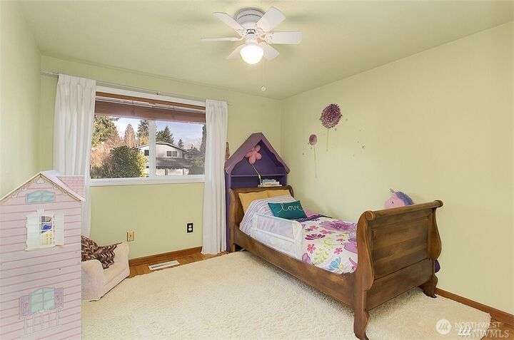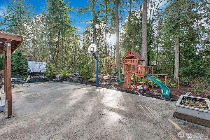 Nestled along a quiet residential street in Kirkland, and backing to an idyllic greenbelt, discover an absolute turn-key home ready for new tenants on 1 October 2025. 3BR/2BA up; 1BR/1BA down. Fully remodeled kitchen and bathrooms. Great room on the upper level with dramatic vaulted ceilings and Brazilian cherry hardwood flooring; large rec room down. Oversized 2-car garage with abundant storage space. Beautiful outdoor spaces include huge patio with fire pit, water feature, and tons of flat play space --- perfect for entertaining. Top-rated Lake Washington Schools, and just minutes from 405 & 522. 12 month term only. Small dogs okay with pet fee. No cats, no large dogs. Homes this nice aren't meant to be rentals...!