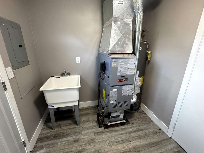 Be the first to enjoy this never-occupied since 2025 remodeling 3-bedroom, 1-bath ranch! Situated on a generously sized, fully fenced lot, this home combines modern updates with everyday comfort. The brand-new kitchen showcases contemporary cabinetry, stainless steel appliances, and ample storage, while the full-size laundry room adds convenience. Recent upgrades include a new HVAC system, hot water tank, washer, dryer, and a 2-car garage. Gorgeous new flooring flows throughout, creating a bright and welcoming atmosphere. The expansive yard is perfect for entertaining, gardening, or relaxing outdoors. Ideally located just minutes from Walmart Supercenter, restaurants, shops, and gas stations-this turnkey home is ready for its first owner!