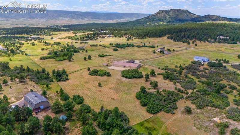 Unparalleled equestrian estate w/ epic mountain & butte views ~ PREMIER horse property nestled on 35+ fully usable, private acres of lush rolling pastures * Designed for serious equine use w/ 14,700 SF indoor riding arena, multiple outdoor arenas, 3,276 SF, 11-stall horse barn w/ wash stations, heated 418 SF tack room w/ half bath, 1,296 SF equipment shed & 500 SF fully furnished caretaker's apartment * This 5-bed, 5-bath custom home w/ a 3-car garage welcomes you in a private, gated community * A Swarovski crystal chandelier highlights the spacious formal dining room * The gourmet kitchen boasts granite countertops, pecan cabinetry, SS Viking appliances, barstools & an eat-in nook * Soaring, vaulted ceilings in the great room, featuring a grand stone fireplace & views through a wall of windows, including electric shades & surround sound speakers * Enjoy the large concrete paver deck w/ new electric awning (installed at the end of July), fire pit w/ chairs & hidden gutter system * Main floor study can be converted into a 6th bedroom w/ a ¾ bath across the hall * The main level laundry room includes washer/dryer w/ utility sink * Upstairs has 4 beds & 4 baths, including the primary suite w/ vaulted ceilings, two walk-in closets, & five-piece spa-like bath w/ granite countertops * The walk-out basement features a fully equipped wet bar (bar stools & appliances included), media room (screen, sound system, & chairs included), billiards room (pool table & accessories included), chess table & chairs, sunroom, wiring for hot tub (table & chairs included) & large storage room * An ensuite bedroom (TV included) are a plus in the basement * Extras included: automatic start, whole house generator, radon mitigation system, 3-zone heat/AC, water softener, new well pump installed in 2022, propane tanks for the house and barn, and a dog fence, freezers & shelving in garage included * THIS PROPERTY WON’T LAST LONG, IT’S A MUST SEE!!!