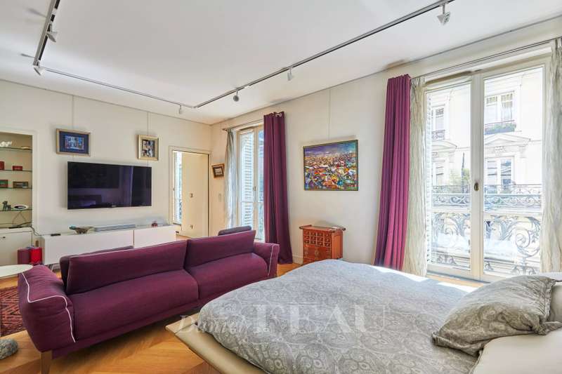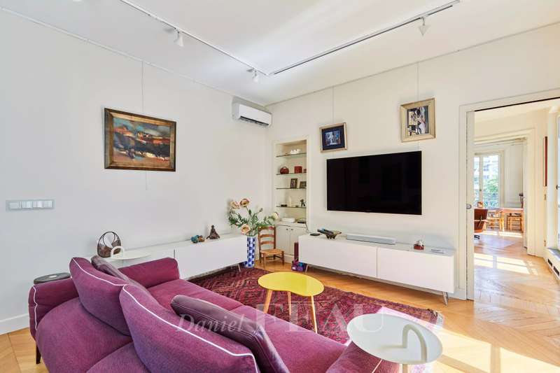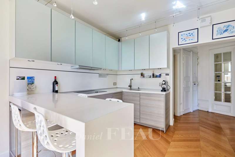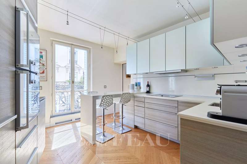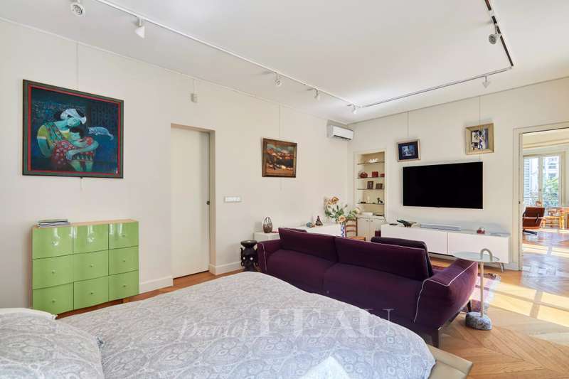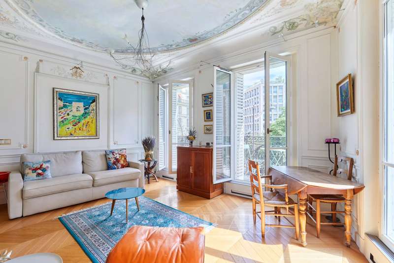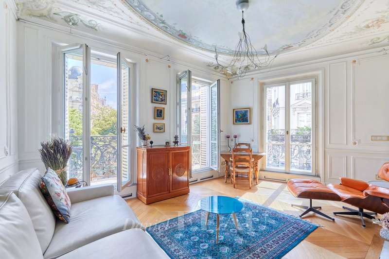 This meticulously renovated apartment on the 2nd floor of a fine mid 19th century building benefits from a continuous balcony and commands a superb open view of Place Saint-Ferdinand. Bright and peaceful, it offers 81 sqm of floor space and 76.70 sqm of living space as defined by the Carrez Law, it includes a delightful corner living/reception room, an equipped kitchen with dining facilities, a spacious suite with a sitting room, a shower room/wc, a dressing room, a utility room and a separate wc. A second bedroom would be possible. With a cellar and a 6.30 sqm maid’s bedroom benefiting from lift access.