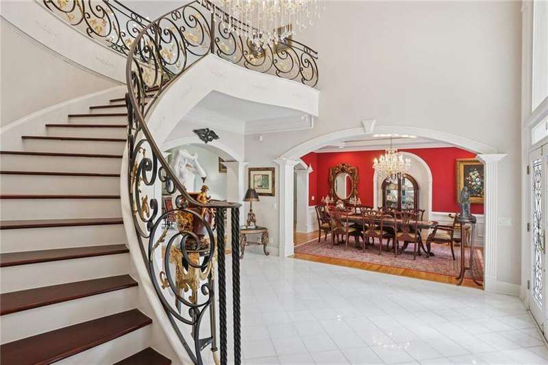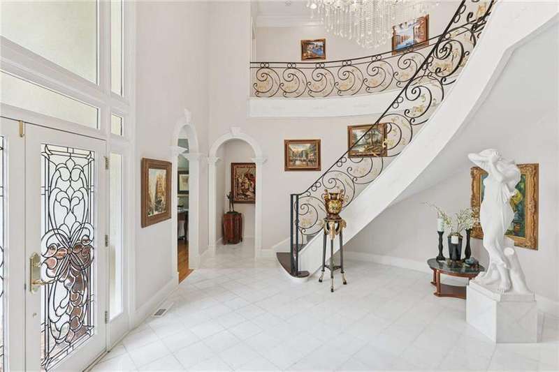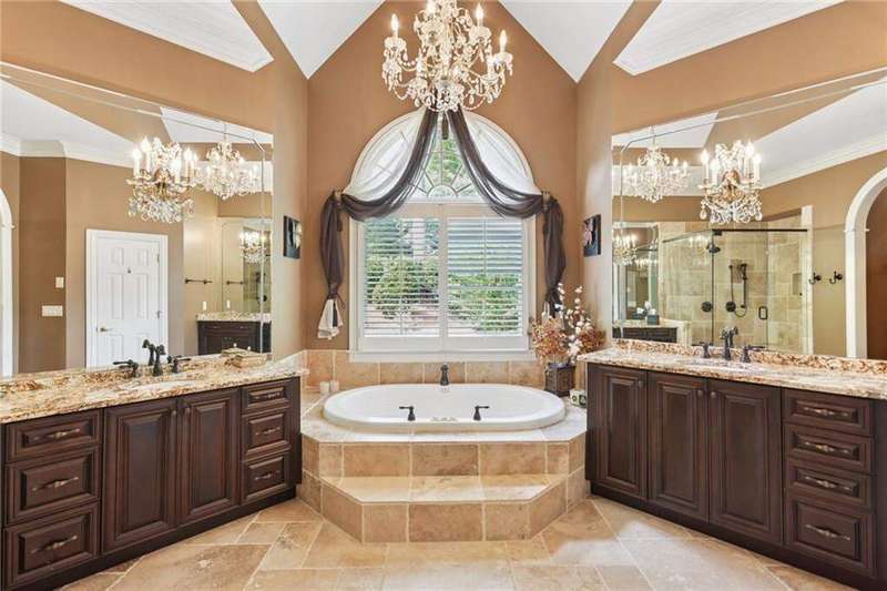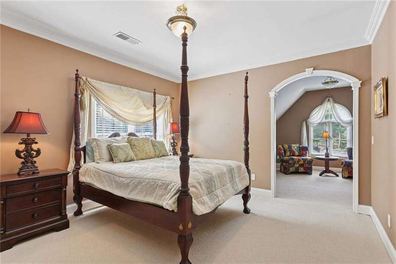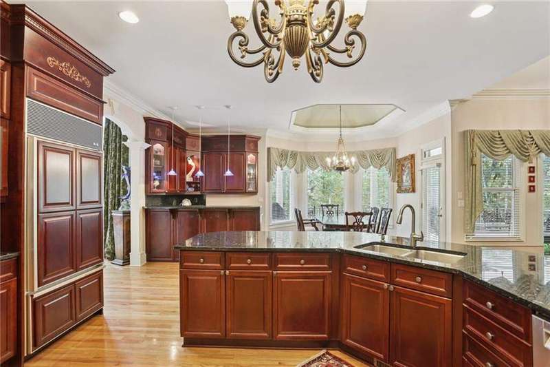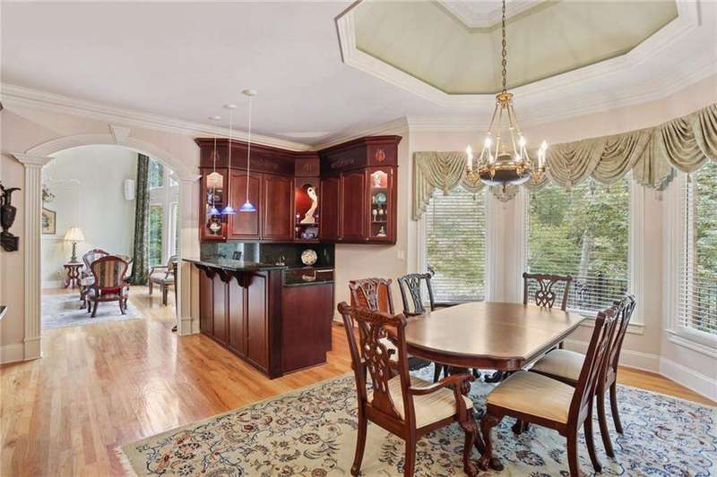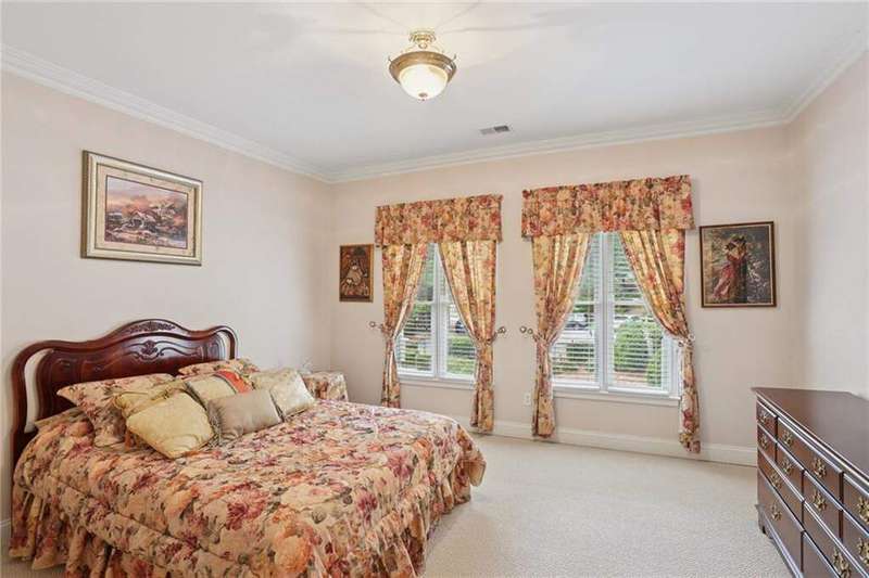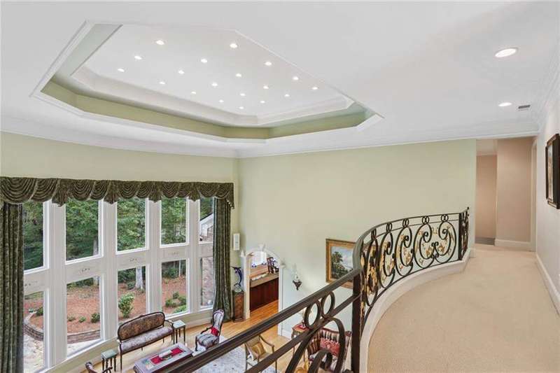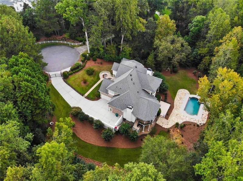 A private sanctuary just minutes from the city and 400. Nestled at the end of a quiet cul-de-sac on nearly 2 acres, this European-inspired retreat combines timeless elegance with complete privacy. A gentle stream winds behind the property, setting a tranquil tone the moment you arrive. The home offers a seamless balance of luxury and comfort. The main-level owner's suite features vaulted ceilings and a spa-style bath, while the open-concept kitchen and keeping room flow naturally into the soaring two-story great room. With five bedrooms, five full baths, and a half bath, there's abundant space for family and guests. Designed for both relaxation and entertaining, the property boasts a heated pool and spa, a covered porch overlooking the wooded landscape, and refined interior details including beamed ceilings, custom millwork, and three fireplaces. Though secluded and serene, the home is just minutes from top schools, shopping, and trails. It is more than a home - it's a rare retreat where nature, privacy, and timeless design come together. Opportunities like this don't come along often. Located in the Bluff community, the home offers quick access to top-rated schools, shopping, and greenway trails-all while feeling worlds away in its private, wooded setting.