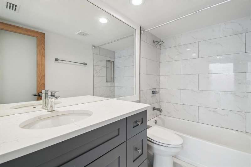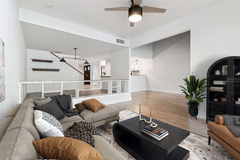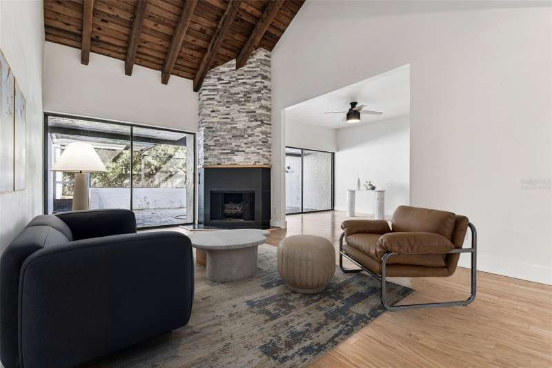 One or more photo(s) has been virtually staged. Move in ready with great location! If you enjoy architectural details you’ll enjoy taking in the attention to detail in this home including the expansive windows throughout and vaulted ceilings with wood paneling and beams. This 3 bedroom, 2.5 bath home is equipped with a newer kitchen and bathrooms, 3 well appointed bedrooms and a custom master closet ready for all your shoes and clothes. Once you step in to the foyer you’re greeted with the open yet intimate floor plan that includes the kitchen to your left and dining room to the right. Just down the steps you have 2 living spaces perfect for movie night or gatherings with friends. The living space off the kitchen has a stunning bricked wood burning fireplace while both rooms boast full wall sliding glass doors that lead out to the caged lanai. As you make your way up the centrally located stairs, you’re greeted by a huge picture window filling the area with natural light. Enjoy the split floor plan with the master opposite the 2 additional bedrooms and full bath. The oversized master includes vaulted ceilings, a private bathroom and walk in closest equipped with custom shelving. Located in the heart of Carrollwood, you’ll enjoy the ease and convenience of the area including a shopping center less than half a mile away and Carrollwood Village Park just over a mile away. The community nuzzles up to one of the Carrollwood Village Country Club Golf courses making for nice views and close golfing access. There’s something for everyone in Carrollwood whether it’s walking trails, shopping, golf or restaurants. Just over 10 miles from downtown Tampa and Tampa International airport this home should not be missed! All measurements are estimates and should be verified by the buyer.