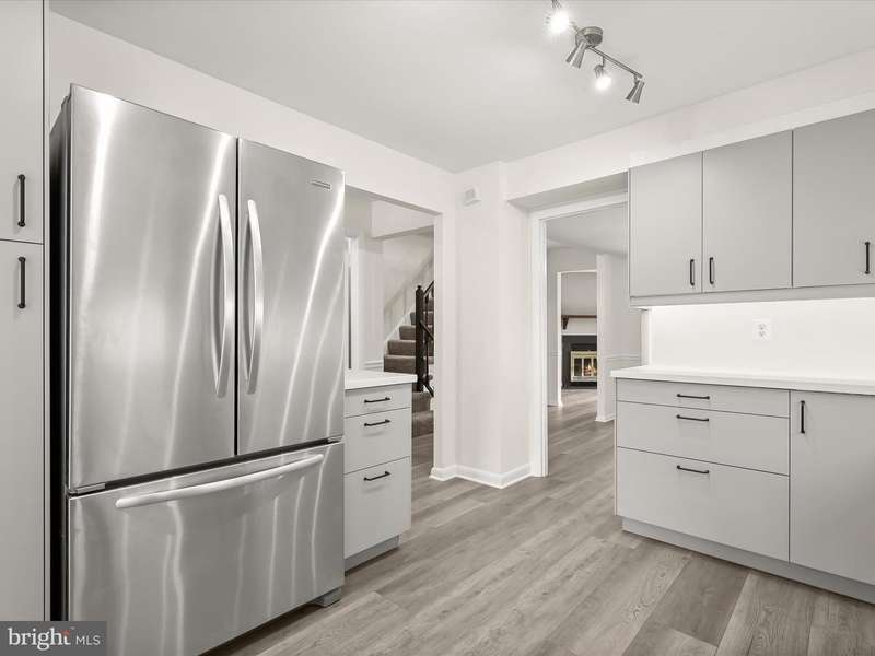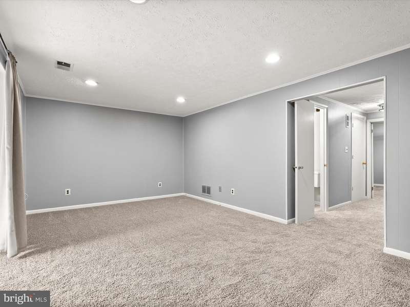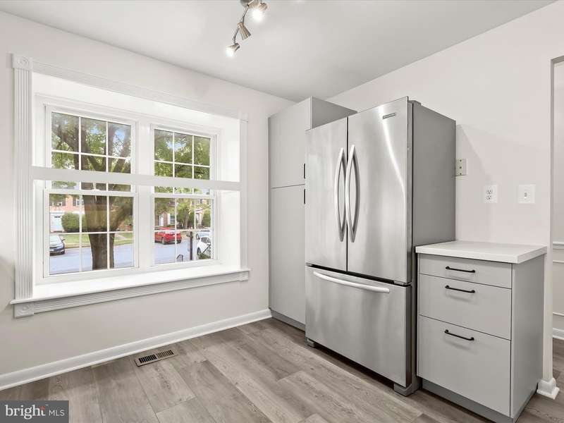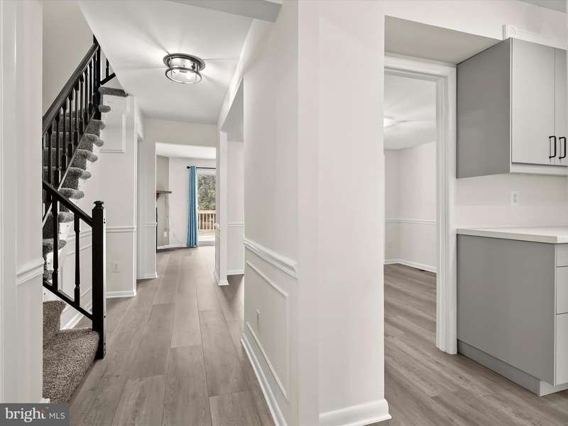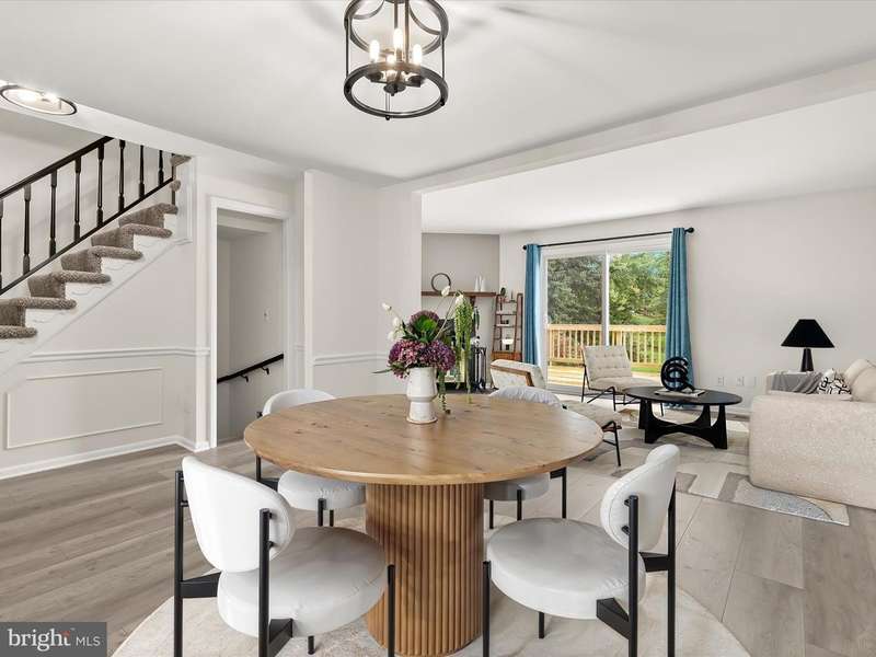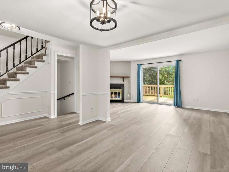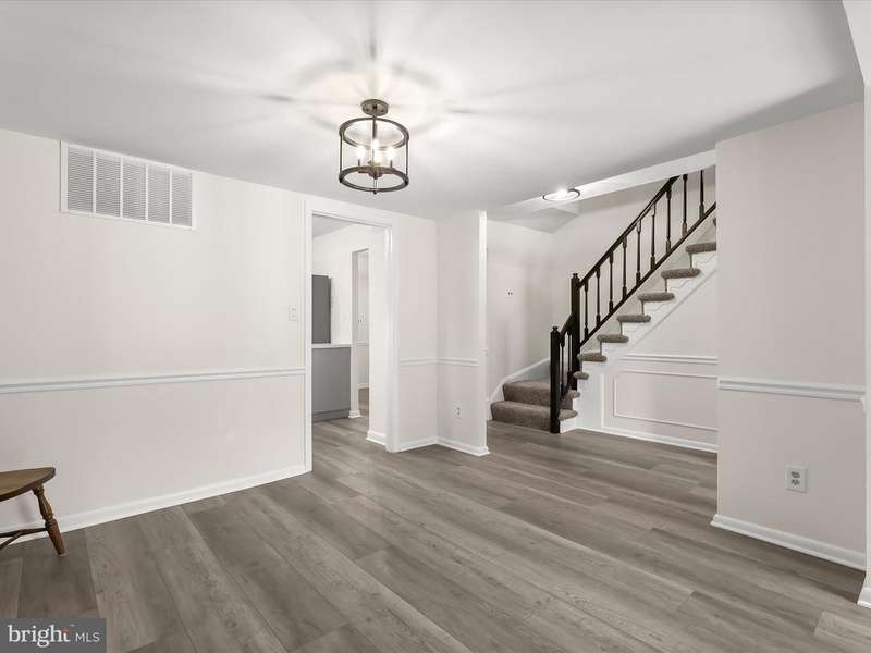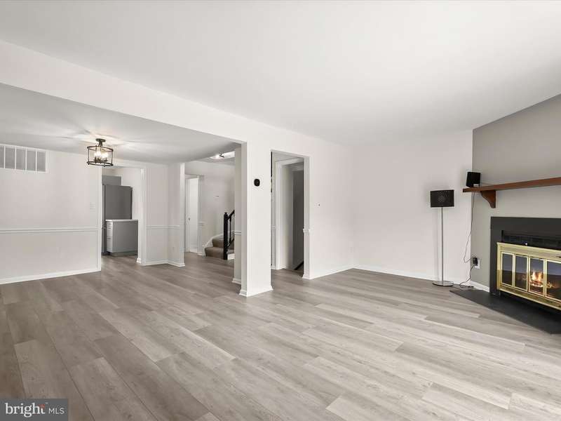 Welcome to Mays Chapel Village in Lutherville-Timonium! This interior brick townhome begins with an inviting foyer featuring chair rail accents, box wainscoting, dual closets, and hardwood floors that continue into the open living and dining rooms. The spacious living room offers a warm neutral palette, a cozy wood-burning fireplace, and a sliding glass door that leads to the deck, perfect for seamless indoor-to-outdoor living and entertaining. The adjoining dining room is accented with chair railing and opens beautifully to the living area. The updated kitchen is highlighted by a bay window, pantry, stainless steel appliances, and black-accent fixtures. A powder room completes the main level. Upstairs, the primary suite showcases double closets and a stylish en-suite bath with hexagon ceramic tile flooring, a modern vanity, and a walk-in shower. Two additional bedrooms and a hall bath complete the upper level. The fully finished lower level expands the living space with plush carpet, a powder room, a private office, two storage rooms, and walkout access to a fenced yard with patio and secure storage. HVAC (2022). Enjoy the convenience of major commuter routes, including I-83, I-705, and I-695, making travel north and south a breeze.