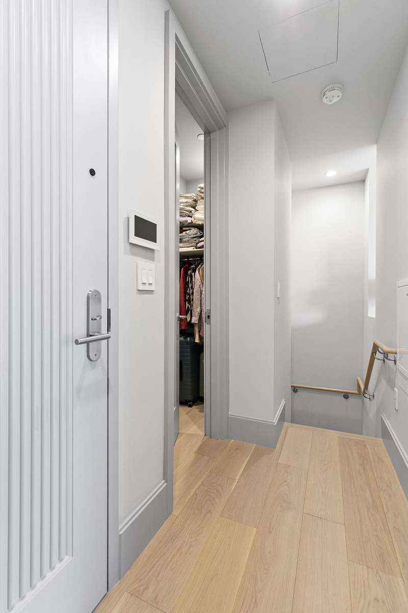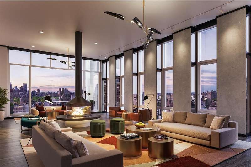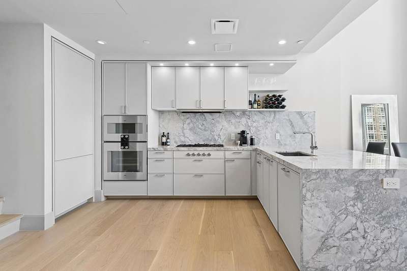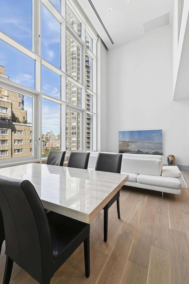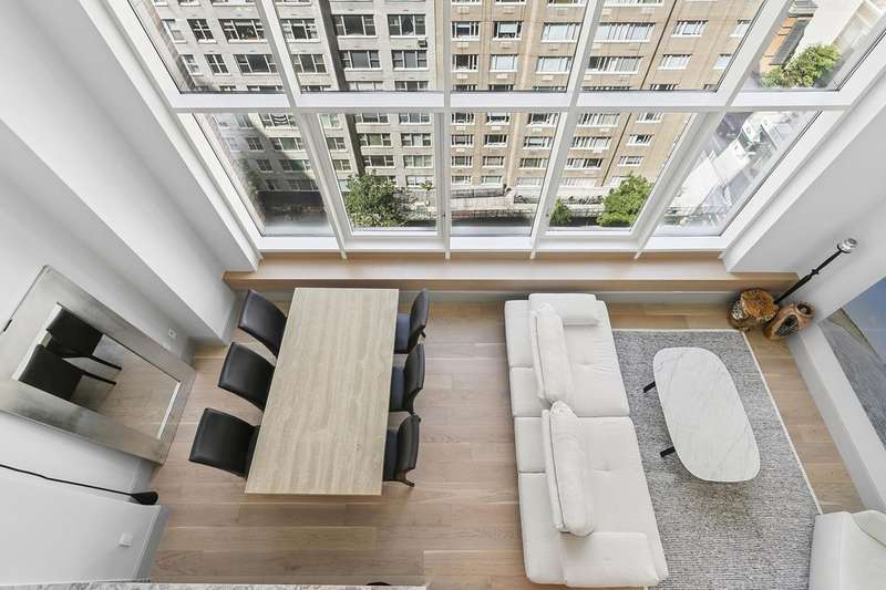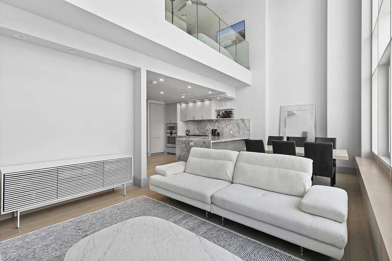 Welcome to an incredibly rare offering at The Leyton. This one-bedroom duplex residence is defined by soaring 19'6" ceilings, dramatic scale, and luminous floor-to-ceiling windows. This architecturally striking home combines loft-like proportions with sophisticated design details by renowned interior designer Elena Frampton. lt;brgt;The open-concept layout features a custom Poggenpohl kitchen outfitted with polished marble countertops and a full suite of integrated Gaggenau appliances, ideal for both everyday living and elevated entertaining. The lofted primary bedroom offers space for a king-sized bed and includes a spacious walk-in closet and a 5-piece ensuite bathroom finished with radiant heated floors and refined fixtures. A secondary full bathroom on the first floor is clad in Aged Dark Nature stone, accented by Fantini hardware.lt;brgt;lt;brgt;Framed by panoramic exposures, this one-of-a-kind residence captures beautiful city views. The light moves effortlessly through the home