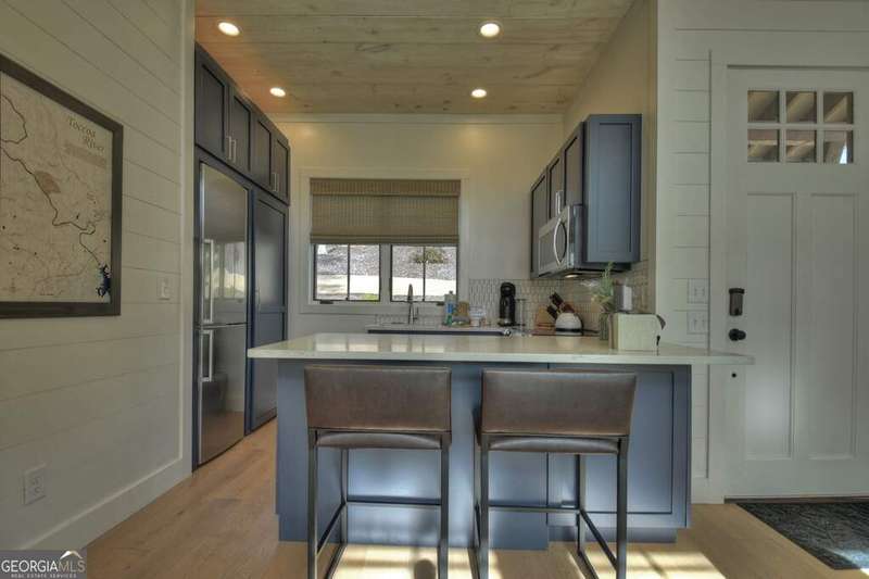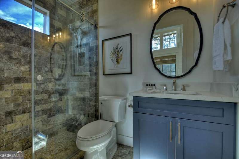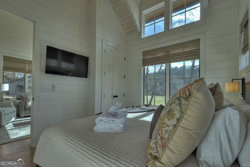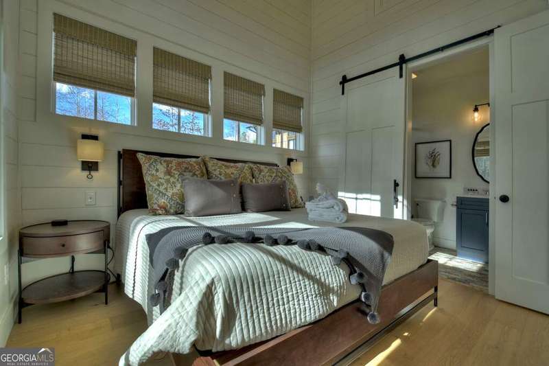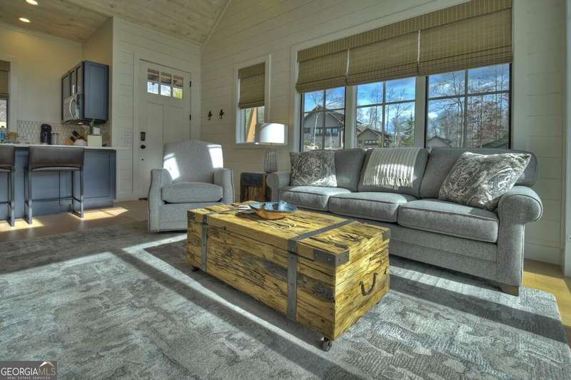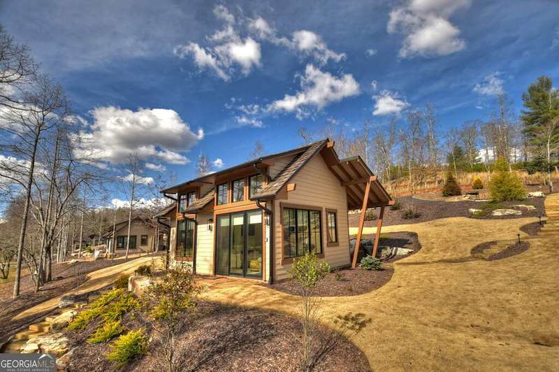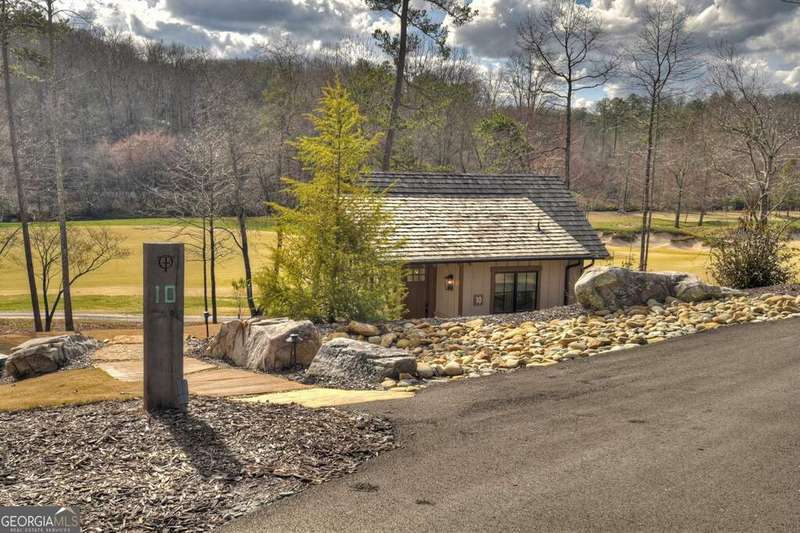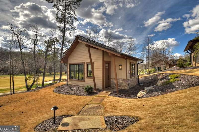 Nestled within the captivating landscape of the Hillside Cottages of Old Toccoa Farm, Cottage 10 boasts a prime location with breathtaking views of Hole 7's fairway and the serene Toccoa River. Among the collection of 15 charming one-bedroom cottages, this abode offers an exclusive opportunity to experience the prestigious Old Toccoa Farm lifestyle, distinguished as the sole 24-7 guard-gated residential 18-hole golf course in Blue Ridge. Inside Cottage 10, guests are greeted by a warm and inviting living space, complete with generous seating arrangements ideal for relaxation. The cottage features a well-equipped kitchen with bar seating, a cozy private bedroom, and a modern bathroom. Step outside onto the stone patio with a firepit, where one can revel in panoramic views of the golf course and river. Adorned with a cedar shake roof, board-and-batten construction, lush landscaping, and elegant stone accents, Cottage 10 epitomizes rustic charm and luxury living. Accessible via a private cart path, guests can easily venture to The Tavern @ Old Toccoa Farm for dining and entertainment. Professionally managed and offered fully furnished, Cottage 10 presents an unparalleled opportunity for an unforgettable retreat in the heart of nature's splendor.