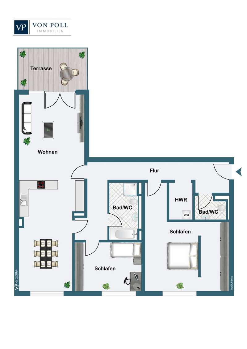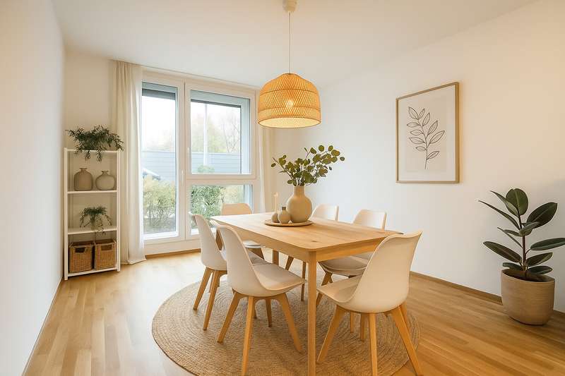 Move in straight away and start living - first occupancy included. Attractive 3-room new build first floor apartment with approx. 127 sqm in a quiet, yet central location. A stud wall makes it possible to create a fourth room. An approx. 10 meter long hallway leads to the open living, dining and kitchen area. This is ideal for growing families, a home office or a hobby area. The inviting entrance area leads into the spacious hallway with ample space for wardrobes and storage. From here you can reach all rooms, including a practical guest WC. In the bedroom, preparations have already been made for a walk-in closet, so you can start immediately with plenty of storage space. The heart of the apartment is the bright living and dining area with high-quality parquet flooring, floor-to-ceiling double windows and triple glazing - here you can enjoy light-flooded rooms and a cozy feel-good atmosphere. A modern ventilation system ensures a pleasant indoor climate all year round. Thanks to the innovative combined heat and power unit, you benefit from an environmentally friendly energy supply and permanently low ancillary costs. Adjacent you will find a separate fitted kitchen with brand-name appliances that will delight even the most demanding hobby chefs. The modern, high-quality fitted kitchen with first-class brand-name appliances is already included in the price. The spacious dining area offers space for cozy evenings with family and friends. The living room leads onto a cozy terrace that invites you to take a relaxing break. The electric blinds can be conveniently controlled by hand. The bathroom impresses with a bathtub, separate shower and high-quality sanitary facilities, complemented by an additional guest WC - maximum living comfort. The apartment has a separate cellar compartment and a storage room directly in the apartment. A communal laundry room provides additional convenience. Two dedicated parking spaces guarantee convenience and security for your vehicle.