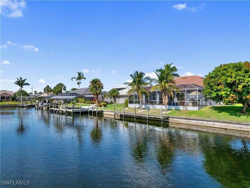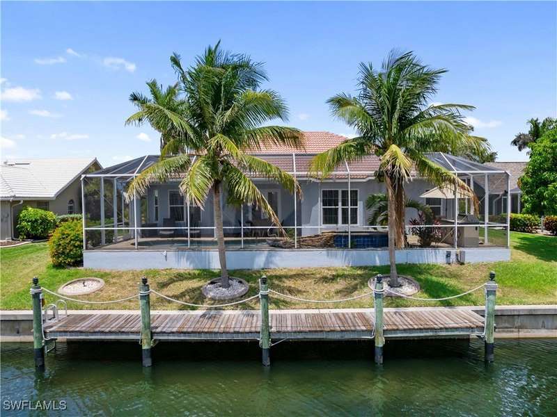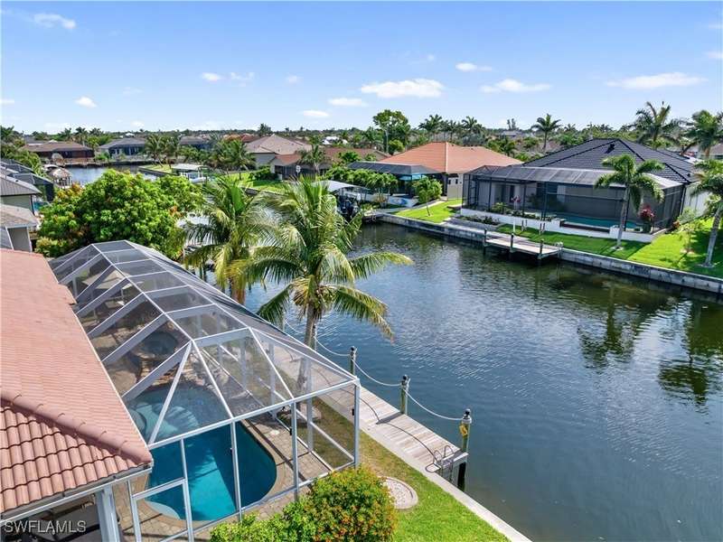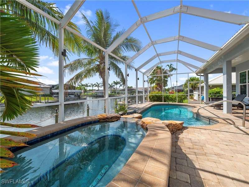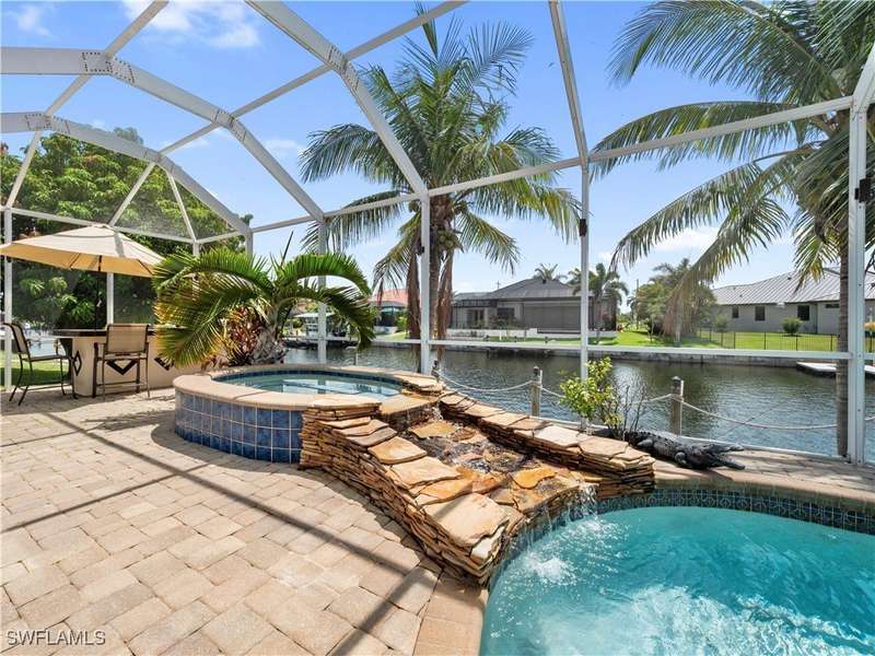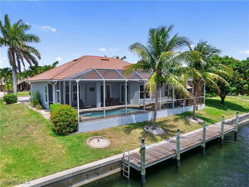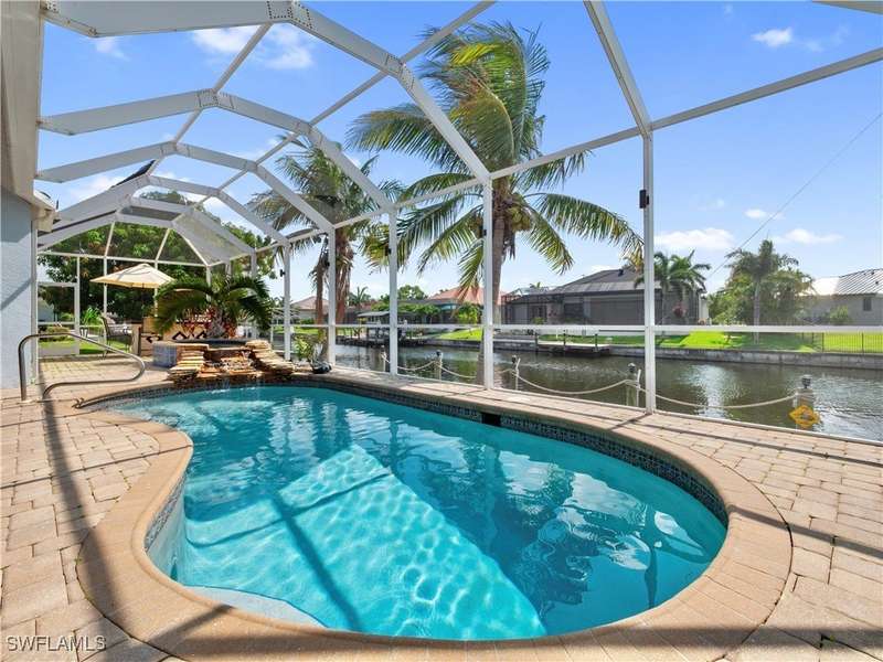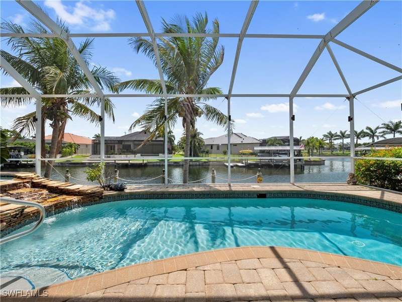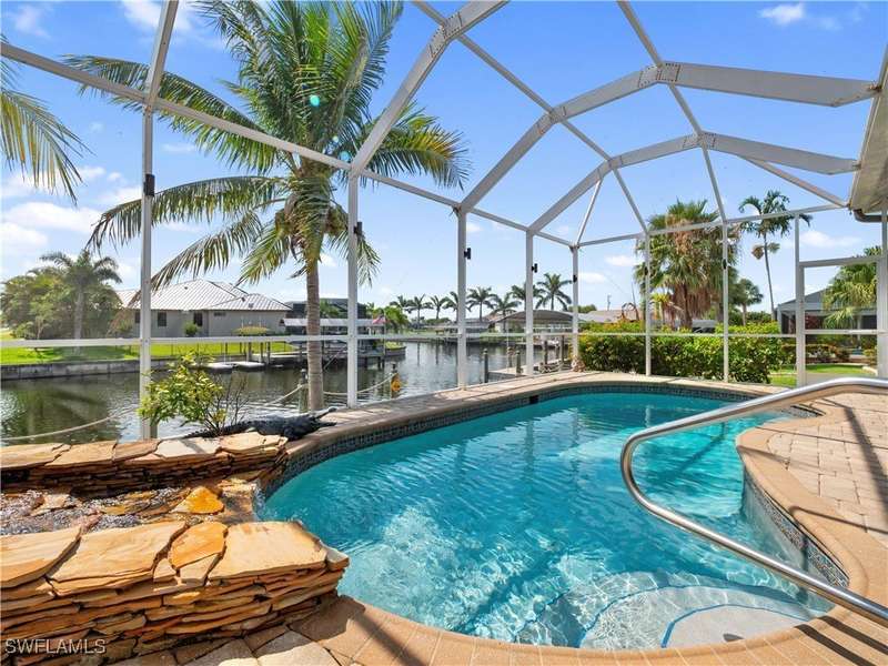 Welcome to the Harbor Breeze Retreat. This beautifully maintained Gulf access home offers the perfect blend of comfort, style, and coastal living. Nestled on a wide intersecting canal, the property provides peaceful water views and daily sightings of wildlife including turtles, fish, and ducks-all right from your backyard. The home features four spacious bedrooms, two bathrooms, and two separate living areas, creating plenty of space for entertaining or relaxing. Soaring ceilings and crown molding throughout add a sense of elegance and charm, while recent upgrades. Step outside to your private oasis-an inviting pool with a rock-streaming spa that enhances the tranquil outdoor setting and delivers a true resort-style experience. Whether you're hosting gatherings or enjoying a quiet evening under the stars, this space is designed to impress. Located just minutes from Cape Harbour's waterfront restaurants, boutique shops, and marina, this home is surrounded by multi-million-dollar properties and offers the ideal lifestyle for those who crave luxury and convenience. Don't miss out.