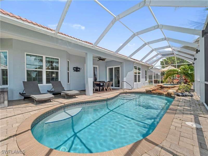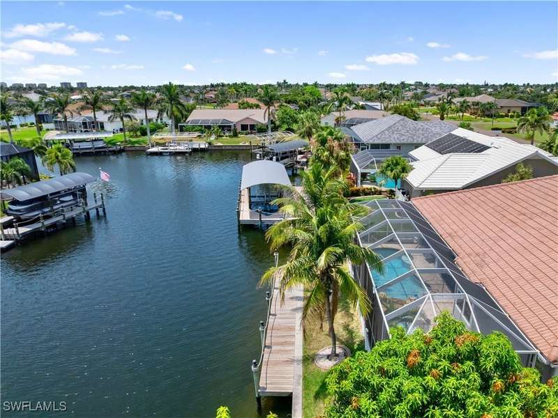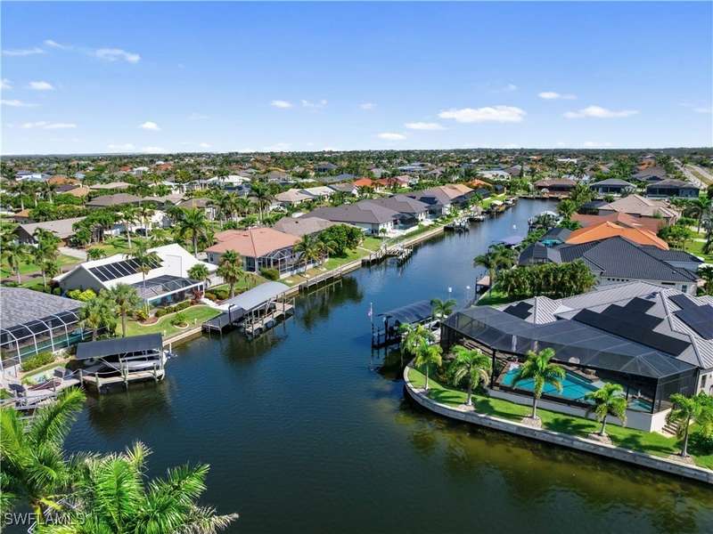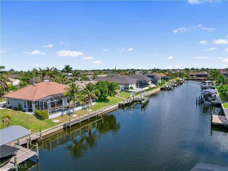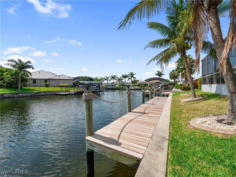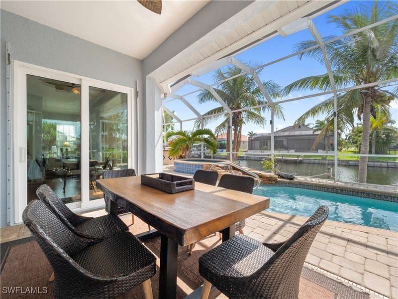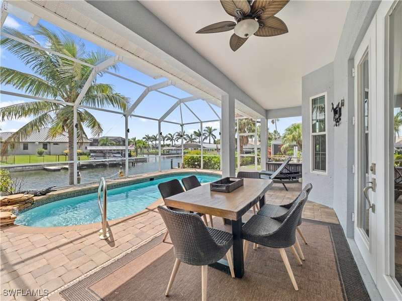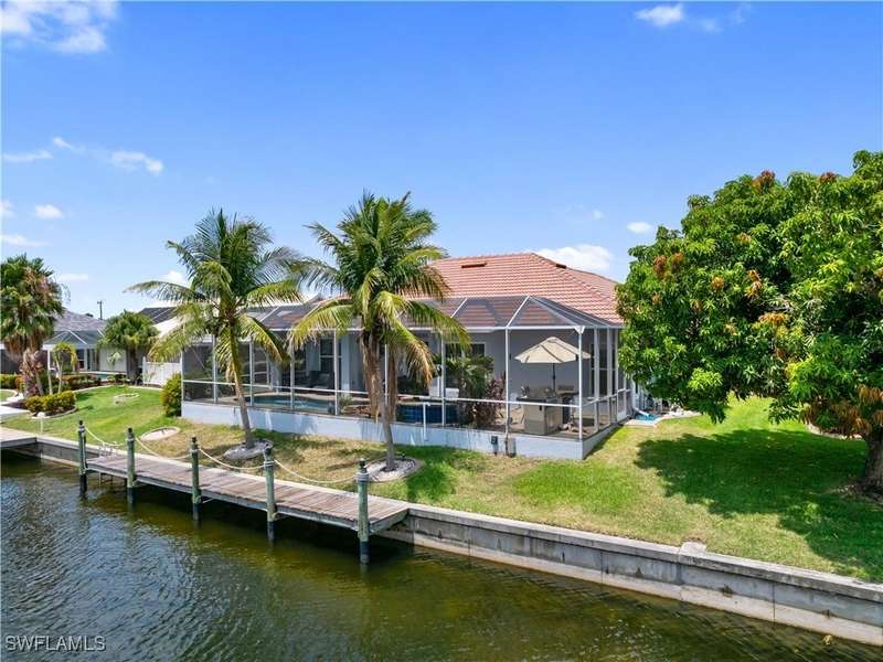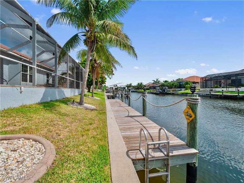 Welcome to the Harbor Breeze Retreat. This beautifully maintained Gulf access home offers the perfect blend of comfort, style, and coastal living. Nestled on a wide intersecting canal, the property provides peaceful water views and daily sightings of wildlife including turtles, fish, and ducks-all right from your backyard. The home features four spacious bedrooms, two bathrooms, and two separate living areas, creating plenty of space for entertaining or relaxing. Soaring ceilings and crown molding throughout add a sense of elegance and charm, while recent upgrades. Step outside to your private oasis-an inviting pool with a rock-streaming spa that enhances the tranquil outdoor setting and delivers a true resort-style experience. Whether you're hosting gatherings or enjoying a quiet evening under the stars, this space is designed to impress. Located just minutes from Cape Harbour's waterfront restaurants, boutique shops, and marina, this home is surrounded by multi-million-dollar properties and offers the ideal lifestyle for those who crave luxury and convenience. Don't miss out.
