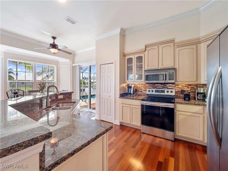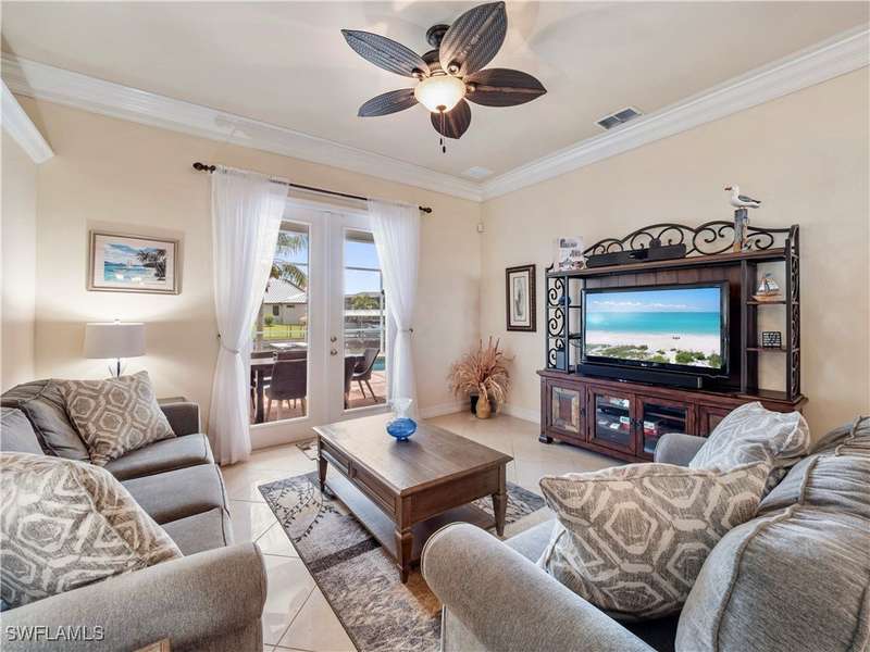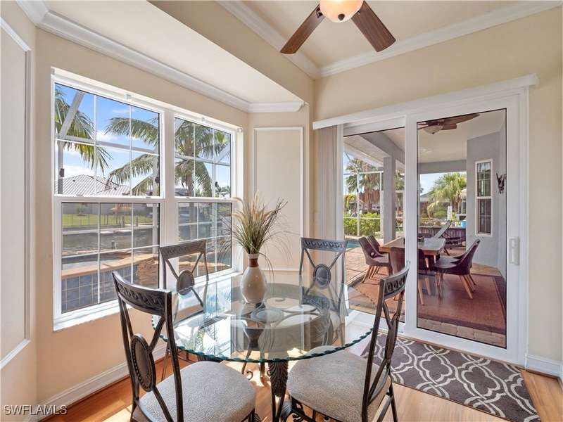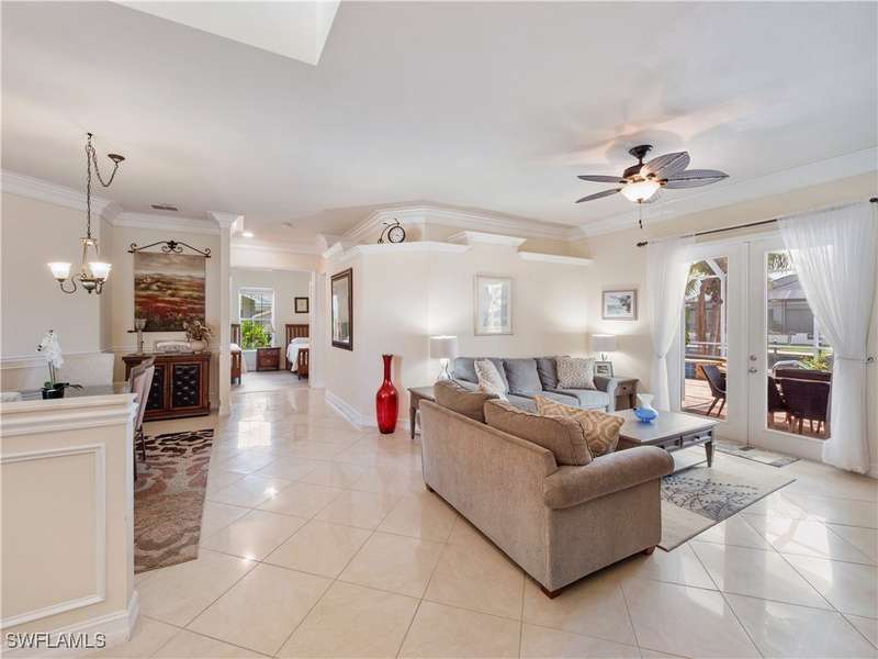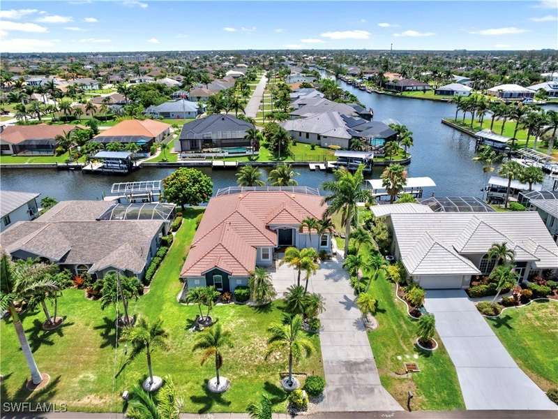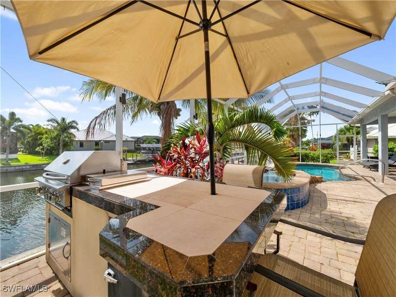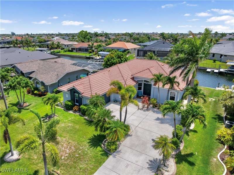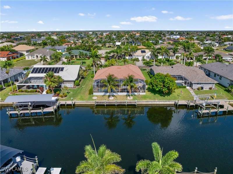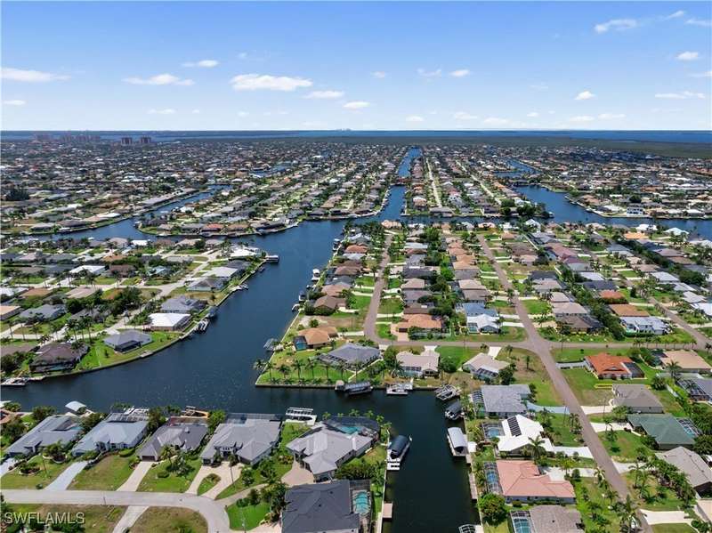 Welcome to the Harbor Breeze Retreat. This beautifully maintained Gulf access home offers the perfect blend of comfort, style, and coastal living. Nestled on a wide intersecting canal, the property provides peaceful water views and daily sightings of wildlife including turtles, fish, and ducks-all right from your backyard. The home features four spacious bedrooms, two bathrooms, and two separate living areas, creating plenty of space for entertaining or relaxing. Soaring ceilings and crown molding throughout add a sense of elegance and charm, while recent upgrades. Step outside to your private oasis-an inviting pool with a rock-streaming spa that enhances the tranquil outdoor setting and delivers a true resort-style experience. Whether you're hosting gatherings or enjoying a quiet evening under the stars, this space is designed to impress. Located just minutes from Cape Harbour's waterfront restaurants, boutique shops, and marina, this home is surrounded by multi-million-dollar properties and offers the ideal lifestyle for those who crave luxury and convenience. Don't miss out.
