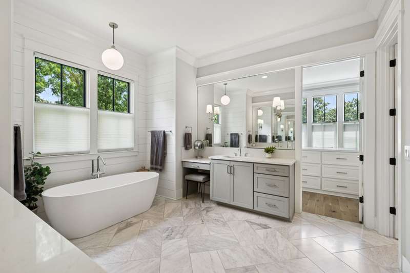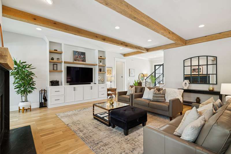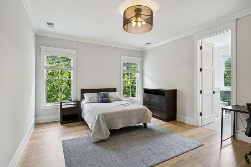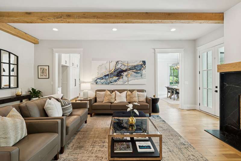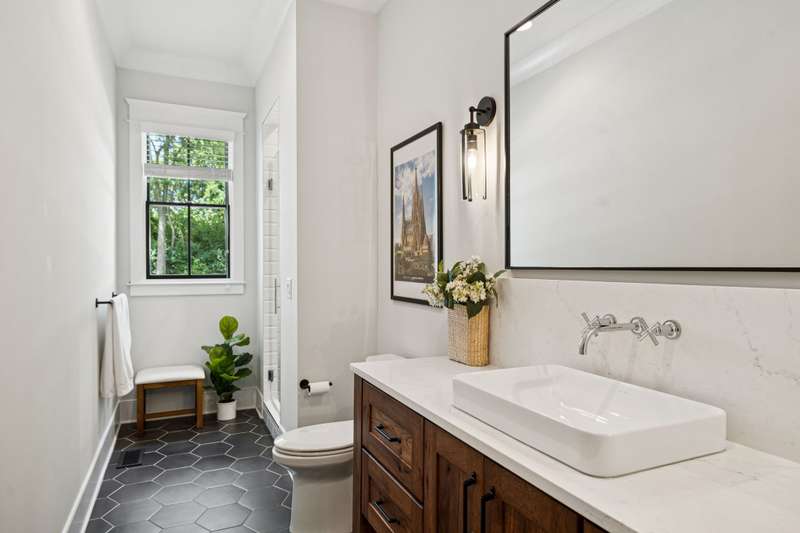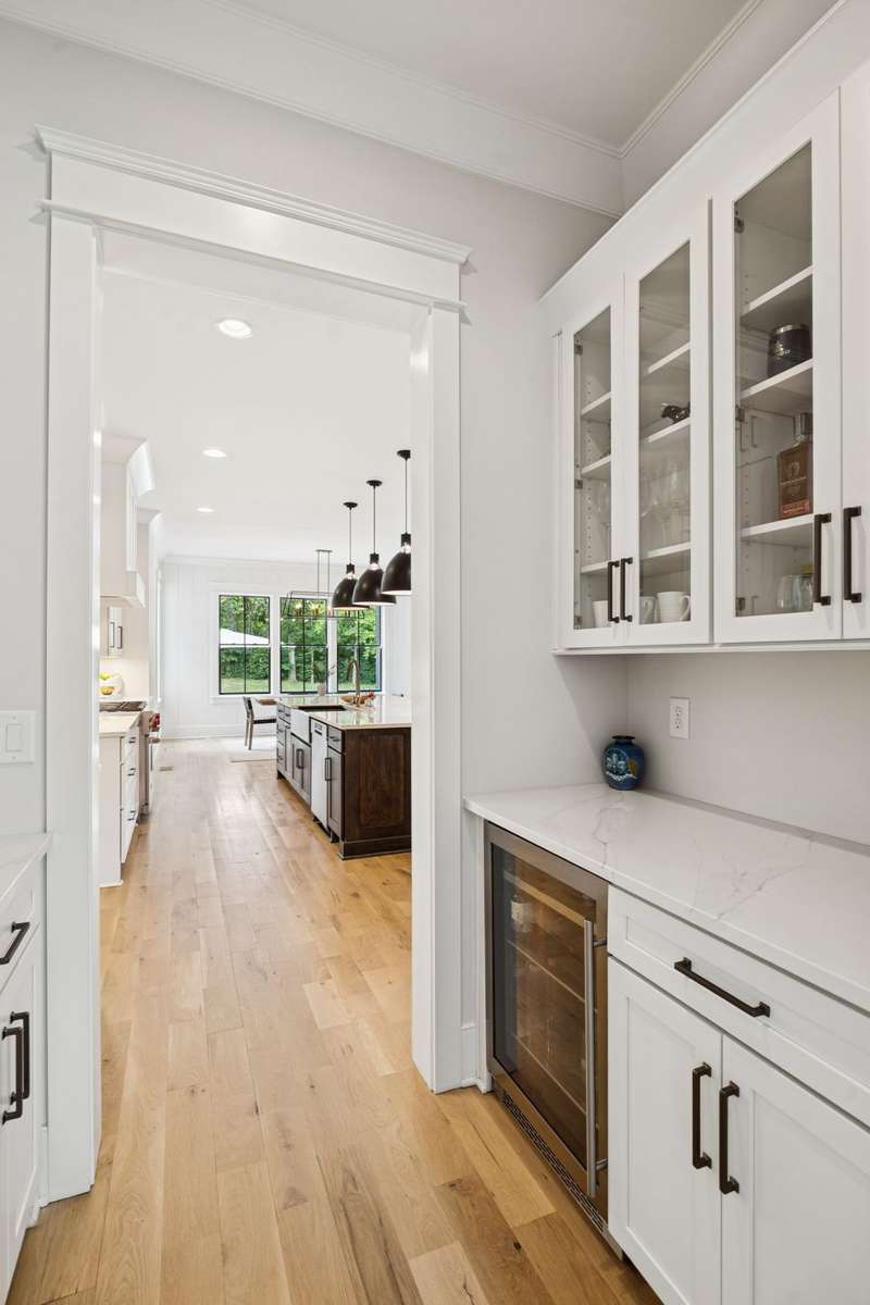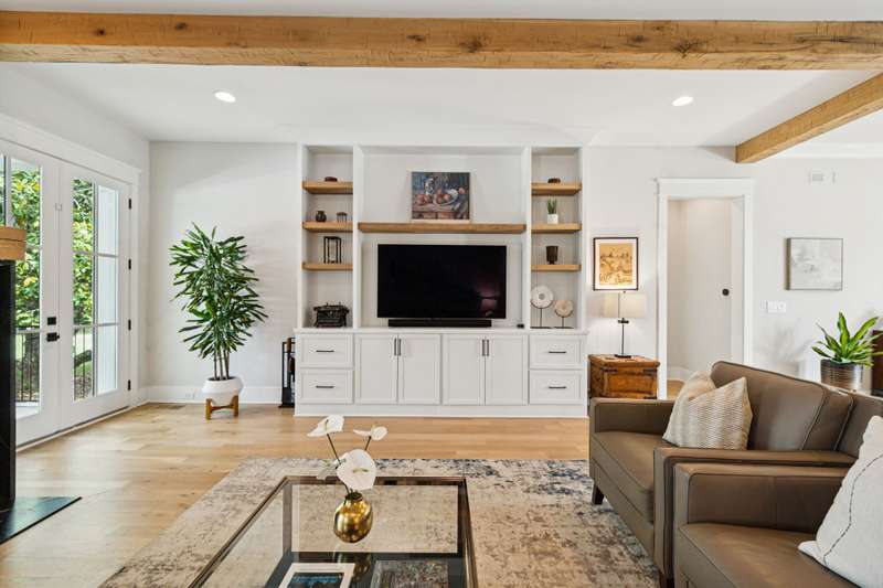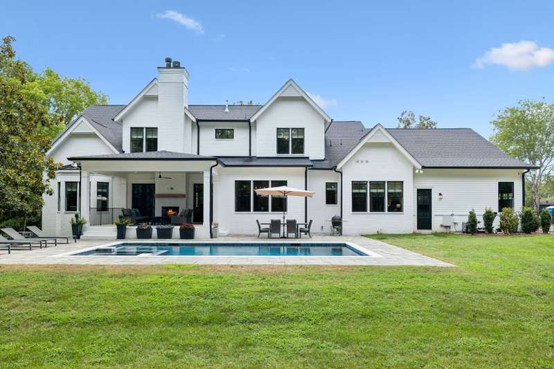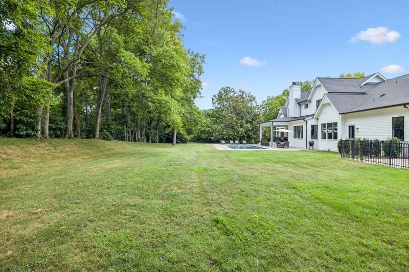 Luxury, comfort, and convenience meet at 5116 Williamsburg Rd in the sought-after Meadowlake community of Brentwood. From the moment you arrive, the beautiful white brick exterior, welcoming covered front porch, and inviting entry foyer set the tone for the elegance inside. Just off the foyer, the formal dining room features a shiplap accent wall, creating a seamless connection to the home's timeless design details. The heart of the home is the gourmet kitchen, boasting top-of-the-line appliances, ceiling-height cabinetry, a large center island, quartz countertops, a hidden walk-in pantry, and a spacious breakfast nook with a continued shiplap accent wall. The adjoining living room offers a cozy fireplace framed by wooden beams, custom built-in shelving, and dual French doors that open to the covered back porch--perfect for indoor-outdoor living. The main-level primary suite is a private retreat, showcasing a vaulted shiplap ceiling, bay window seating area, and a spa-inspired bath with a stand-alone soaking tub, double vanities, a dedicated makeup station, built-in tile bench in the shower, and a walk-in closet with custom storage. A guest suite on the main floor provides ideal accommodations for visitors. Additional thoughtful touches include a drop-zone with hooks and a bench, and a large laundry/utility room with generous counter space, hanging rods, and even a desk work area. Upstairs, you'll find a dedicated office or creative space, a spacious bonus room with a wet bar and beverage center, three more bedrooms, two full baths, and abundant unfinished storage space--offering room for future expansion. Step outside to your private 1-acre, fenced backyard oasis, complete with a covered porch featuring a fireplace, a sparkling heated saltwater pool, and an integrated spa--all backed by mature trees for privacy. Zoned for Williamson County's award-winning schools and ideally located near shopping, dining, and I-65, this home offers the ultimate living experience.