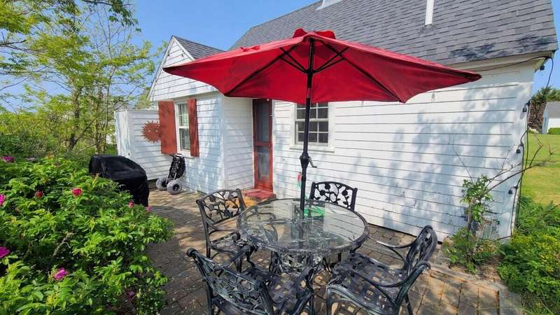 Charming Detached 2-Bedroom Cottage in Pilgrim Colony at Beach Point -This delightful seasonal condo offers all the character of a classic beach cottage with thoughtful updates throughout. Features include new windows, a new roof, newly painted exterior, a beautifully redone kitchen and bath, warm wood floors, and new split air/heating units. The home is filled with natural light and cozy touches, including a wood-burning fireplace and solid-surface countertops.Part of a 9-unit condo association, the property enjoys a lush green lawn, beach access, common areas, and a private back patio complete with an outdoor shower. Additional highlights include two parking spaces, pets permitted for owners, and an established strong weekly rental program. Offered turn-key (minus art & personal items), this cottage is ready for you to enjoy seaside living at its best.