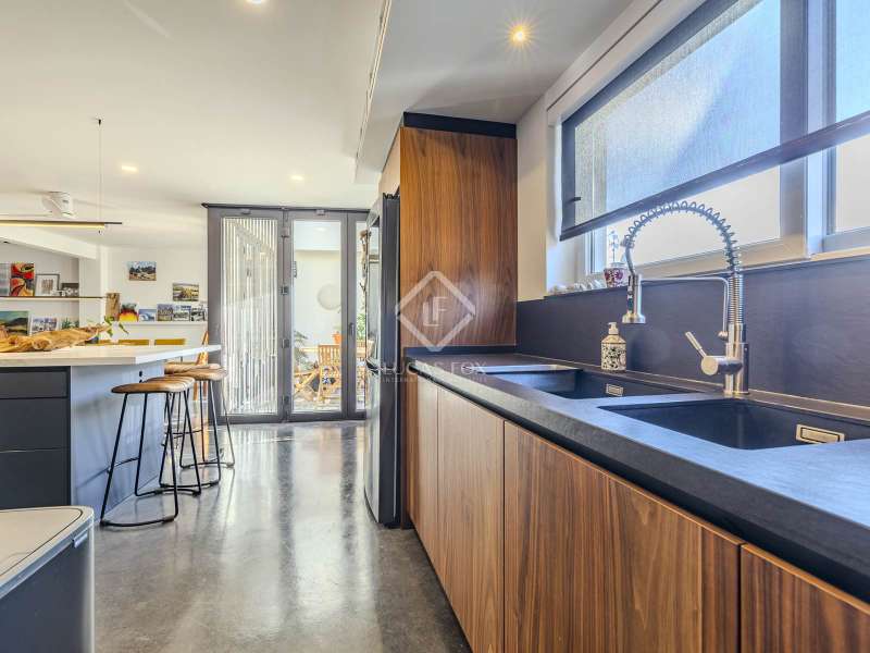 Located just moments from the sea and completely refurbished to the highest standards, the property boasts exceptional quality materials, spacious interiors, and cutting-edge technology for ultimate comfort. Distributed across three main levels, the townhouse features expansive open-plan living areas and a state-of-the-art kitchen that seamlessly connects to private terraces and balconies, perfect for indoor-outdoor living. Each of the four bedrooms benefits from its own en-suite bathroom, ensuring privacy and convenience. For added versatility, the property includes a completely independent one bedroom apartment on the lower floor with independent street access, ideal for guests or rental opportunities, as well as a self-contained studio on the upper floor. Designed for year-round living, this home is equipped with polished concrete floors, underfloor heating, and air conditioning, all efficiently powered by an air source heat pump and solar panels, ensuring both luxury and sustainability. The external spaces are thoughtfully designed to complement the luxurious interiors, featuring a summer kitchen for al fresco dining, a hot tub with stunning west-facing views, sunbathing areas and large dining terraces (covered & uncovered) as well as a private roof terrace with breathtaking sea views. A unique highlight of this townhouse is its double garage, providing ample parking and additional storage—an invaluable feature in this sought-after location. Situated within walking distance of the beach, fine dining, boutique shops, and marina, this one-of-a-kind property offers the perfect blend of coastal elegance and modern convenience. An exceptional opportunity for luxurious year-round living or an exclusive holiday retreat in one of the most desirable areas of Javea. Please contact us for further information.