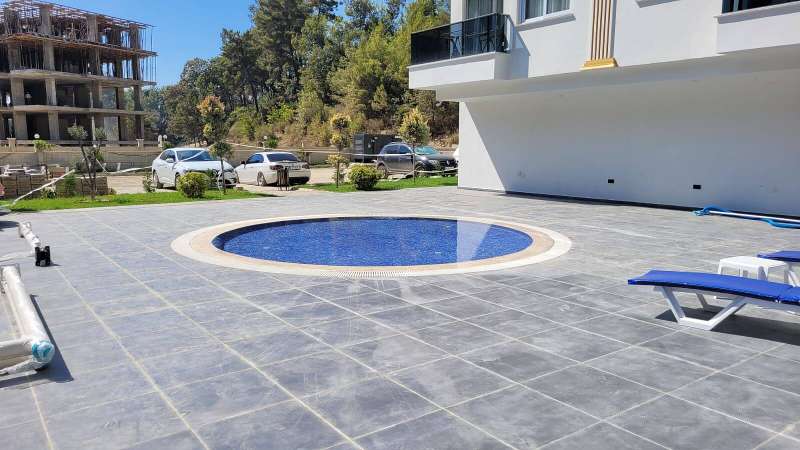 The apartments are in a complex consisting of two connected blocks, with a total of 180 apartments. The complex offers rich amenities such as open and closed pools, a water park, spa, Turkish bath, sauna, steam room, relaxation room, gym, cinema, restaurant, library, cafe-bar, mini-golf, tennis court, basketball and volleyball courts, children's play area, game room, mini-club, generator, free internet, TV satellite system, pergola and barbecue, parking, concierge, 24/7 security cameras, and security.