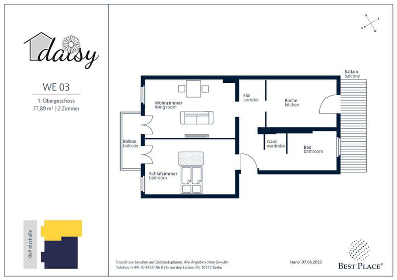 Im Jahre 1892 entstand das Wohnhaus "Daisy", bestehend aus Vorderhaus und der Remise mit einer zauberhaften Maisonette. Der Haupteingang führt direkt in den hellen, sehr gepflegten Gartenhof. Er strahlt mit seiner von Bäumen geschützten Holzbank eine ruhige Atmosphäre aus. Die vermieteten 2- und 4-Zimmer-Wohnungen im Vorderhaus verfügen über einen großen Balkon bzw. eine moderne Loggia mit Ausblick ins Grüne. So verbindet sich beim Projekt "Daisy" die zentrale, werthaltige Lage mit einer Erholungsoase zum perfekten Rückzugsort für Singles, Paare und junge Familien.