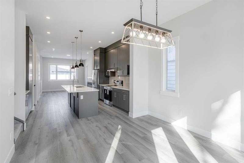 MOVE-IN READY! Stunning Semi-Detached infill in Desirable WEST HILLHURST! Welcome to this beautifully crafted home offering over 2,100 sq. ft. of finished living space, including 4 bedrooms and 3 full bathrooms. Every detail has been meticulously designed with no expense spared and no corners cut. Step inside to soaring 10' ceilings, gleaming floors, and an abundance of natural light that fills the open-concept main floor. The chef-inspired kitchen boasts ceiling-height custom cabinetry, a sleek tile backsplash, built-in pantry, designer pendant lighting, and a massive island with bar seating—perfect for entertaining. Upstairs, you’ll find 3 spacious bedrooms, including a luxurious primary suite with a custom walk-in closet and a spa-like ensuite featuring dual vanities, a stand-up shower with dual heads, and a deep soaker tub—ideal for unwinding after a long day. The upper level also includes a dream laundry room with plenty of space and functionality. The fully finished basement expands your living space with a large rec room, stylish wet bar, full bathroom, and a huge fourth bedroom—perfect for guests or a home office. Enjoy privacy in the fenced backyard, and convenience with a double detached garage. Don’t miss this opportunity to live in one of Calgary’s most sought-after inner-city communities!