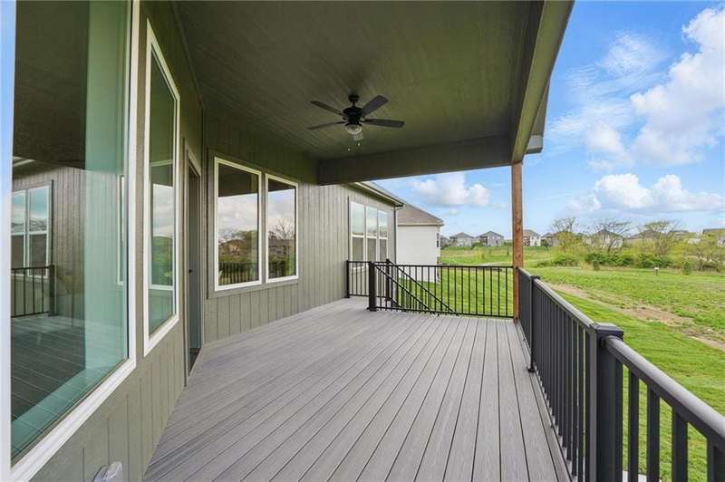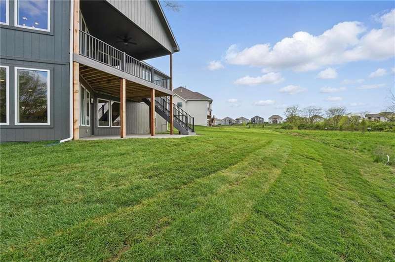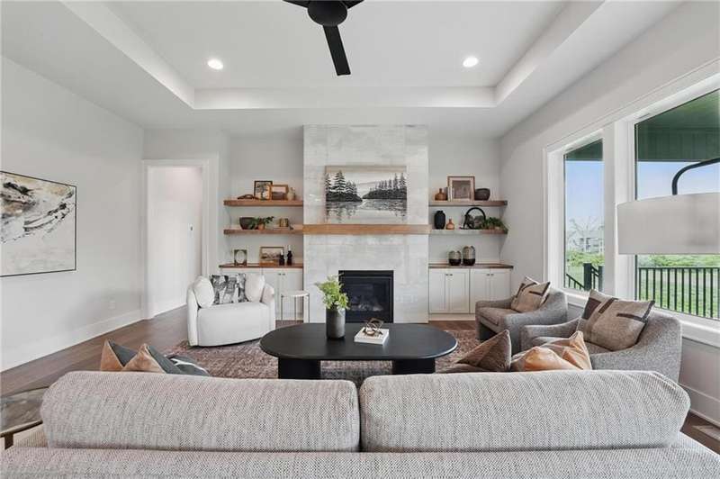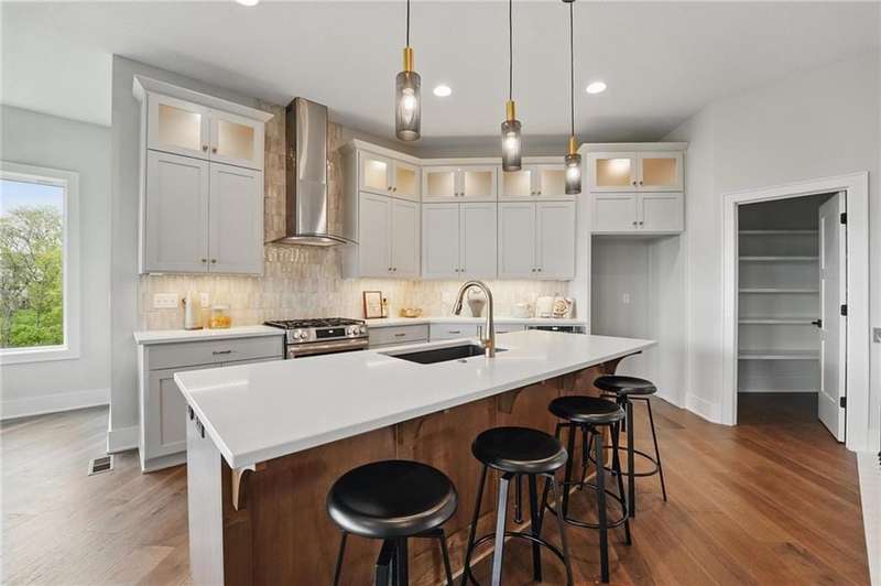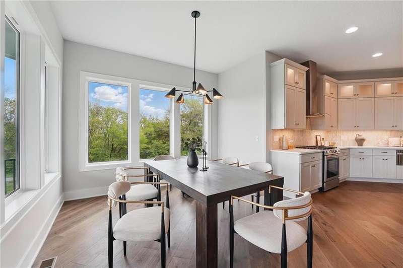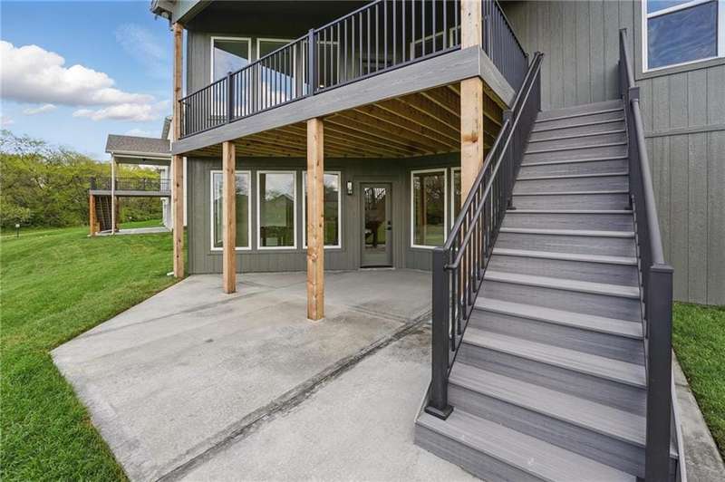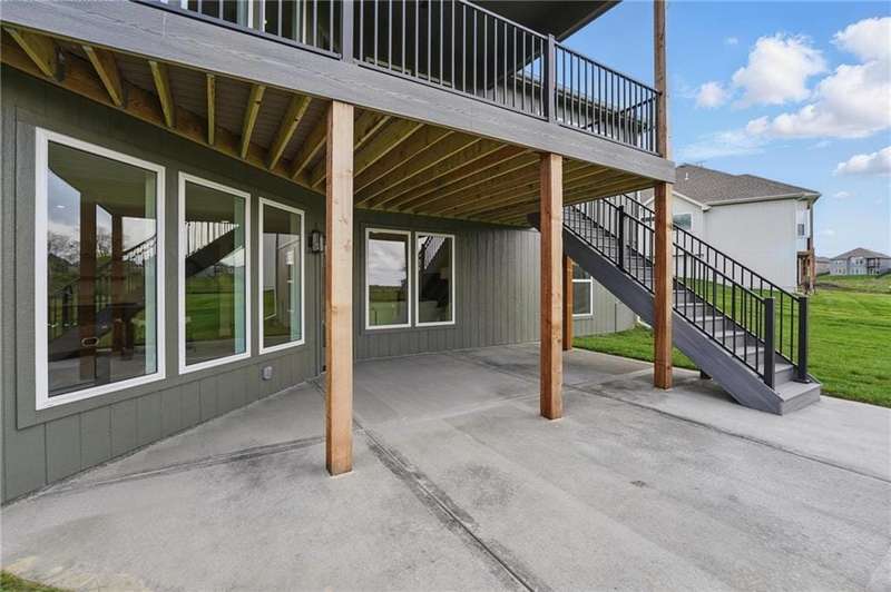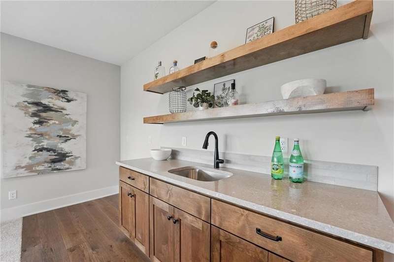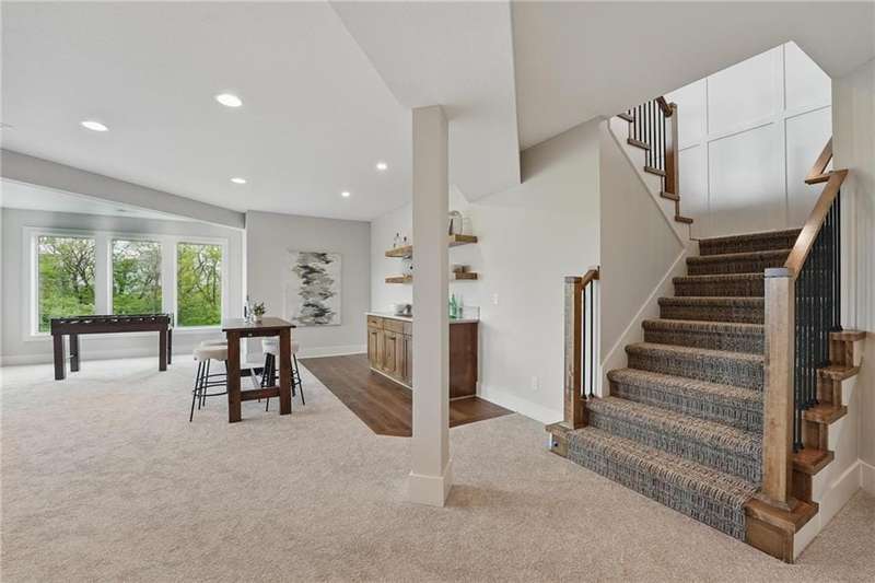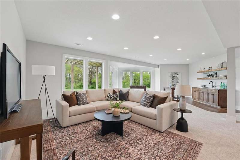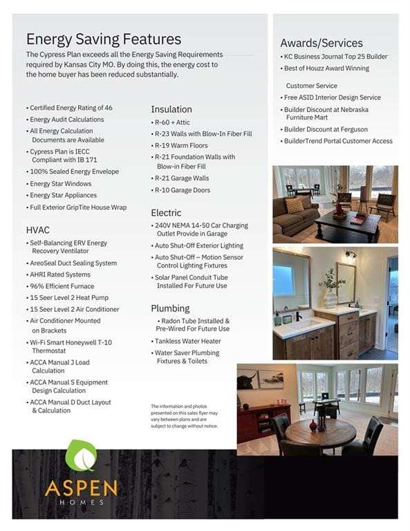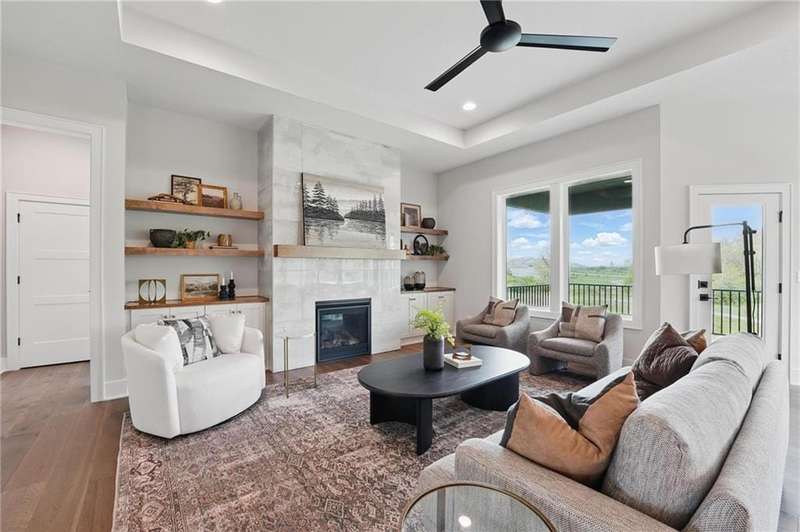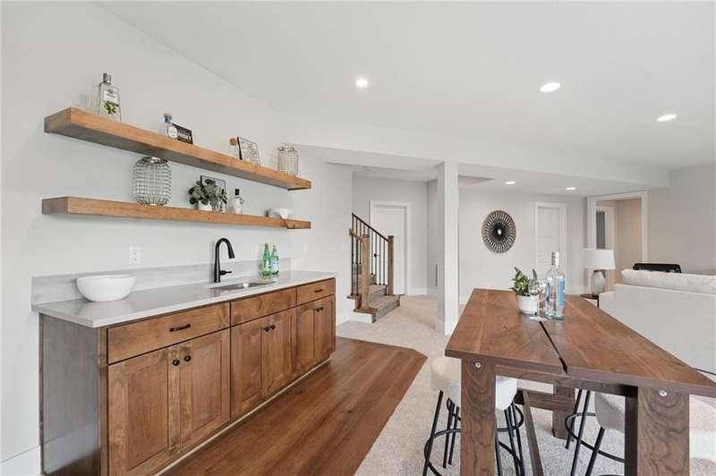 Model Home For Sale! Stunning Aspen Homes Cypress Reverse 1.5 Story, beautifully positioned on a walkout lot that backs to serene trees, offering both privacy and nature-filled views. This meticulously crafted home is nearing completion and promises a blend of modern design & luxurious finishes throughout. The kitchen is a chefs dream, featuring sleek quartz countertops, custom-built cabinetry with glass uppers, a generous walk-in pantry, & a gas stove perfect for both everyday meals & entertaining. The open floor plan flows effortlessly into the great room, where you'll find built-ins surrounding a striking floor-to-ceiling tile fireplace, creating a warm and inviting focal point. The primary suite is a true retreat, offering an elegant accent wall, walk in closet, spacious double vanity & quartz counters. Relax in the freestanding soaker tub, surrounded by trendy tile, or enjoy the zero-entry shower with rain showerhead. On the main level, you'll find a secondary bedroom with hardwood floors that can also be used as a stylish office space. The angled breakfast room offers beautiful views of the treed lot, providing the perfect spot to enjoy a meal or your morning coffee. The finished lower level extends the living space with two additional bedrooms, a wet bar, and an abundance of windows that bring in natural light, creating a bright and airy atmosphere. Designed with energy efficiency in mind, this home boasts a Certified Energy Rating of 46. Enjoy the benefits of Energy Star windows and appliances, blown-in insulation, a tankless water heater, and an energy-efficient HVAC system with a self-balancing ERV energy recovery ventilator and Aeroseal duct sealing to maximize comfort and reduce energy costs. Located within the award-winning North Kansas City School District in the Staley High attendance area. The Hunt Midwest Community offers a completed swimming pool and walking trails. Furniture not included. Taxes & SqFt estimated