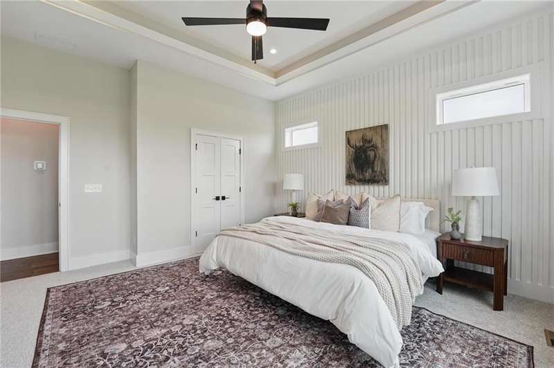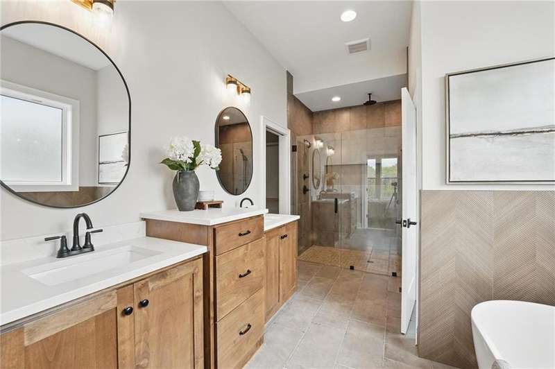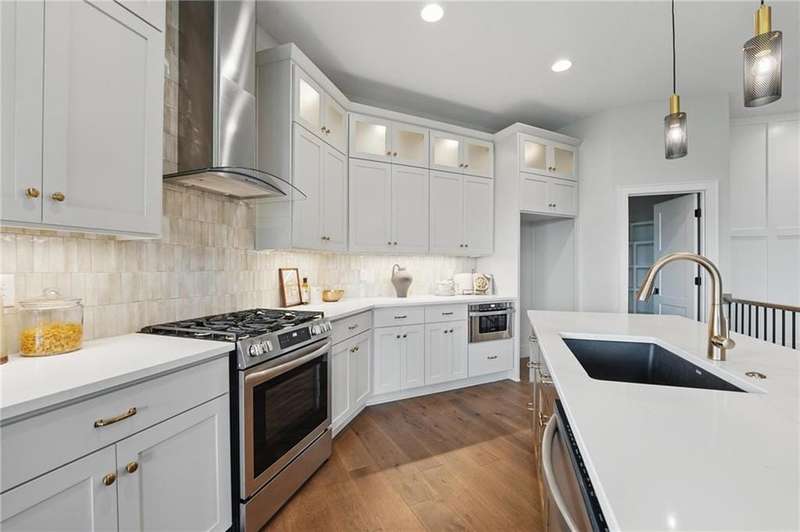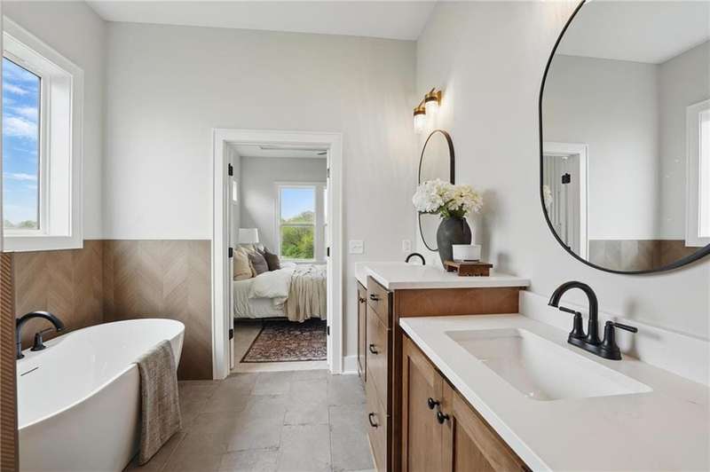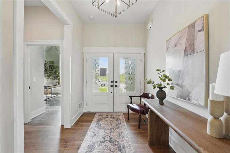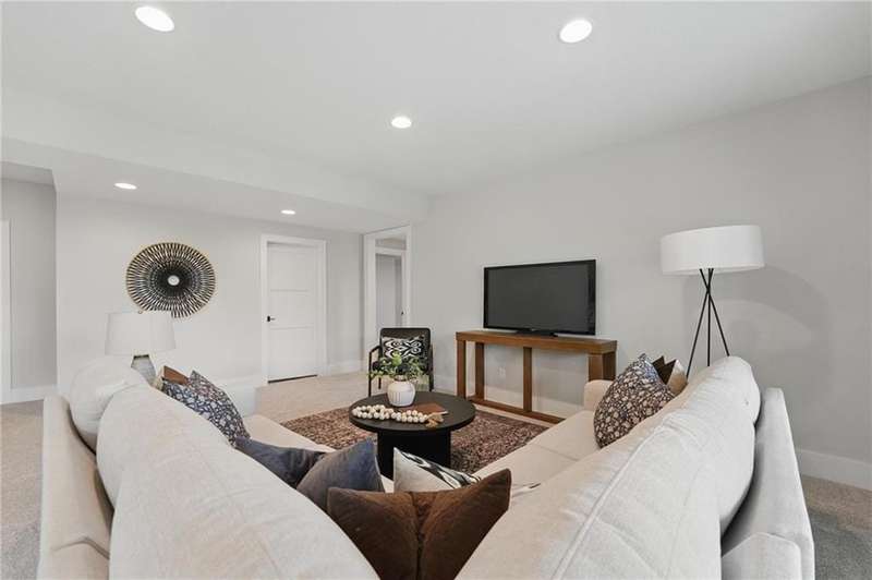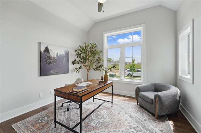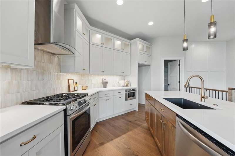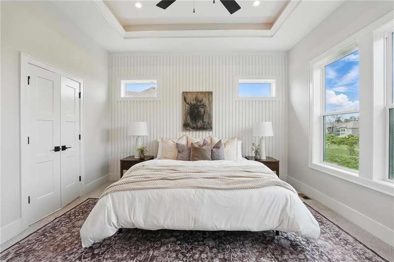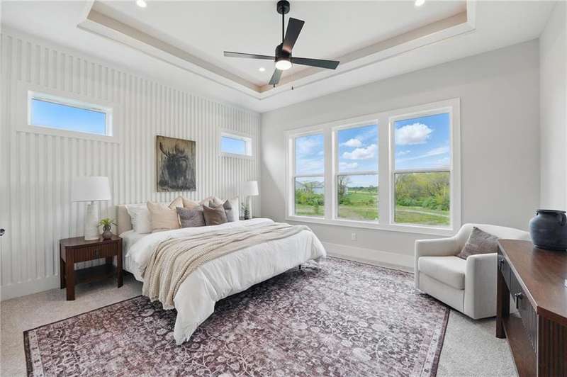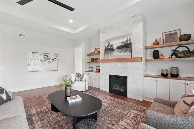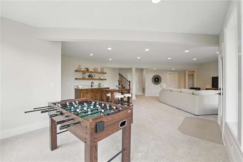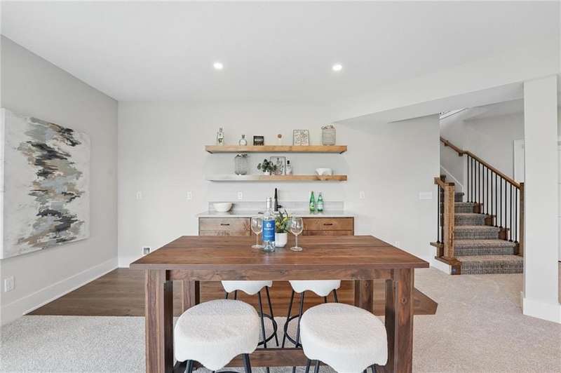 Model Home For Sale! Stunning Aspen Homes Cypress Reverse 1.5 Story, beautifully positioned on a walkout lot that backs to serene trees, offering both privacy and nature-filled views. This meticulously crafted home is nearing completion and promises a blend of modern design & luxurious finishes throughout. The kitchen is a chefs dream, featuring sleek quartz countertops, custom-built cabinetry with glass uppers, a generous walk-in pantry, & a gas stove perfect for both everyday meals & entertaining. The open floor plan flows effortlessly into the great room, where you'll find built-ins surrounding a striking floor-to-ceiling tile fireplace, creating a warm and inviting focal point. The primary suite is a true retreat, offering an elegant accent wall, walk in closet, spacious double vanity & quartz counters. Relax in the freestanding soaker tub, surrounded by trendy tile, or enjoy the zero-entry shower with rain showerhead. On the main level, you'll find a secondary bedroom with hardwood floors that can also be used as a stylish office space. The angled breakfast room offers beautiful views of the treed lot, providing the perfect spot to enjoy a meal or your morning coffee. The finished lower level extends the living space with two additional bedrooms, a wet bar, and an abundance of windows that bring in natural light, creating a bright and airy atmosphere. Designed with energy efficiency in mind, this home boasts a Certified Energy Rating of 46. Enjoy the benefits of Energy Star windows and appliances, blown-in insulation, a tankless water heater, and an energy-efficient HVAC system with a self-balancing ERV energy recovery ventilator and Aeroseal duct sealing to maximize comfort and reduce energy costs. Located within the award-winning North Kansas City School District in the Staley High attendance area. The Hunt Midwest Community offers a completed swimming pool and walking trails. Furniture not included. Taxes & SqFt estimated