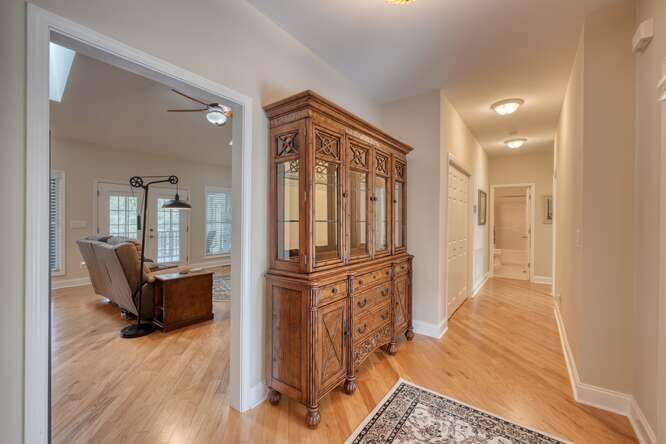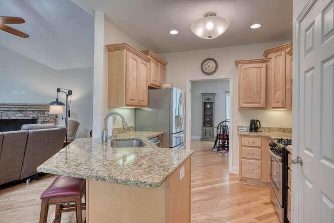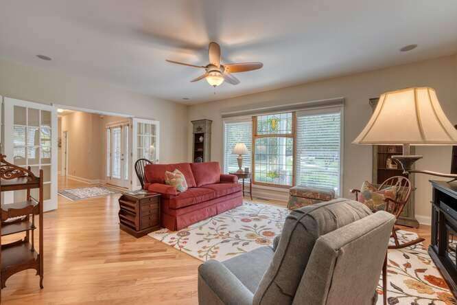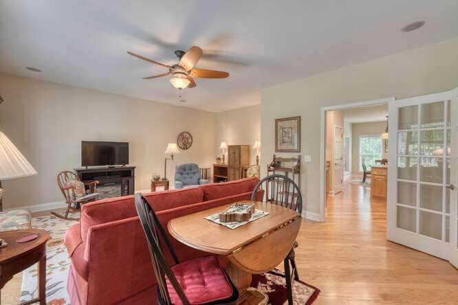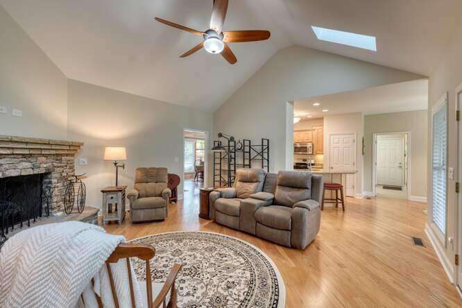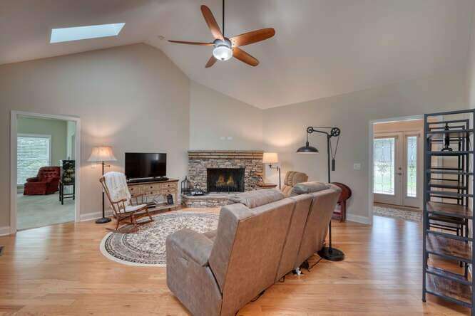 Wow! Check out this immaculate home in the sought after community of Owen Glen. This pristine home boasts one level living with 3 BR/2 Bath and an open floor plan. There are 2 spacious living room areas for your enjoyment and entertaining. Vaulted ceilings with skylights and windows galore let in the magnificent sunlight. The two upgraded enclosed porch areas provide wonderful spaces for your relaxation. There is a large primary suite with huge walk-in closet and beautiful ensuite bathroom with an extra-large glass block walk-in shower. The kitchen is open to one of the living areas and has granite counter tops and updated appliances. Two additional bedrooms and a full bath compliment this floor plan for guests or extended family. Large laundry room is located off the kitchen, also with an entrance from the oversized garage. This residence also comes complete with whole house generator. You will love the beautiful 1.56-acre lot with a creek and manicured landscaping. Additional amenities include golf course, swimming pool, tennis/pickleball courts and a gorgeous clubhouse. This home is a JEWEL...don't miss this one.