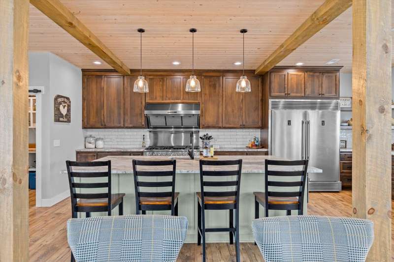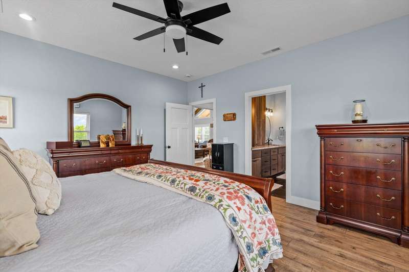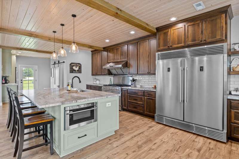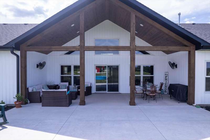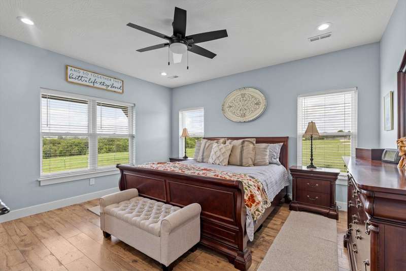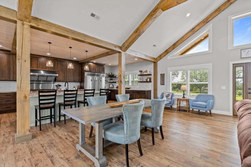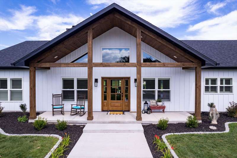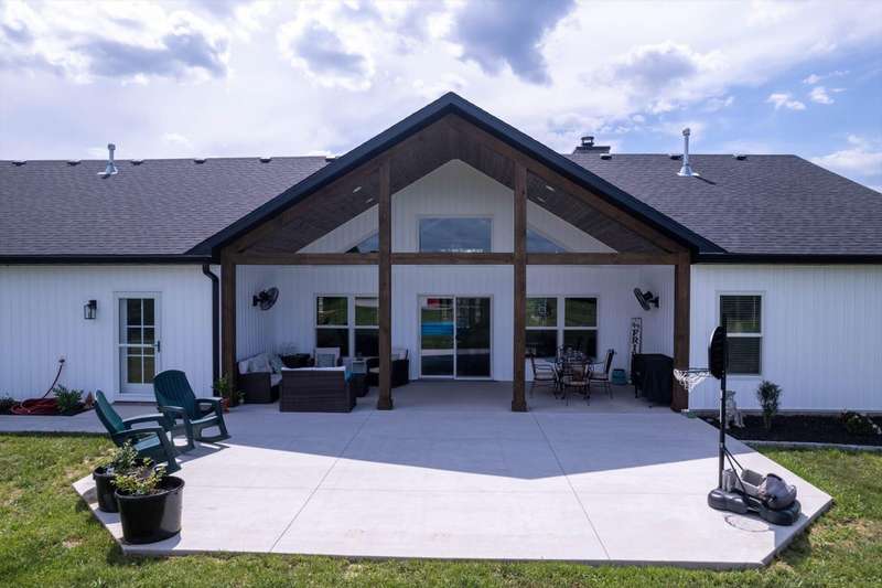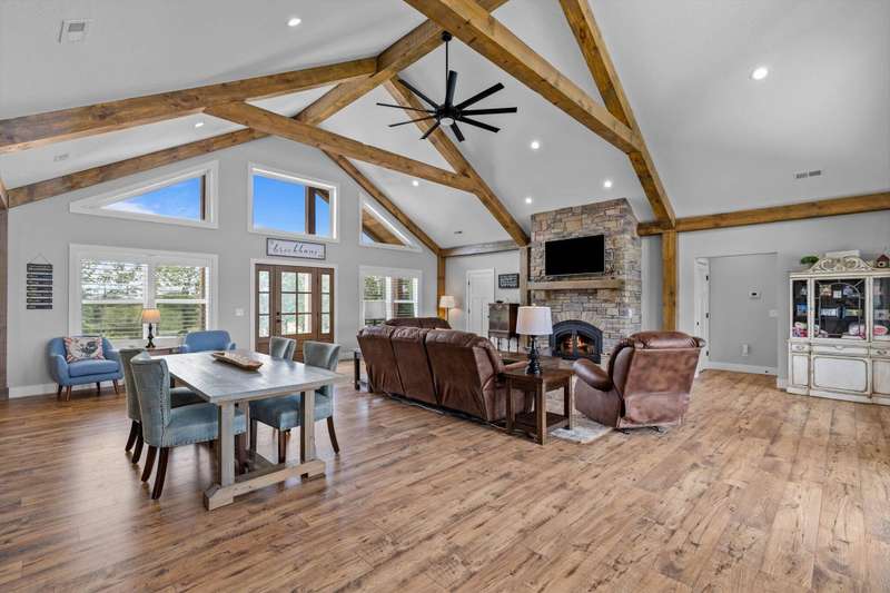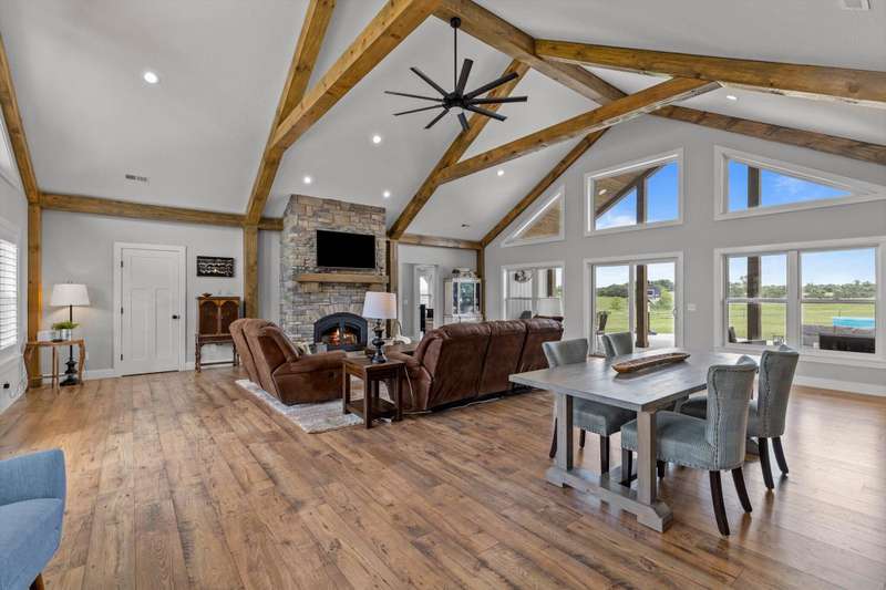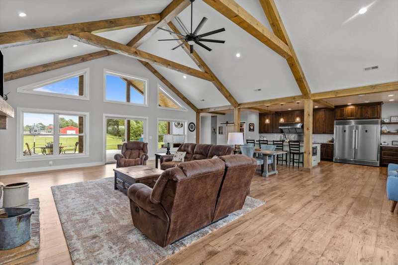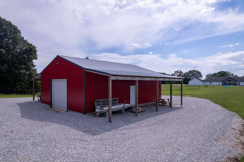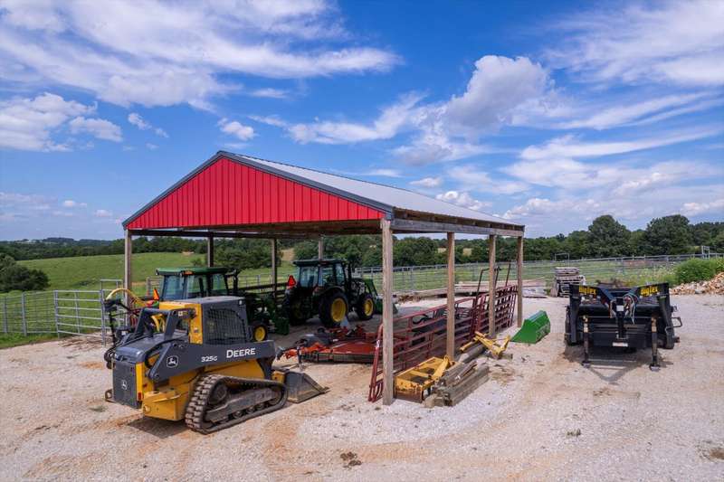 Welcome to your own private piece of paradise! This nearly new modern farmhouse is nestled on 24 gently rolling acres surrounded by breathtaking panoramic views. Can be combined with two 15 acre parcels for 54 acres total! Just a quick 30 minute drive from Springfield, this property offers the perfect mix of seclusion, space, and convenience. Immediately upon pulling into the circle drive you will fall in love! The pristine white exterior and fresh landscaping provide incredible curb appeal. The covered front porch allows you to enjoy the tranquil scenery all year long. Inside, an open floor plan showcases vaulted ceilings, exposed wooden beams, and a gorgeous floor-to-ceiling stone fireplace. Large windows flood the space with natural light. The gourmet kitchen is sure to impress with a large walk-in pantry, custom cabinetry, and top of the line appliances including a double oven with an 8 burner stovetop and oversized refrigerator. Entertaining will be a breeze with the spacious center island, stunning marble countertops, coffee/wine bar, and plenty of room for a formal dining area. Enjoy the privacy of a split floor plan with the additional bedrooms adjoined by a Jack and Jill bathroom. One bedroom's closet doubles as a safe room/storm shelter, ensuring peace of mind. The master suite boasts some of the best views in the whole house, not to mention the closet of your dreams with built-in shelving. The luxurious master bathroom has a double vanity, soaking tub and walk-in shower. Easily control your comfort level with dual HVAC units. The covered back patio overlooks the Ozark foothills and provides ample space for outdoor living and dining areas. Within walking distance of the house, you'll find a 30'x40' shop with garage bays on the front and back as well as a 30'x30' machine shed. The property features a pond as well as for your livestock or equestrian needs.