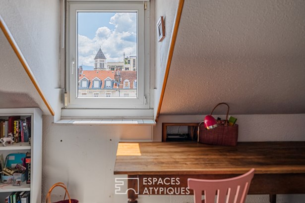 Located on Place Vaucanson, on the fourth and top floor of a beautiful early 19th-century building, this 62 sqm apartment (44 sqm Carrez law) offers a timeless escape in the city center.