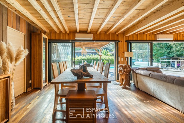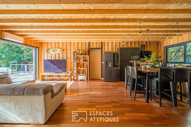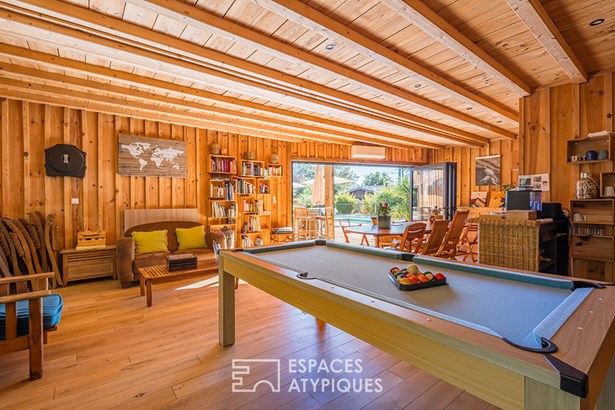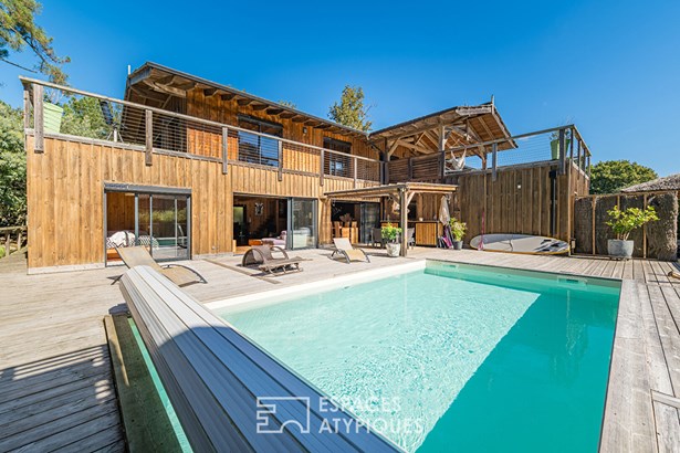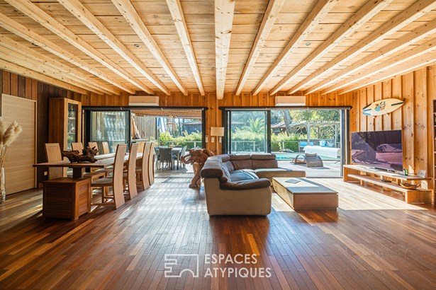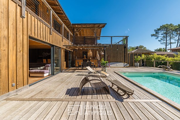 Nestled in absolute tranquility, just steps from the clear waters of Lake Moutchic, this remarkable wooden house offers a perfect harmony between unspoiled nature and high-end comfort. A unique place where one can enjoy a rare art of living, between the Landes forest and the lake shore.