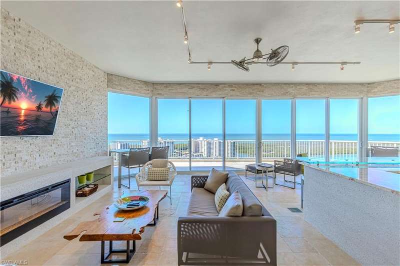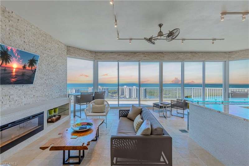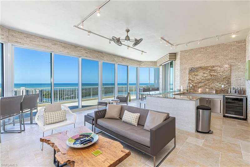 Glamour by the Gulf A Penthouse Experience Like No Other. Step off your private elevator into the breathtaking grandeur of Penthouse 2 at The Dunes of Naples an ultra-luxurious, rarely available 5,700 sq. ft. masterpiece soaring above the Gulf. This 16th-floor stunner delivers uninterrupted 180 panoramic views of the Gulf of Mexico and twinkling evening skyline, all enjoyed from an expansive wraparound terrace that redefines outdoor living. The furnishings and accessories strike the perfect balance of style and comfort, creating a welcoming yet elegant atmosphere. The chef s kitchen is a culinary dream, featuring double ovens, a walk-in pantry, and is fully stocked with everything you ll need for your stay. You'll likely find yourself gravitating to the lanai bar, complete with a built-in BBQ and wine fridge the perfect spot for effortless entertaining and taking in the unforgettable sunsets over the Gulf. The primary suite occupies its own private wing and is a true sanctuary, co