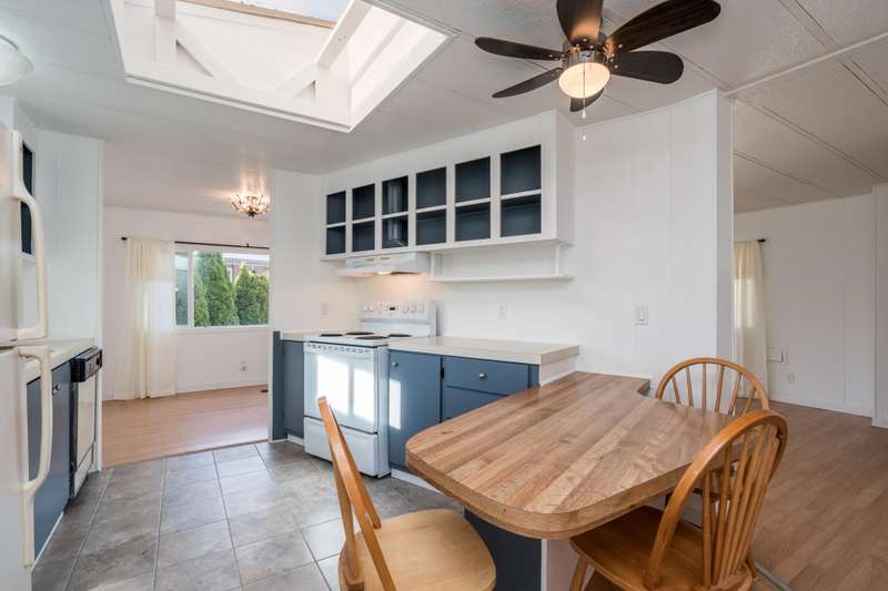 Cherry Brook Park-Own Your Land! Solid double-wide home sits on a spacious, pie-shaped lot in the desirable 55+ community of Cherry Brook Park, this property offers privacy, space, and convenience in one package. Parking for 4 vehicles, Powered 10’ x 8’ shed perfect for hobbies or storage, Attached 10’ x 5’ storage room, Large outdoor deck ideal for entertaining, Pet-friendly, Upgrades: New flooring throughout, Fresh interior paint, bathroom with new shower, Some new thermal windows,10-year-old high-efficiency gas furnace. Bright open living features a sunny skylight, the spacious kitchen, plenty of room to cook and gather. Mstr bedroom easily fits a king-size bed. Clubhouse, great location, access to Hwy 99, Beach, shopping, hospitals, recreation, and transit. Affordable opportunity!