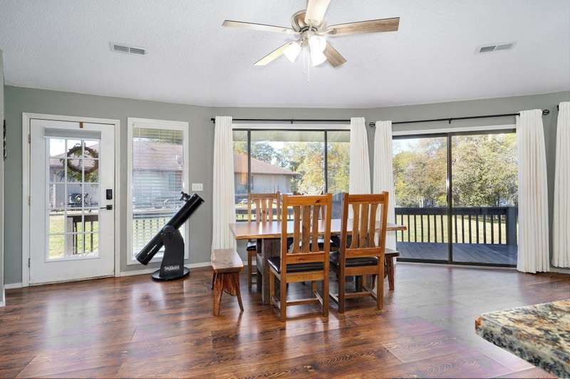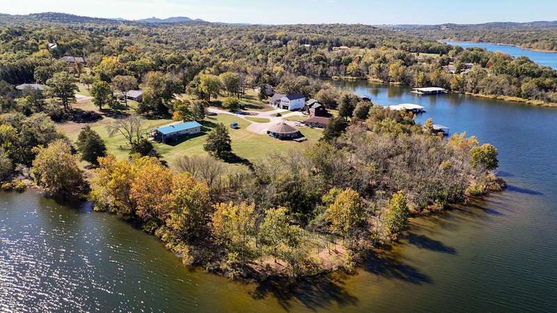 Discover this rare gem -- a stunning 3-bedroom, 2-bathroom lakefront home perfectly situated on just over an acre (m/l) with double lots and a gentle walk to the water's edge of Table Rock Lake.This unique home features circular architecture with an open floor plan, new appliances, and a warm, inviting design that's ideal for relaxing or entertaining. Enjoy the spacious wrap-around deck -- perfect for morning coffee, evening gatherings, or simply taking in the sights and sounds of local wildlife.Meticulously maintained and move-in ready, this property makes the perfect weekend getaway or full time residence. A 10' X 28' boat slip with lift is available within walking distance for an additional cost, making lake days effortless.Don't miss your chance to own a one-of-a-kind lakefront retreat where comfort, character, and natural beauty come together.