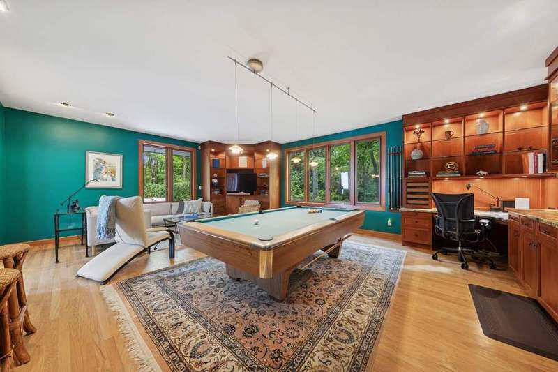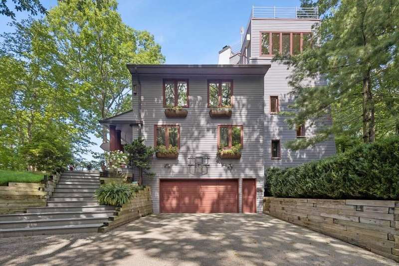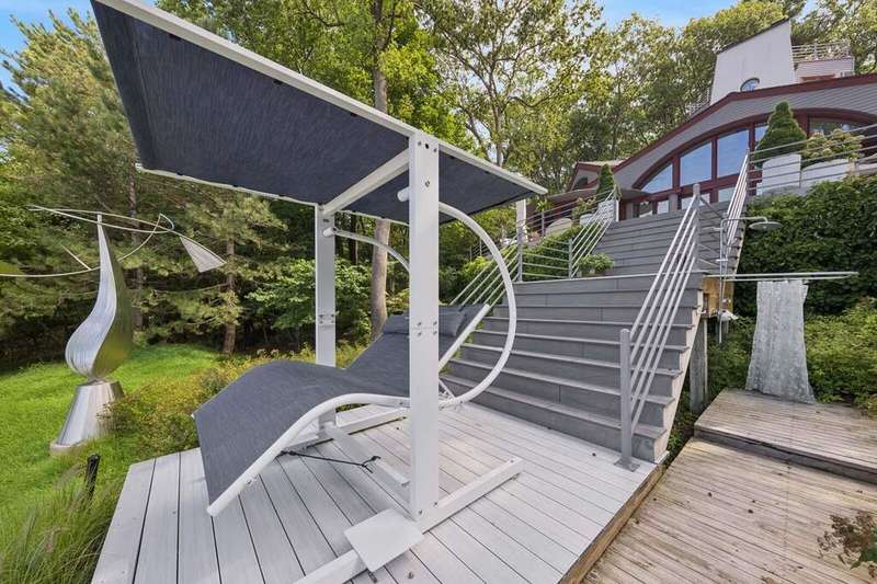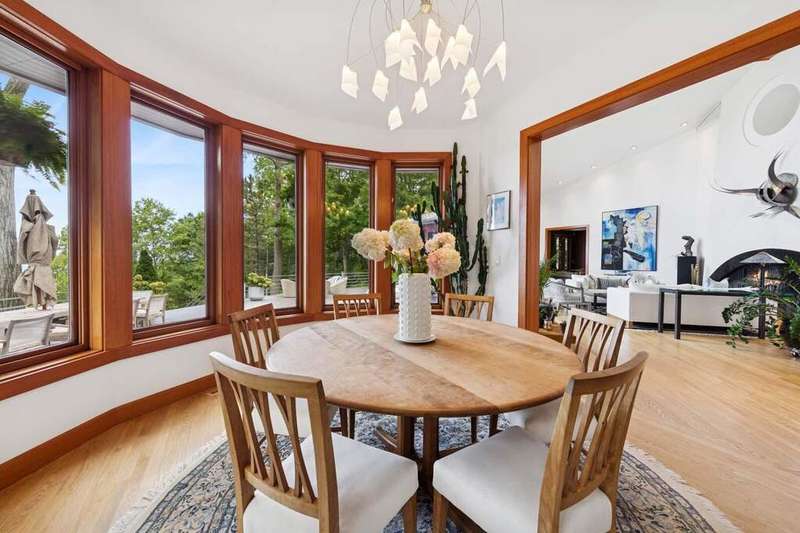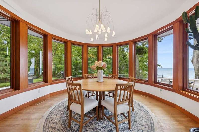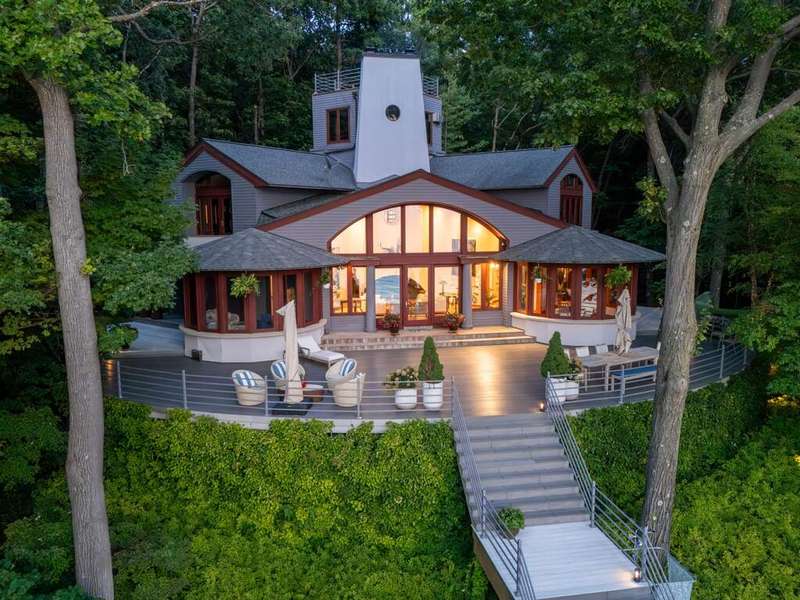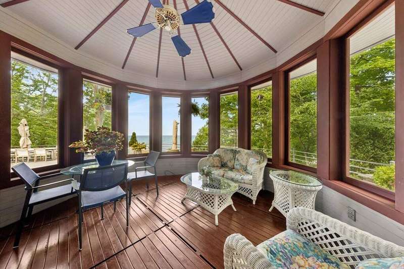 This exquisite lakefront estate will take your breath away. Three acres, and 350 feet of Lake Michigan frontage in the exclusive Wildwood development, offer an unparalleled setting. Enjoy lovely lake views, stunning sunsets and lush landscape, along with a most unique, custom home. At the center of the home is a soaring great room, with 23-foot ceilings, a massive fireplace, and a wall of windows and glass doors, overlooking expansive decks and magical Lake Michigan. The many outdoor spaces can accommodate groups small and large, for sunning, gathering, or breezy al fresco dining. Prefer meals indoors? Choose the unique, round, window-filled dining room. A clubby pool table space and an airy screen porch add to the main floor appeal. Climb a unique spiral staircase to a third-floor, tree-top haven, perfect for an office or gym. And there is a rooftop getaway, if you seek a lofty perch. At day's end, relax in the perfectly private, outdoor hot tub. And finally, take your rest in one of four tranquil bedrooms and luxurious baths. Even the heated garage is special, with room for every tool and toy a lake home deserves. This one owner, custom designed, and impeccably maintained property, is being sold turnkey, with all indoor and outdoor furnishings, tools, and lake equipment.