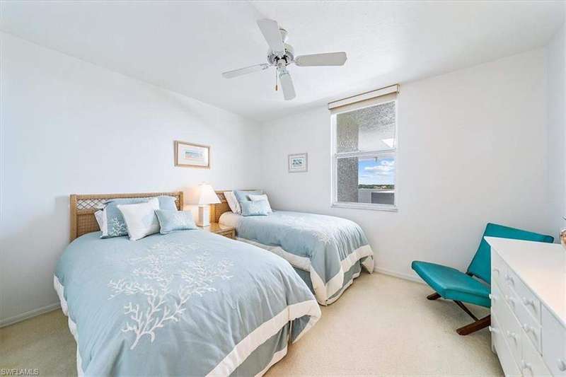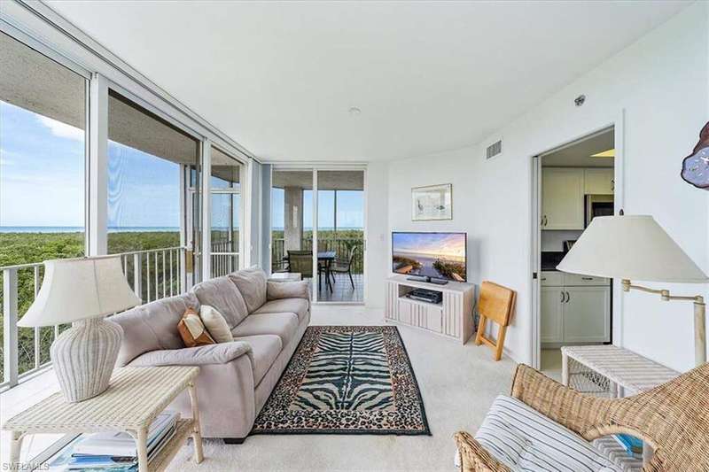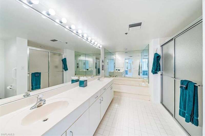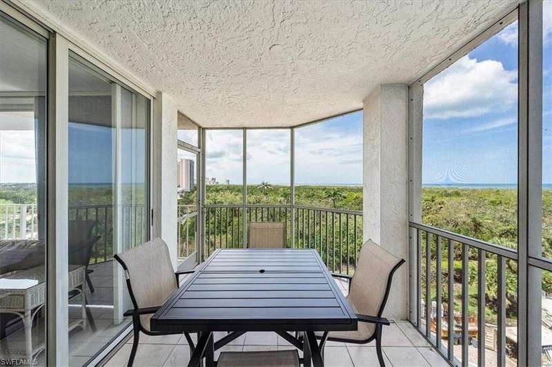 This spacious 3 Bedroom + Den, 2 Bath condo has over 1800 square feet of living space under air, with a split bedroom floor plan that offers privacy for guests. A lovely open and bright 5th floor, end unit with panoramic views from every angle. Watch the sunset from 2 screened lanais or the open balcony. Comfortable furnishings and well equipped. St Lucia offers on-site property management, pool, spa, grilling area, fitness room, social room and 2 guest suites. All Pelican Bay members enjoy 2 beach restaurants, attended beach service, fitness center, 18 har-tru tennis courts, pickleball, kayaking, biking, miles of walking nature paths and so much more. Artis Naples Performing Arts Center, Waterside Shops and Mercato are just minutes away.