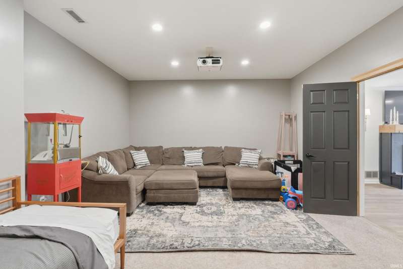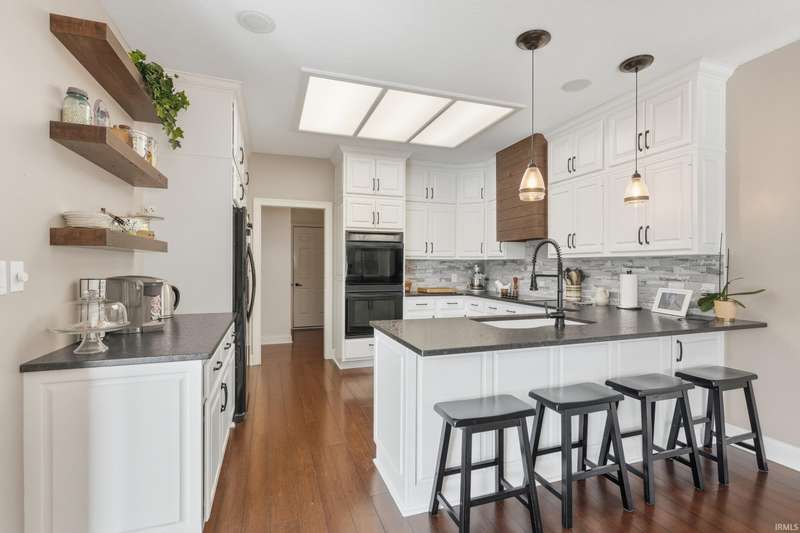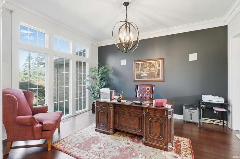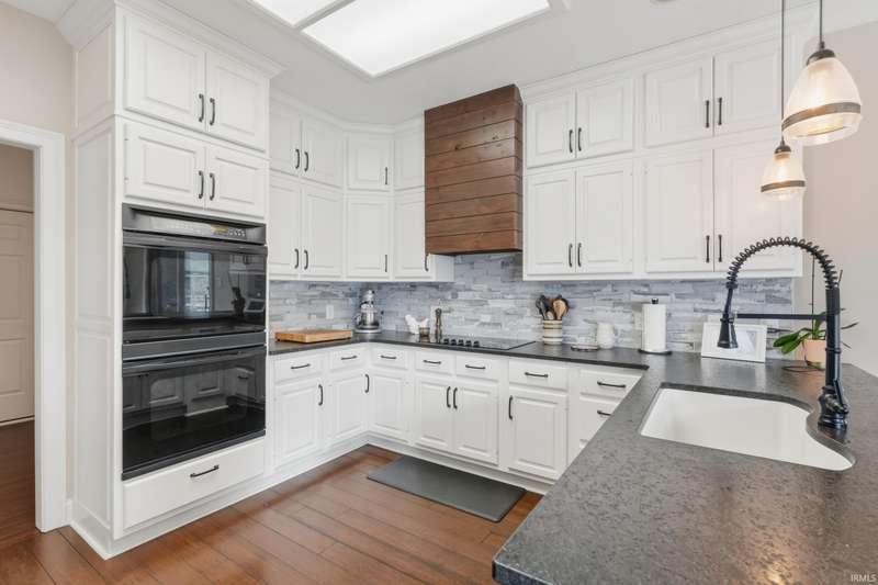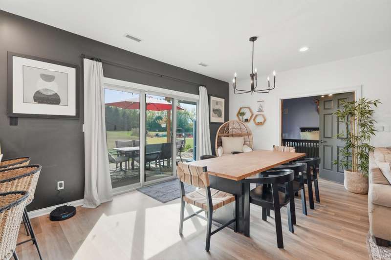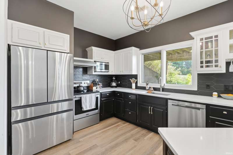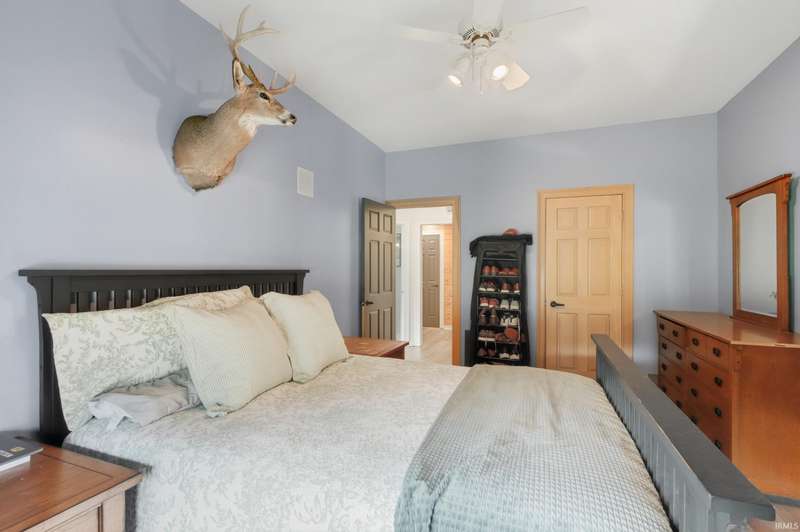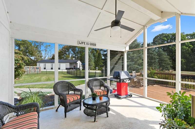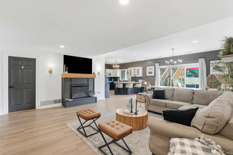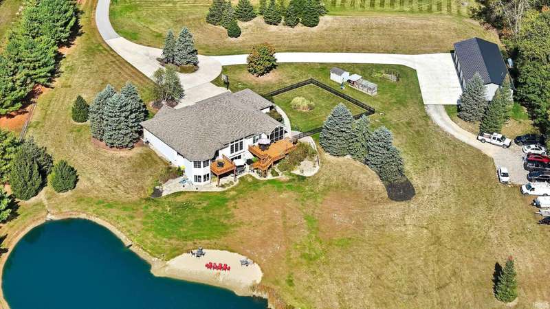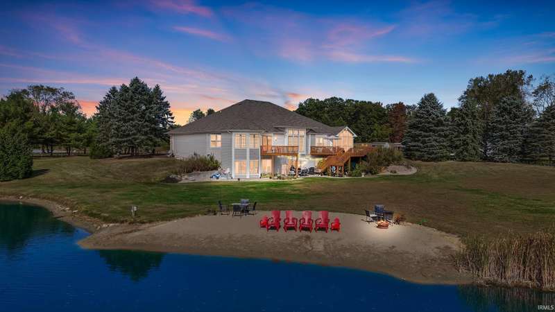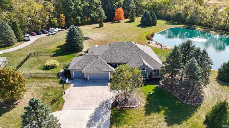 Welcome to your private oasis set on 5.5 acres in the highly desired Leo school district! This sprawling 5-bedroom, 3 full and 2 half bath ranch on a walkout basement offers over 4,800 finished square feet of beautifully designed living space. The open main level features spacious living areas, a well-appointed kitchen, and large windows that showcase the serene property views. The walkout basement is an entertainer’s dream with a full second kitchen, two additional bedrooms, Theater Room, a full bath, half bath, second laundry, and a private entrance from the garage—perfect for multi-generational living or guest quarters. Outside, enjoy your very own stocked pond with beach area, including a new fountain (Fall 2023) that is seasonally serviced. The property also includes a new 70x30 pole building with an office, bathroom, and temperature-controlled environment—ideal for a workshop, business, or hobby space. Additional highlights include a three-car attached garage, geothermal heating and cooling (extensively cleaned and serviced in 2024), a new well pump and pressure tank (Fall 2024), and a Kinetico whole-house water filtration system. The building also features a large propane-powered heater for year-round comfort. This rare property combines privacy, functionality, and luxury—offering a peaceful retreat with modern conveniences just minutes from town.