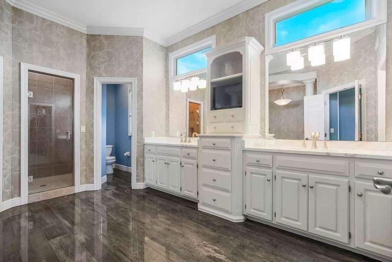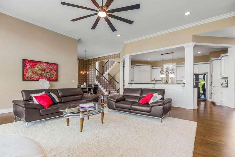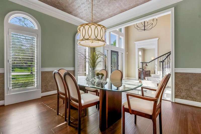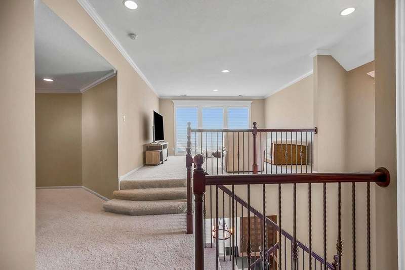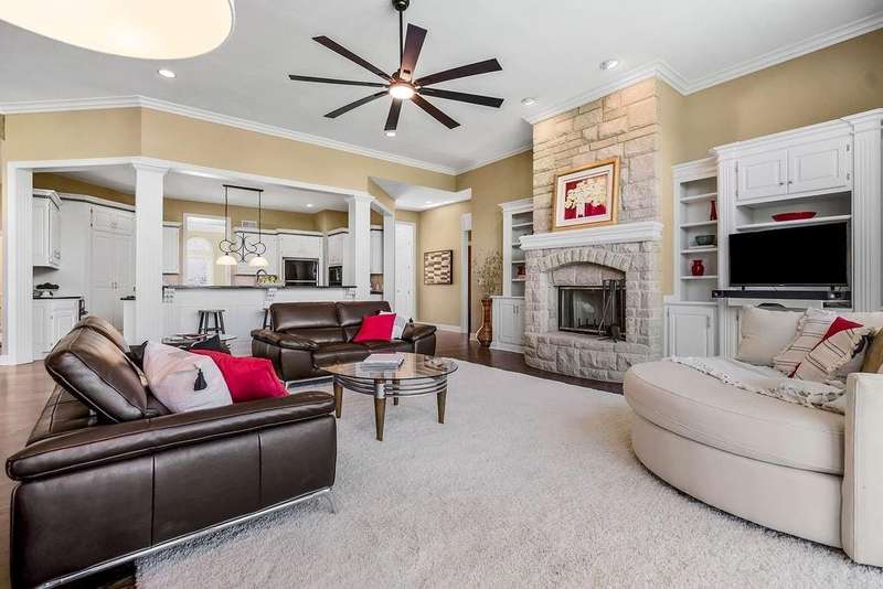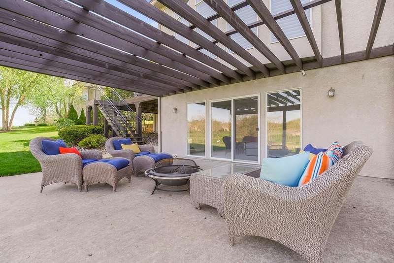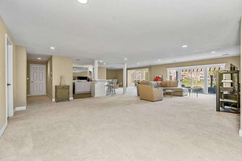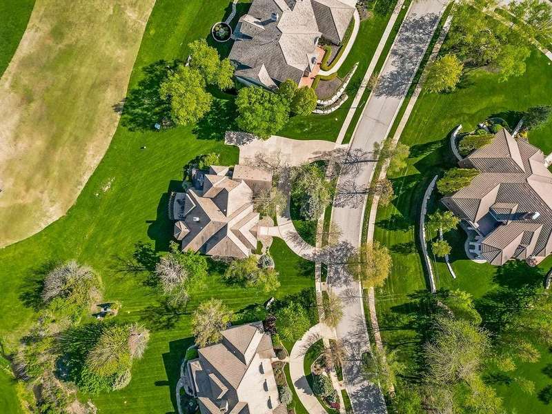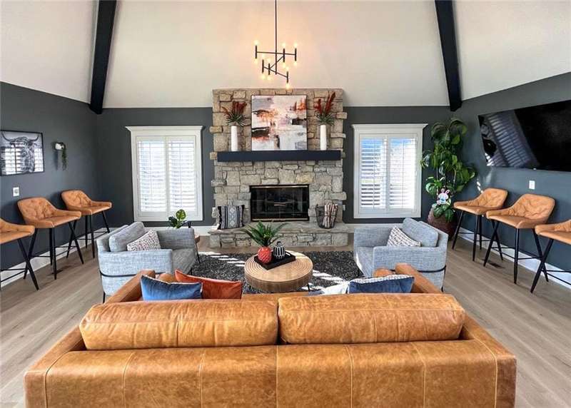 Spacious 1.5 story 5 bedroom home on a walkout golf course lot with east facing backyard with great golf course views and priced under county appraisal! Circle driveway & hard to find side entry garage! Walk into the grand 2 story entrywaywith a beautiful curved staircase, iron spindles, new stair carpet & gorgeous modern chandelier. Fantastic main floor primary suite has a sitting area & see thrugas fireplace. The primary bathroom feels like a spa oasis with jacuzzi tub and fireplace, double vanities with new quartzcountertops, lots of cabinet space, separate shower & piazza de resistance is 2 WALK-IN CLOSETS. Main floor also boasts aden with pocket doors & formal dining room and plantation shutters that adorn the front of the home. The large kitchen has 2 ovens, a 6 burner gas cooktop with a retractable downdraft vent, beverage refrigerator, lots of counter space, & walk-in pantry are sure to delight. Newly refinished hardwoods & open floor plan to thegreat room & breakfast nook. Great room has spectacular golf course views via floor to ceiling windows plus stonefireplace w/built-in cabinets. Also on the main floor are deck access, office area w/built-in desk spaces/shelvingw/French doors, laundry room & back staircase. Upstairs are 3 large bedrooms all w/private baths,new Quartz counters & LG walk-in closets + large loft area & built-in desks. Oversized open finished basement is ready to entertain! Bar has kitchenette w/mini-fridge, dishwasher, microwave & sink. Billiards & recreation area. Walk out to the EAST facing pergola covered patio to enjoy the golf course views! 5thbedroom that is 15'x15'-perfect as a 2nd Primary Suite! 5th full bath, tons of storage (perfect to add your home gym). Tankless hot water heater & tile roof!Amenities include putting green, 2 pools, pickleball & tennis courts, party room, sand volleyball. Lake Lenexa, trails, parks, Lenexa Rec Center & Public Market close by!Golf optional with GreatLifeKC