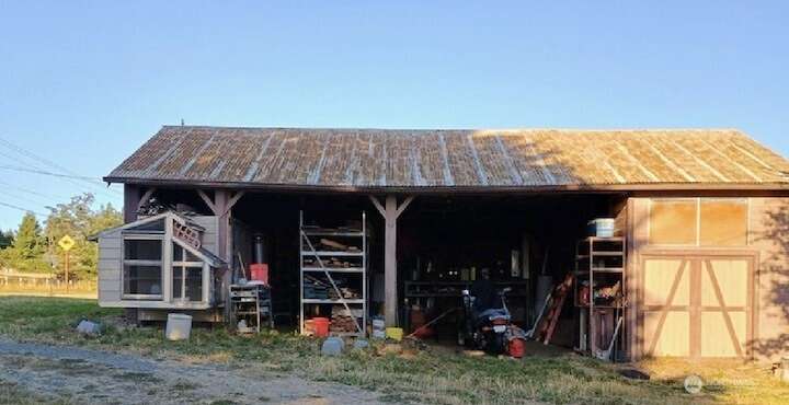 This home features majestic mountain views and sunny farm acreage & garden, near to Port Townsend. Words and images don't fully convey the unique value here, which must be seen to be appreciated. The primary bedroom has wonderful views & a full bathroom. Additional home office/guest room with large windows. Spacious kitchen and dining area brings in natural beauty and light. The additional one bedroom apartment with 3/4 bath, kitchenette, living room and its own private entrance adds income potential. Two outbuildings: concrete block shop & two-bay pole building, each with their own electrical service. Fenced pasture & garden. As a whole, this is a bright, deeply peaceful sanctuary and home with exceptional development potential.