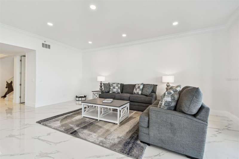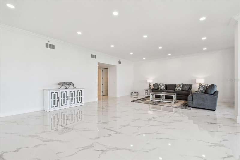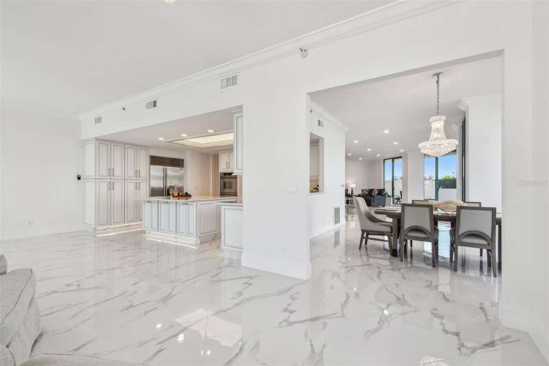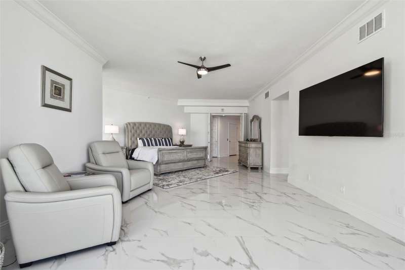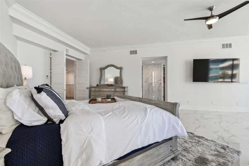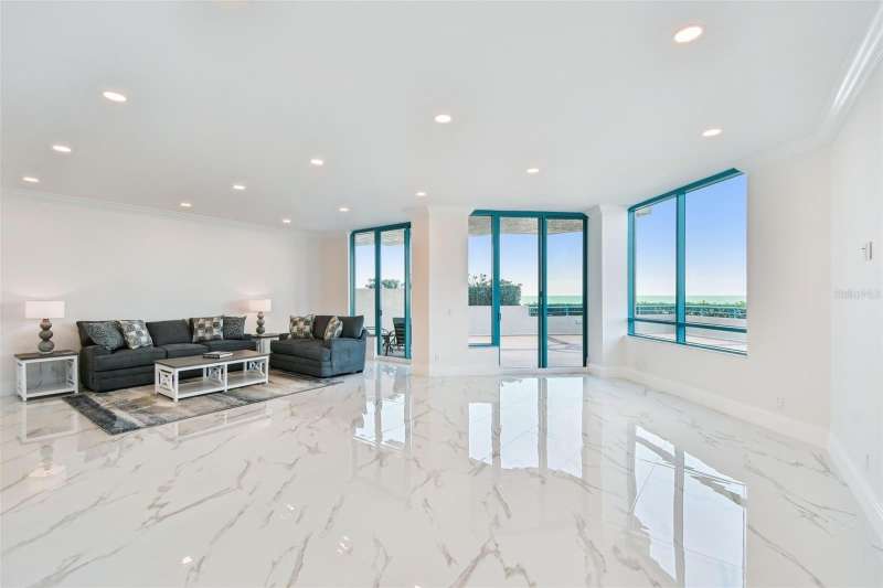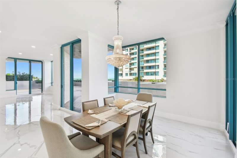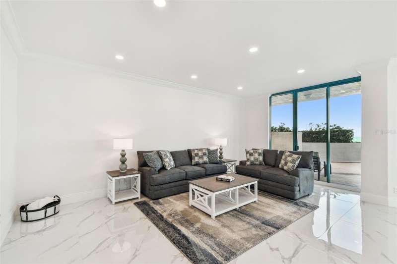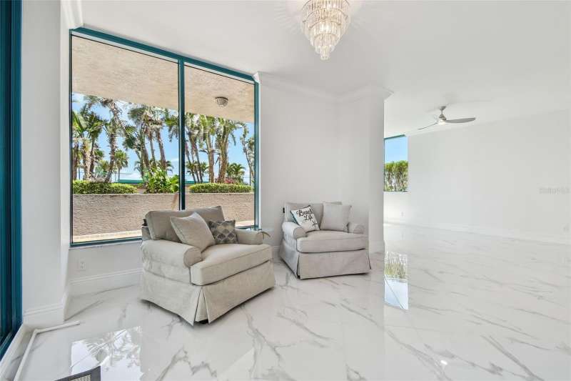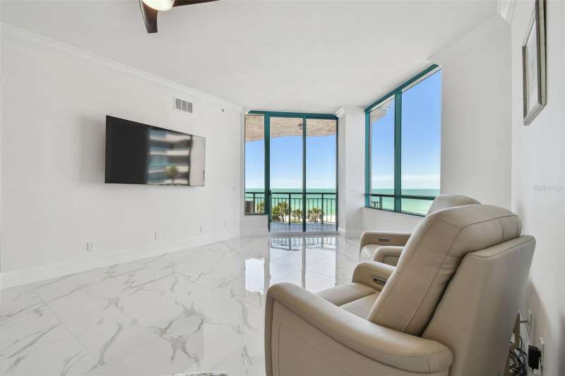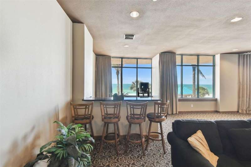 Experience the ultimate in beachfront living with this stunning, COMPLETELY RENOVATED, two-story Plaza level condominium on Clearwater Beach/Sand Key Beach. This rare corner unit provides an unparalleled lifestyle with over 4,300 square feet of indoor space and more than 2,500 square feet of outdoor living on the wrap-around terrace and balcony, all with breathtaking Gulf of Mexico views. Ultimar III on Sand Key Beach embodies five-star resort-style living. Inside, the open and spacious floor plan, featuring high ceilings and designer lighting, creates a warm and inviting space for both relaxation and entertaining. The unit offers 4 bedrooms and 4.5 bathrooms. Wet bar area with 2 beverage refrigerators. The kitchen is a culinary delight with quartz countertops, high-end stainless-steel appliances, custom cabinets, and a breakfast bar. The primary suite is a private sanctuary with a Gulf-front balcony, a large sitting area, 2 custom walk in closets and a spa-like bath featuring dual quartz vanities, a colossal, jetted tub, dual water closets, and an oversized steam shower. This residence also includes a brand-new private elevator, direct access to the beach and pools via patio walkways for seamless indoor/outdoor living, and a private two-car garage. Ultimar III offers a lifestyle of luxury with amenities such as on-site management, 24-hour security, gated entry, 3 heated pools with spas, tennis and basketball courts, a putting green, pickleball and croquet courts, an outdoor kitchen and fire-pit, lush landscaping, a state-of-the-art fitness center with spa, locker rooms, steam room, sauna, and showers. Social and recreational opportunities abound with a library, a social area with a full kitchen and media center, a business meeting room, and a billiards room. The building’s two-tiered lobby provides a grand entrance with expansive views. Enjoy the convenience of nearby restaurants, shops, and salons, and take advantage of the Beach Trolley located right outside for easy access to Sand Key Park and Clearwater Beach. Sand Key Beach offers an exclusive and sophisticated coastal living experience. Attached list of upgrades or inquire.
