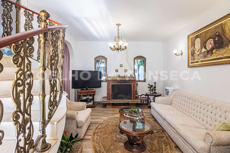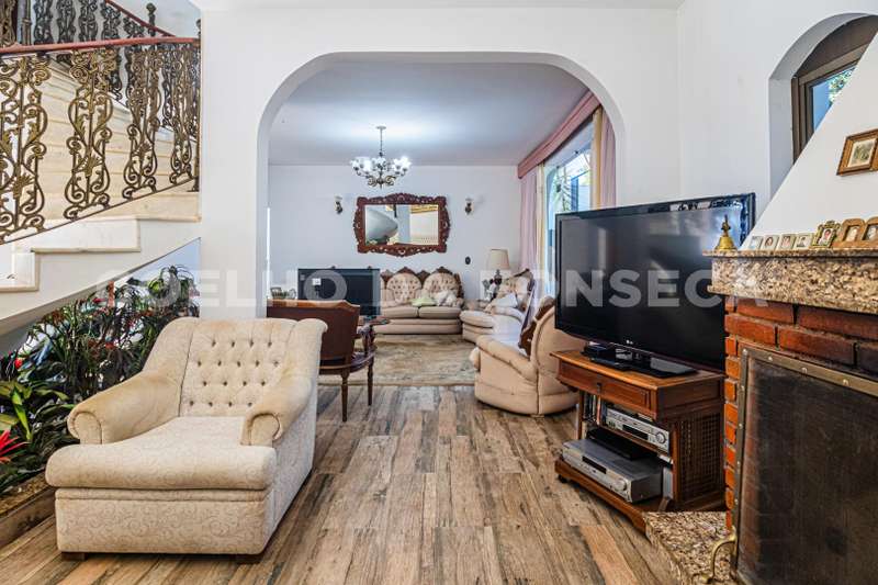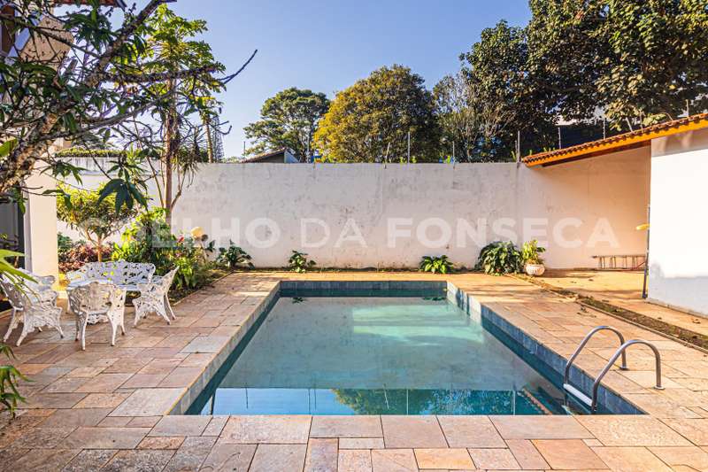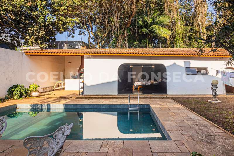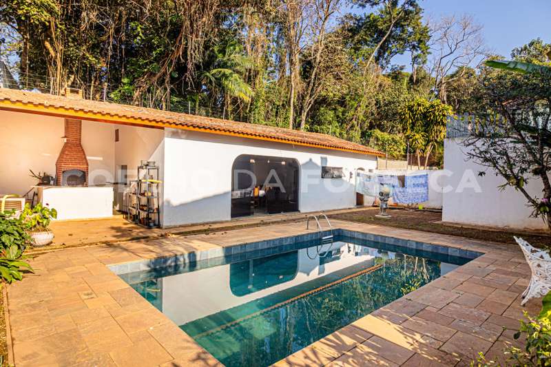 No piso térreo possui, 3 salas, escritório, cozinha com armários, lavabo, lavanderia fechada, quintal com horta, piscina, grande salão de festas, churrasqueira, dependência para empregados com banheiro. Agradável área verde.